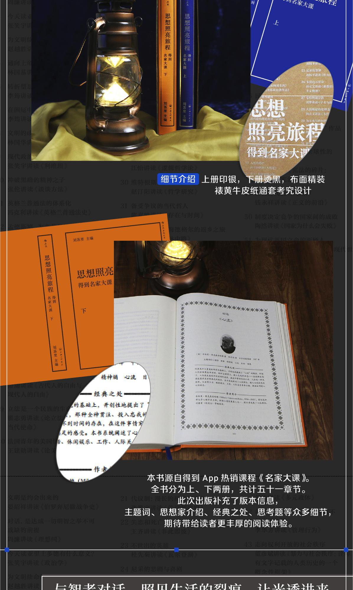 ◎关注西方思想和名家大课音频读者的收藏之书:此次精装版,封面采用:柔感织棉布面,上册:印银 下册:烫黑,涵套:瓦楞纸裱美国黄牛皮,背景小字印银书名烫白装帧。