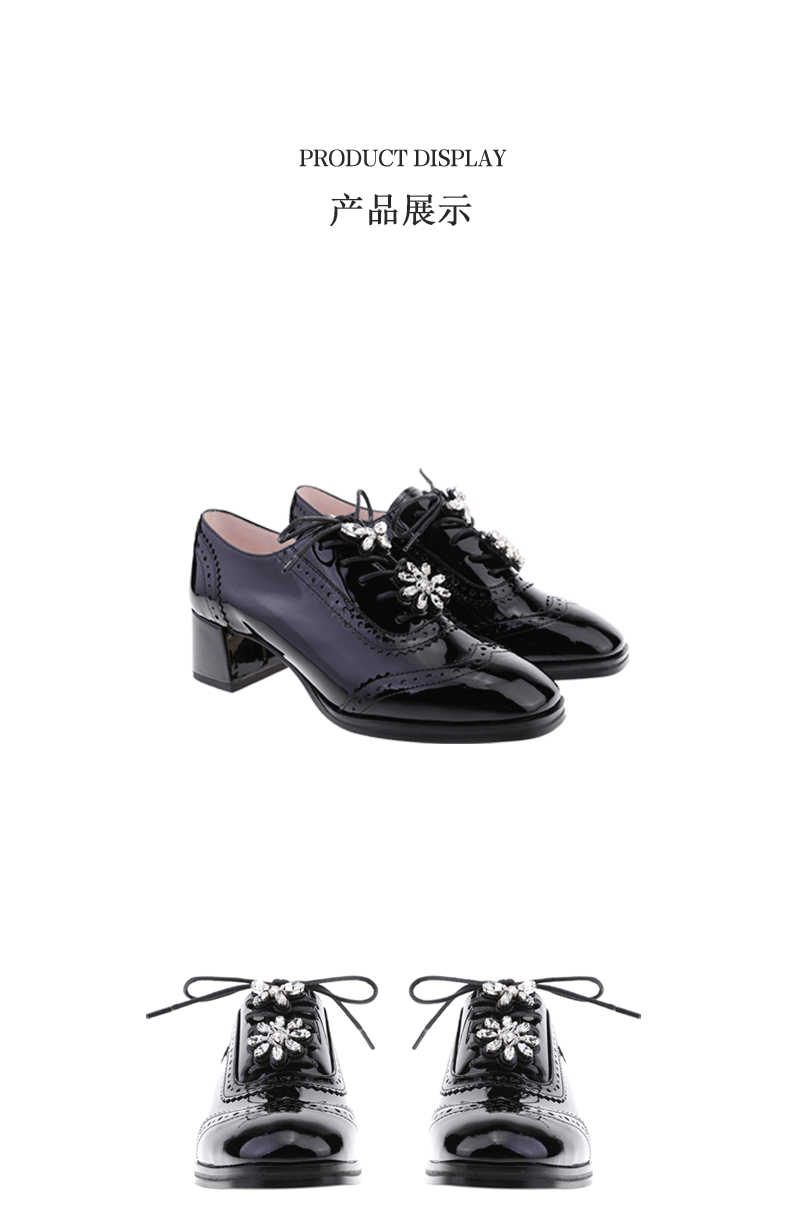 sheme蝶雨彩虹系列进口漆皮可拆卸水晶扣饰女士系带乐福鞋可定制