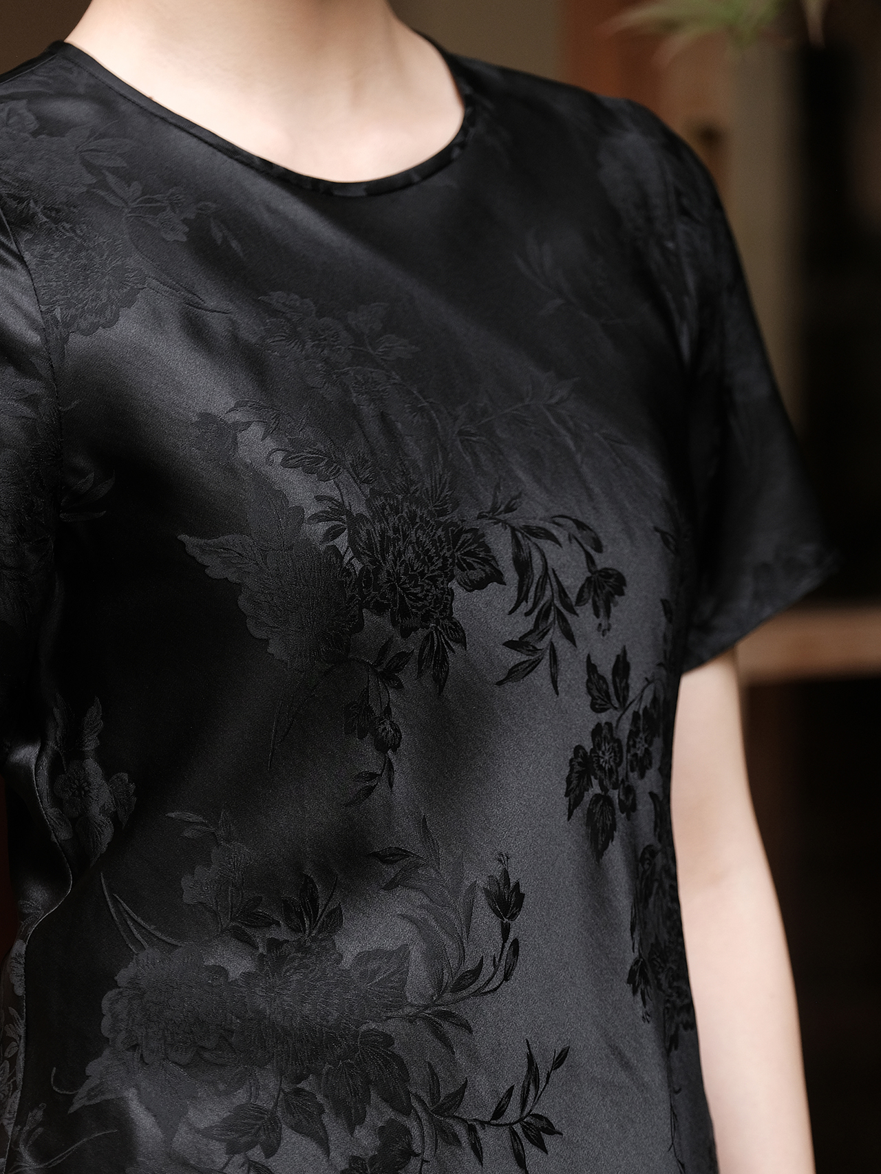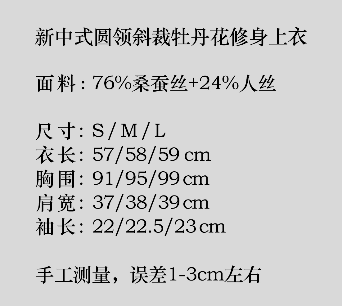 盛唐婧| 新中式圆领斜裁牡丹花修身上衣-黑色[特价品]
