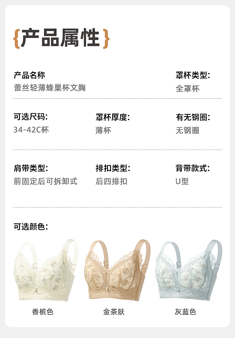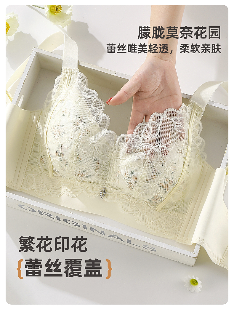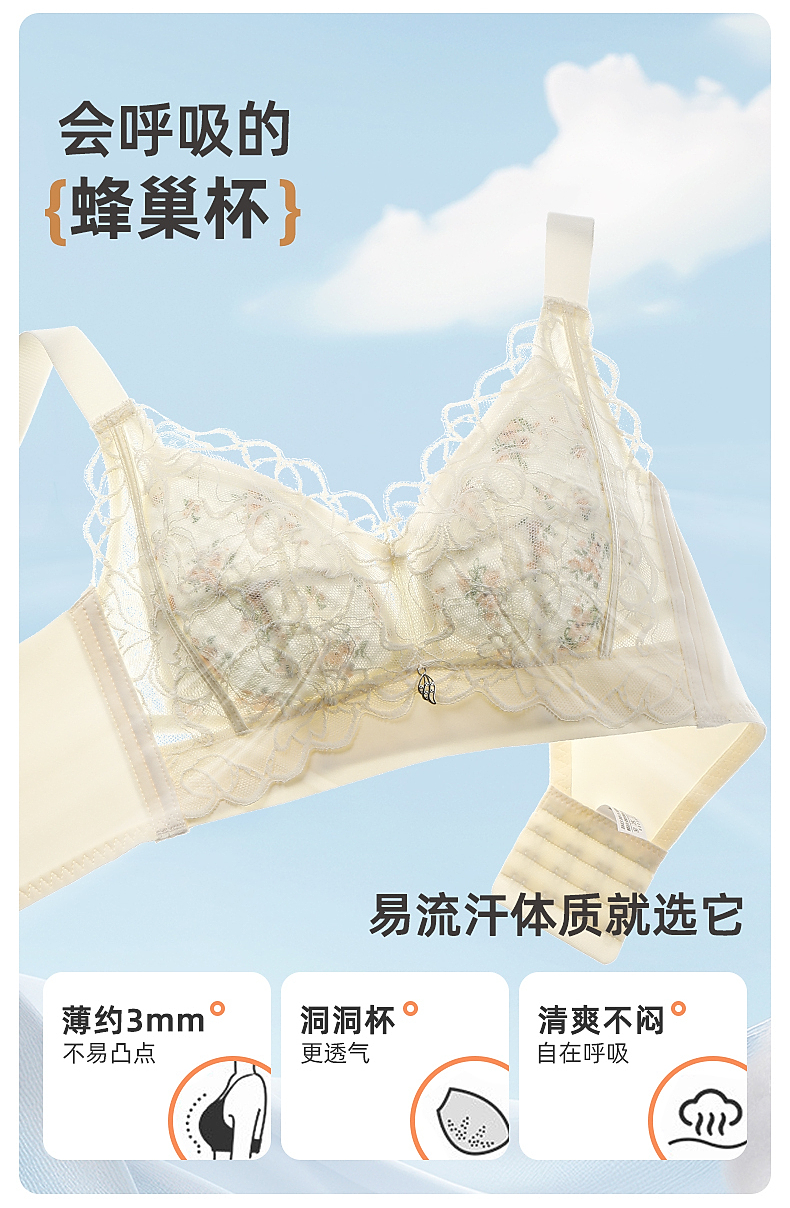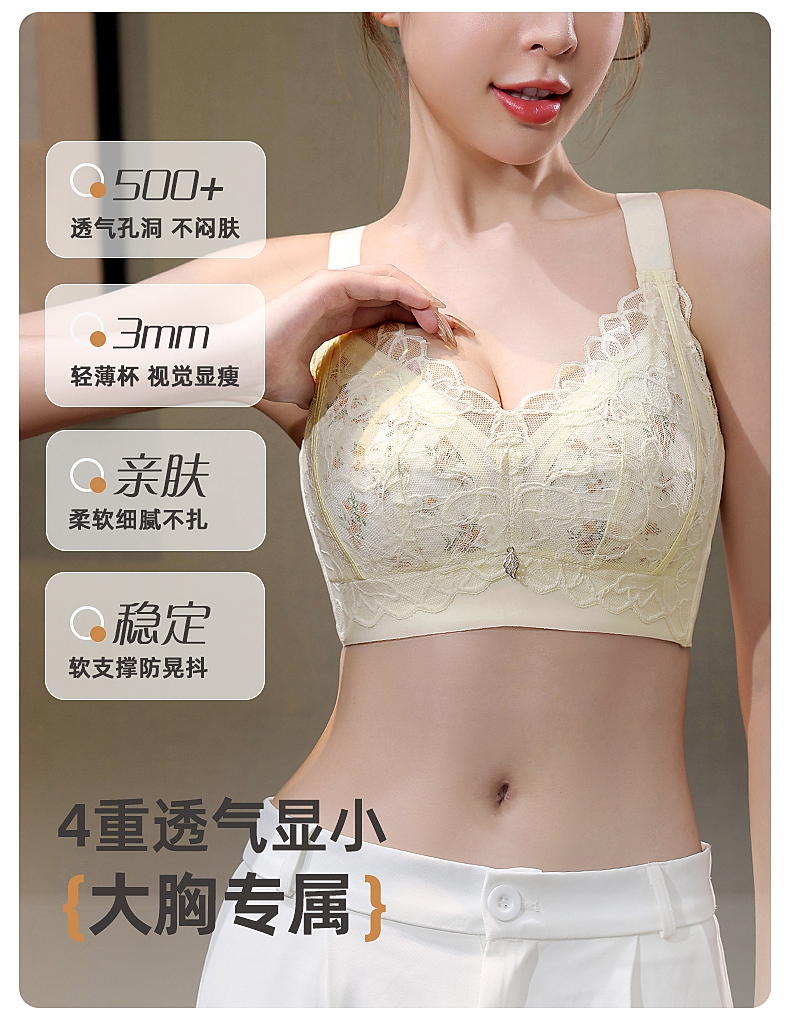 雅黛俪大胸显小显瘦性感蕾丝内衣透气洞洞杯轻薄款女士文胸罩