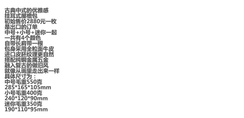古典中式屋檐包,金属五金+牛皮大身。优雅气质复古单肩包C122768