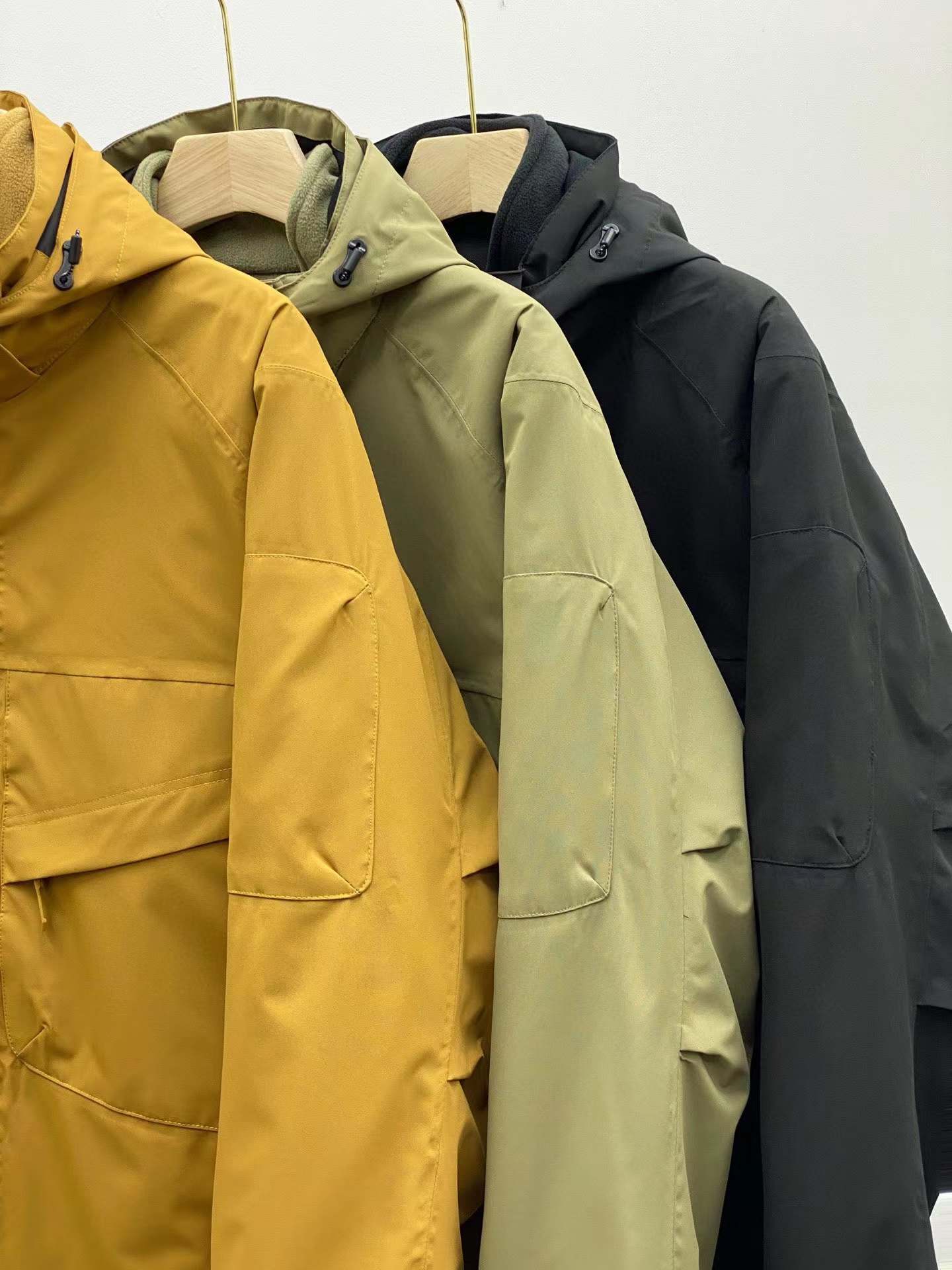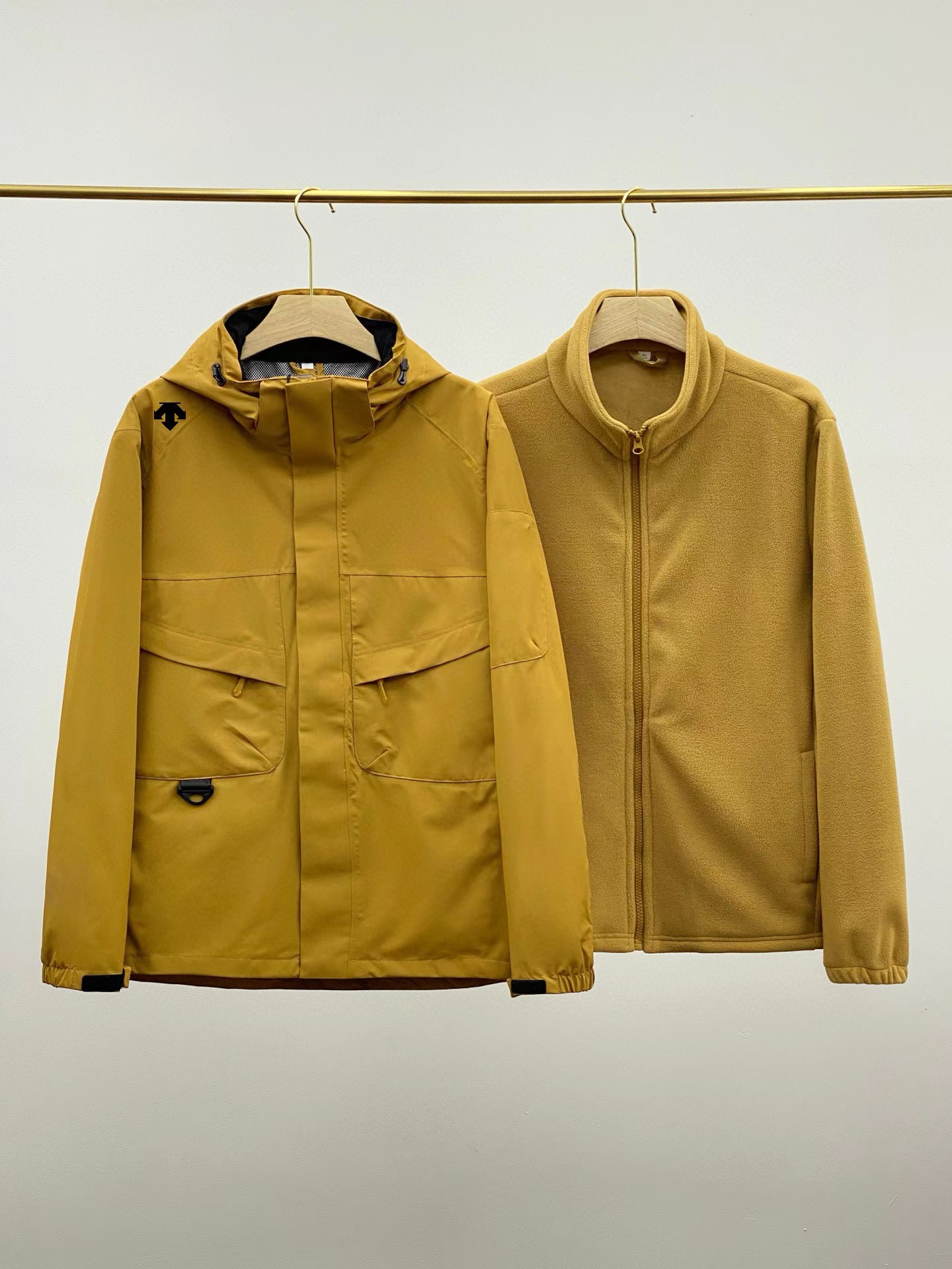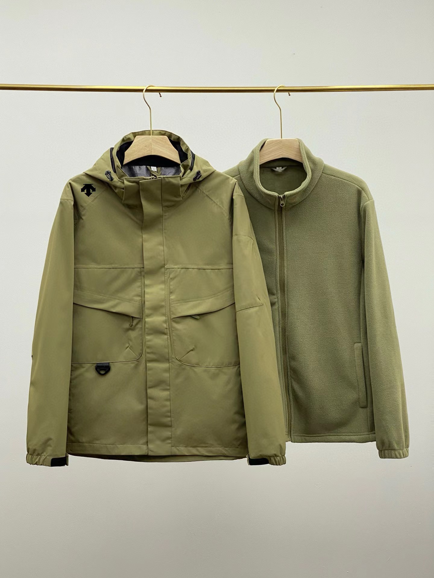 抓绒内胆防风防水透湿男士三合一两件套,独特压胶工艺,无缝贴合,高效防风防水,风雨再大也能轻松应对。内里摇粒绒,柔软保暖,可拆卸可外穿,三种穿法随心切换。单穿冲锋衣,干练帅气;单穿摇粒绒,休闲舒适;组合穿着,保暖加倍,无畏严寒。男女同款情侣款,与爱人携手户外,共享浪漫与温暖。无论是登山远足,还是漫步街头,都能彰显独特品味与默契。