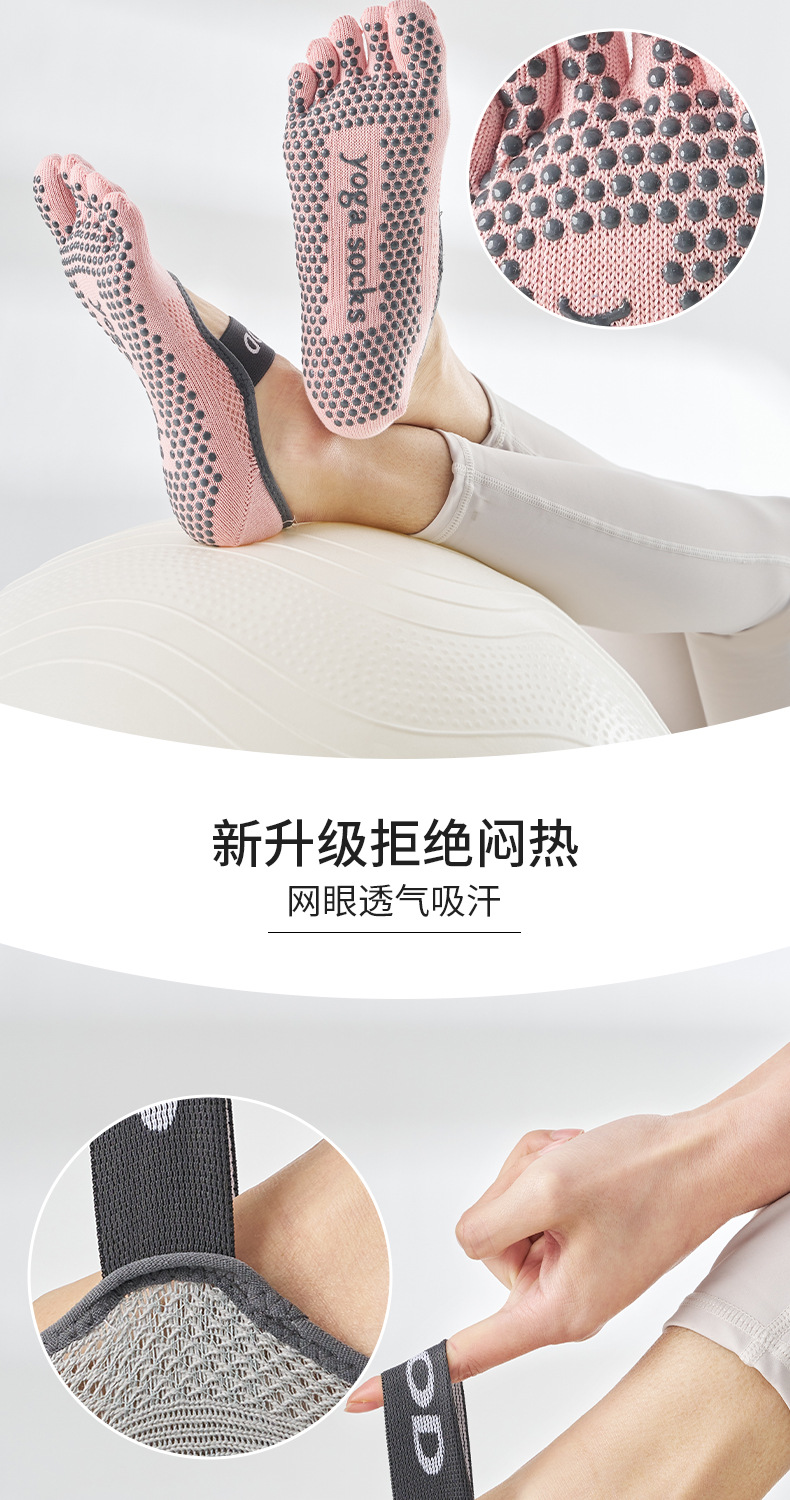 新品普拉提防滑袜薄夏季五指袜绑带网眼透气分趾点胶瑜伽袜子