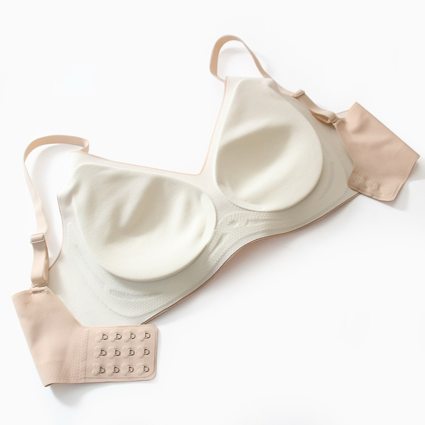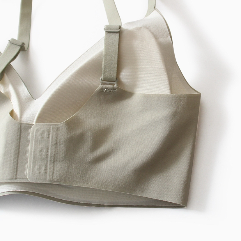 整体热贴合设计,隐形无痕,在胸垫外缘和下缘,都用了点胶加固承托工艺,形成W型胸托,为胸型提供软支撑,完美收副乳,完全替代了传统钢圈内衣,让每一寸肌肤都有被温柔地承托,轻轻地包裹着