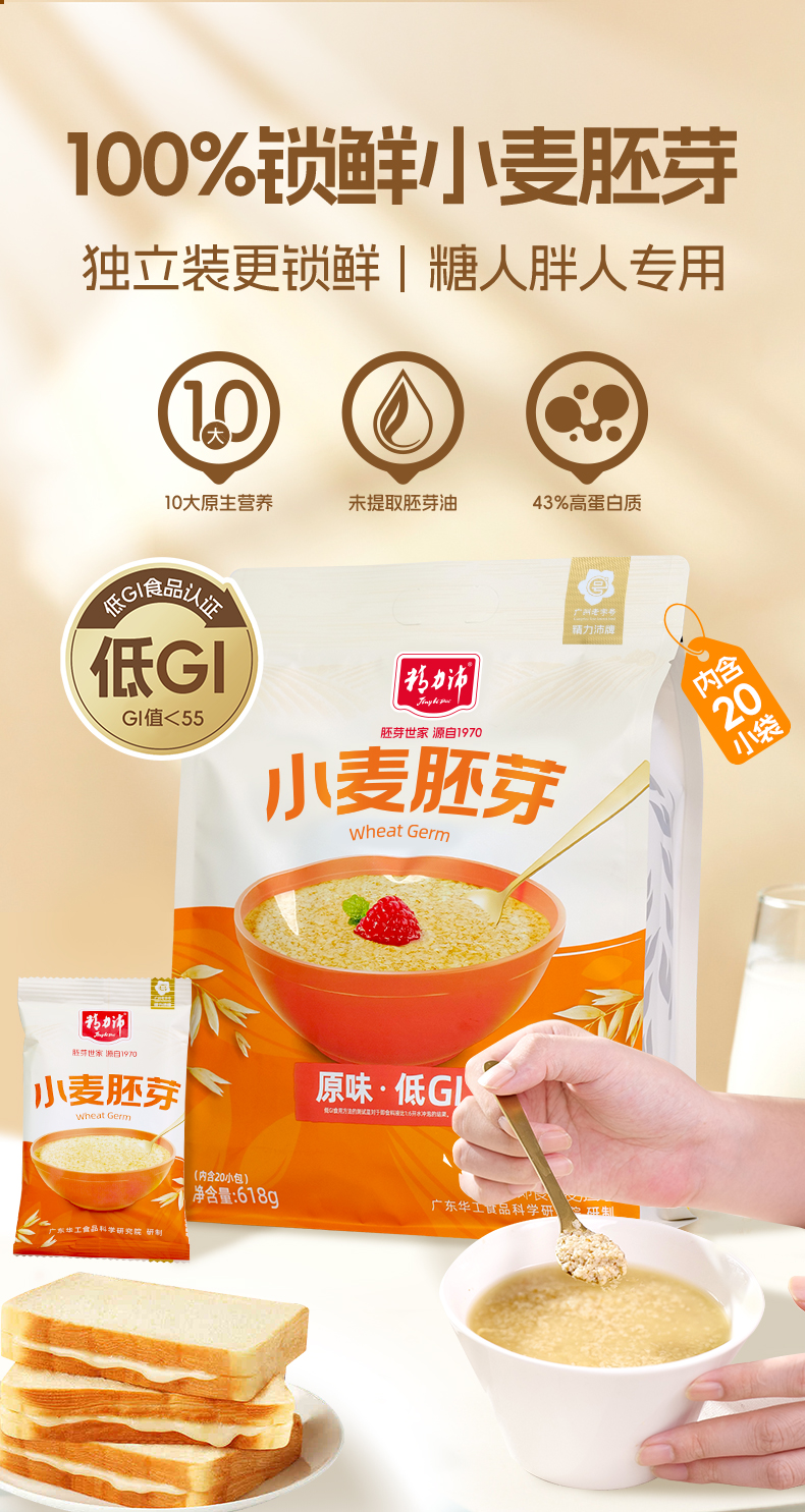 精力沛小麦胚芽高纤维高蛋白低GI618g(独立包装20袋)