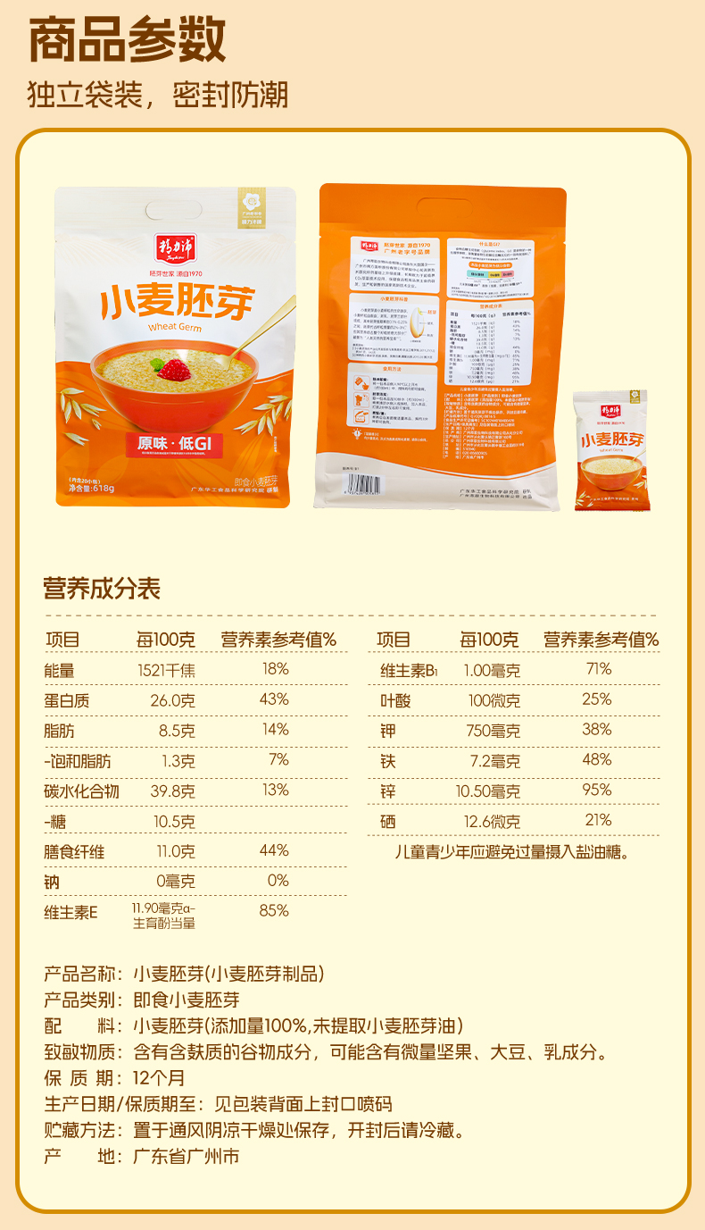 成 分: 小麦胚芽(添加量100%,未提取小麦胚芽油)