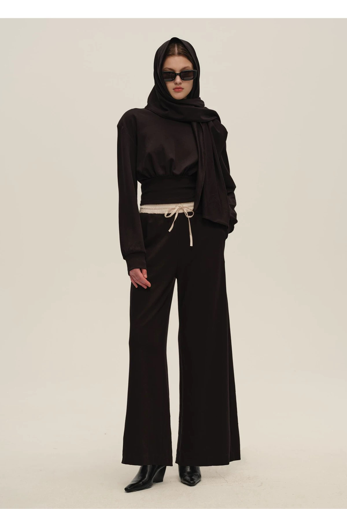SIJIA|AW2550 黑色围巾收腰卫衣