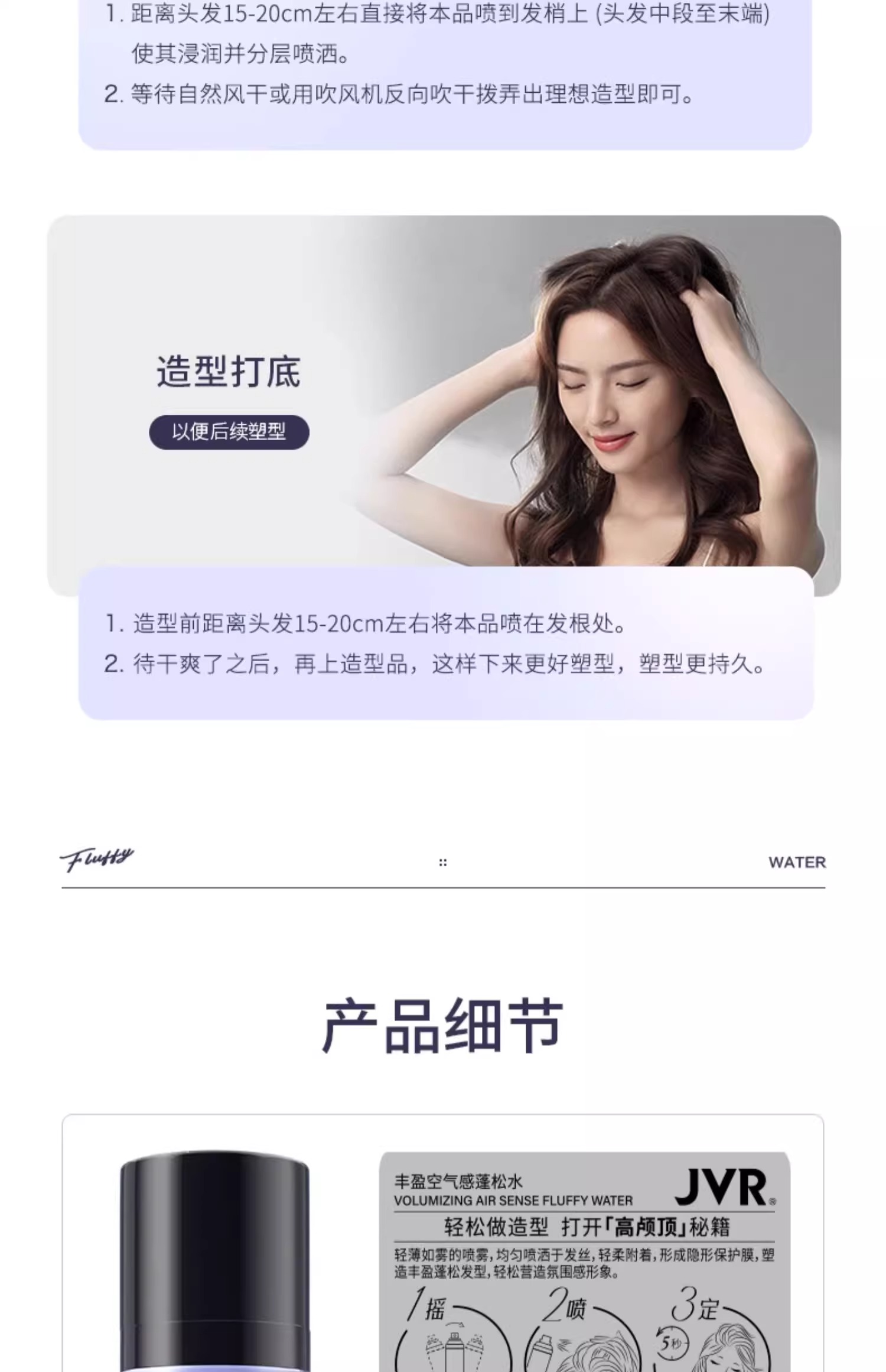 杰威尔女生丰盈空气感蓬松水发型蓬松喷雾神器高颅顶定型自然男士