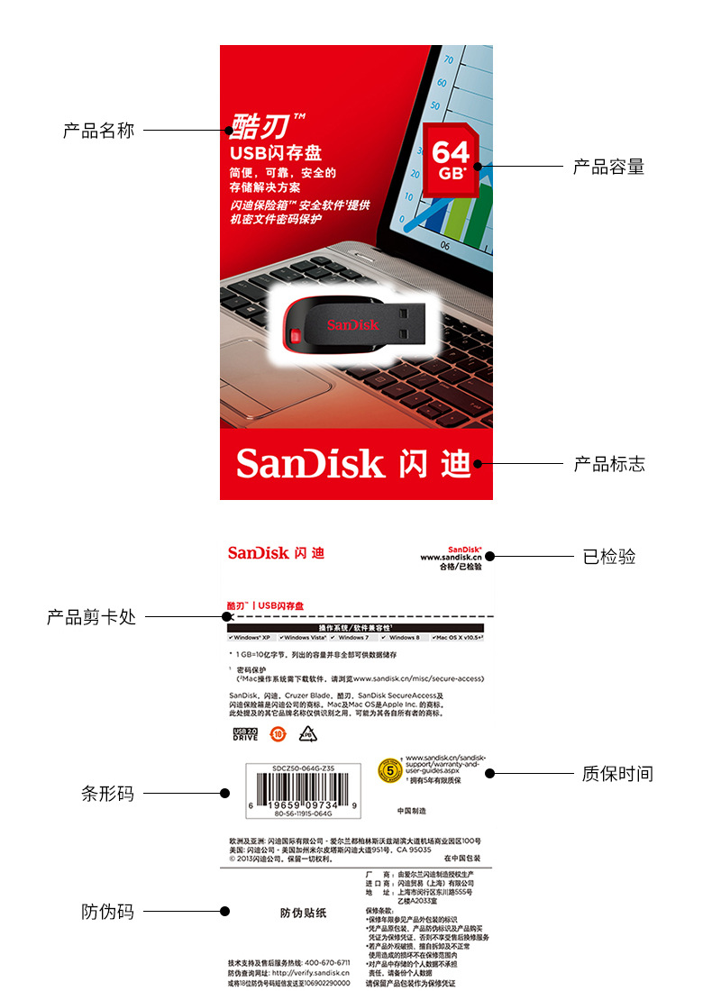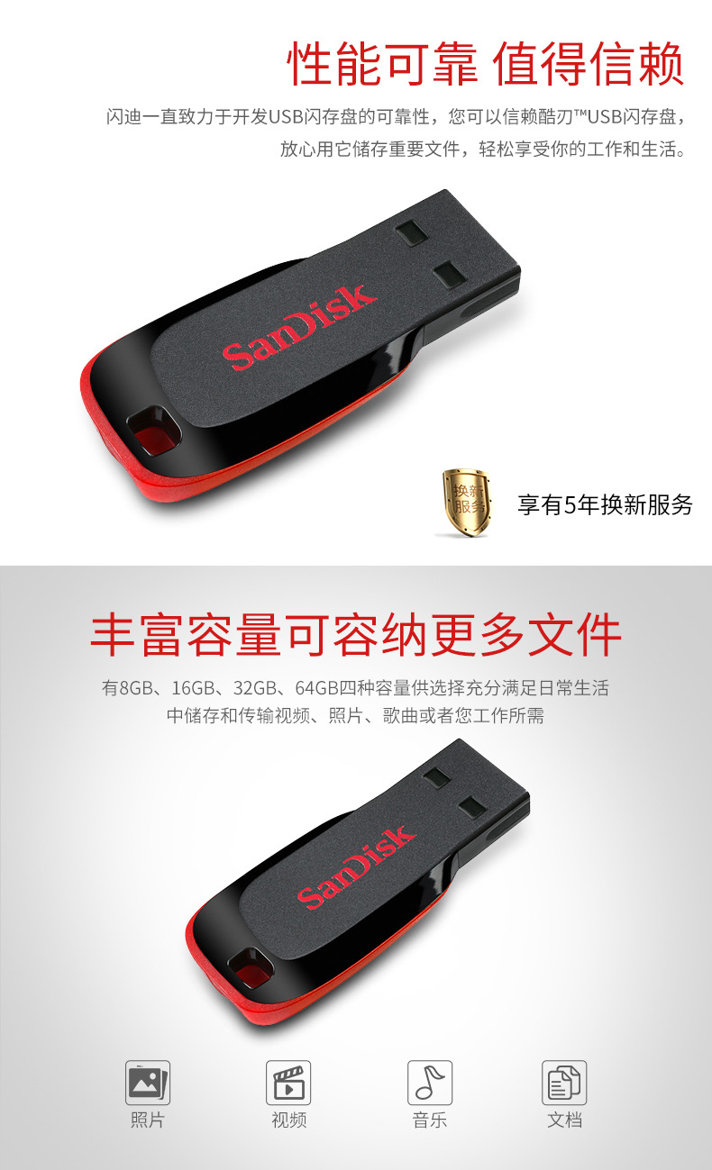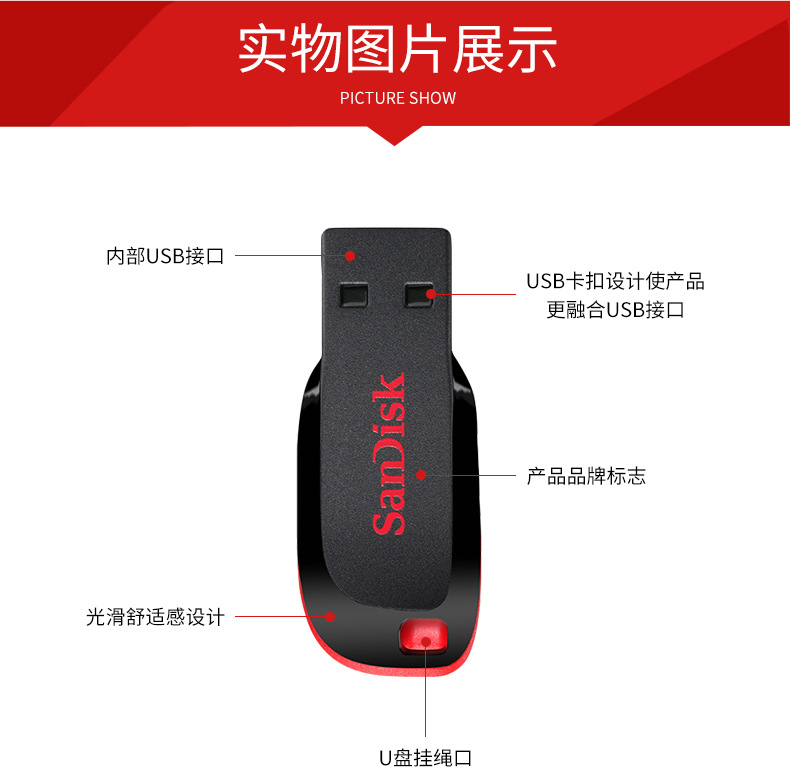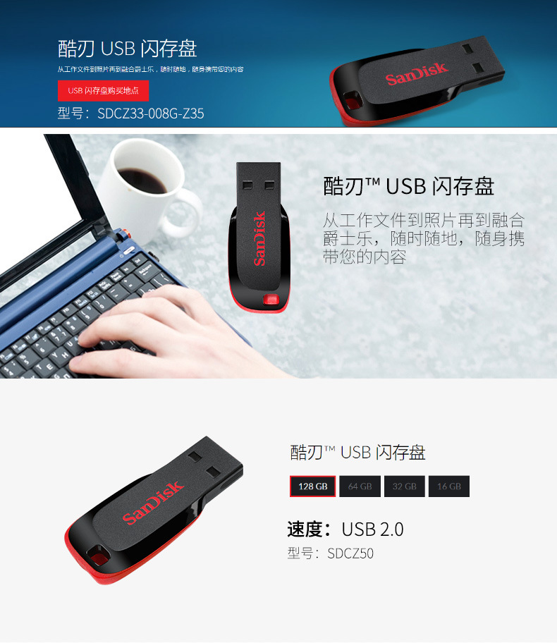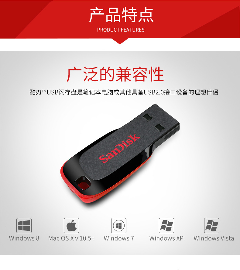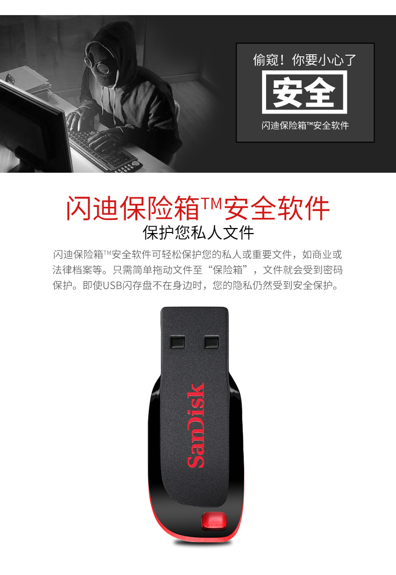 闪迪CZ50酷刃32g迷你加密u盘电脑车载两用音乐大容量优盘1个