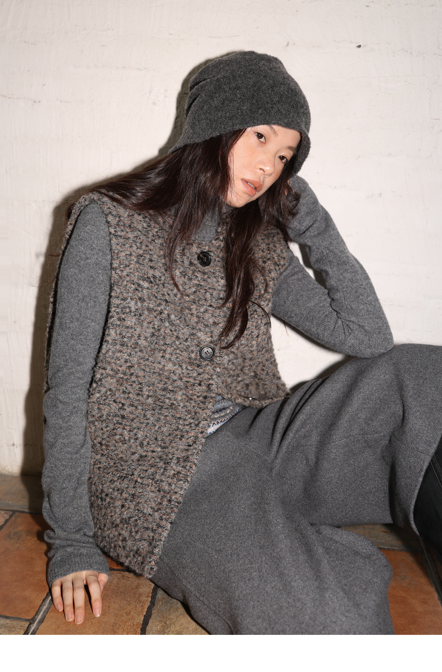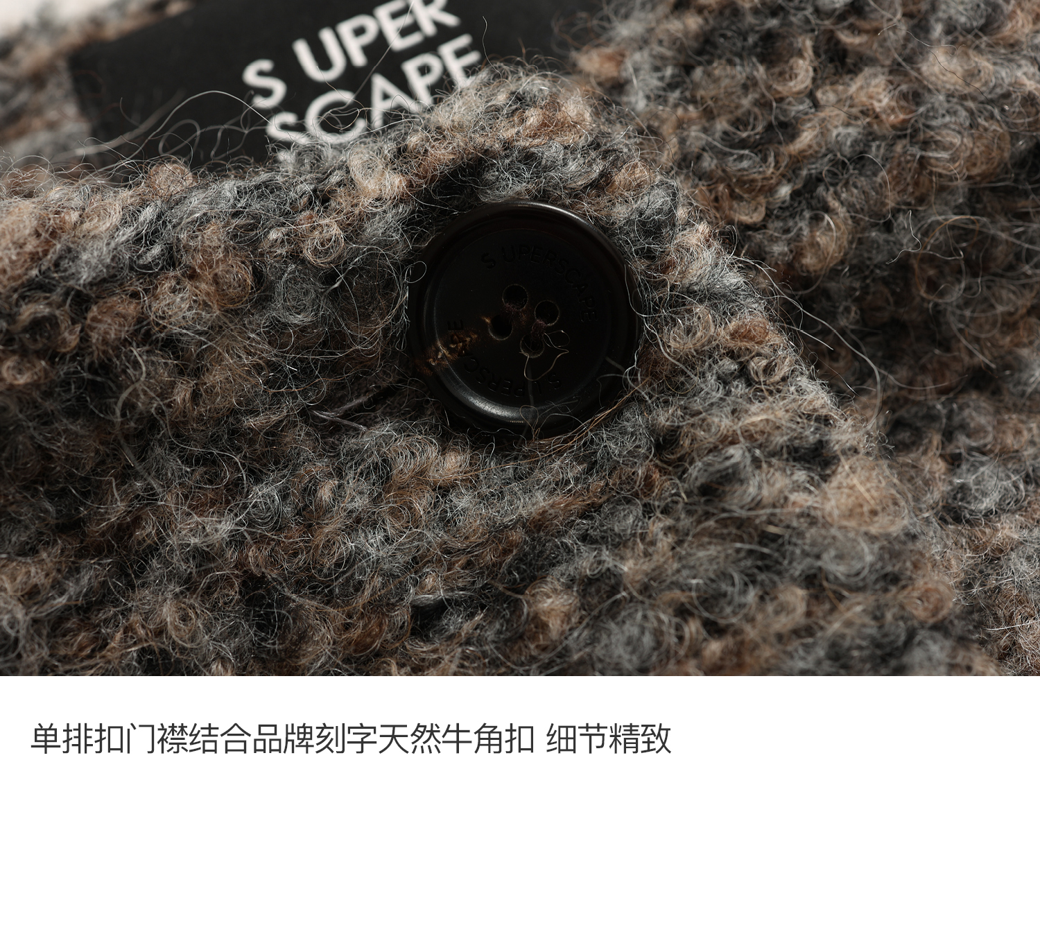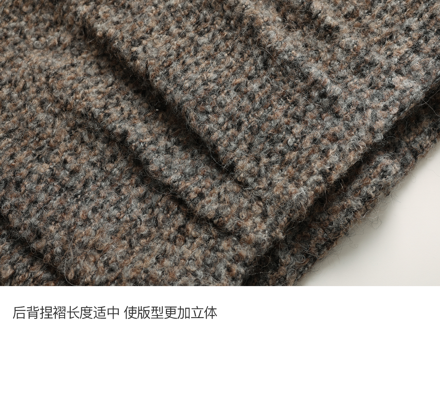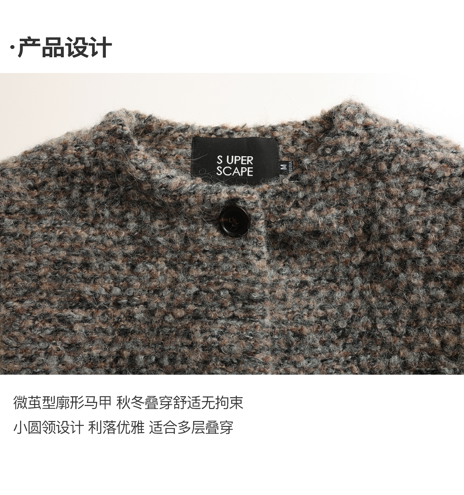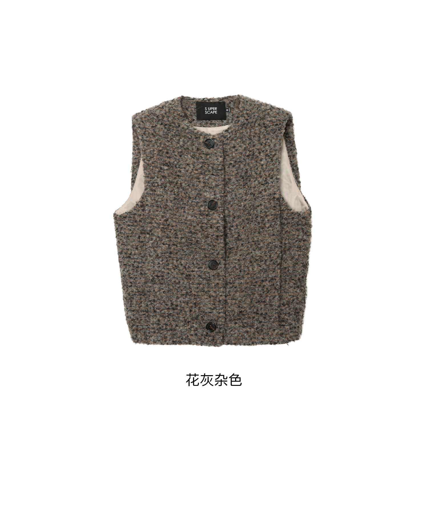 素舶 羊驼毛羊毛杂色圈圈毛粗花呢肌理感茧型圆领天然牛角扣马甲