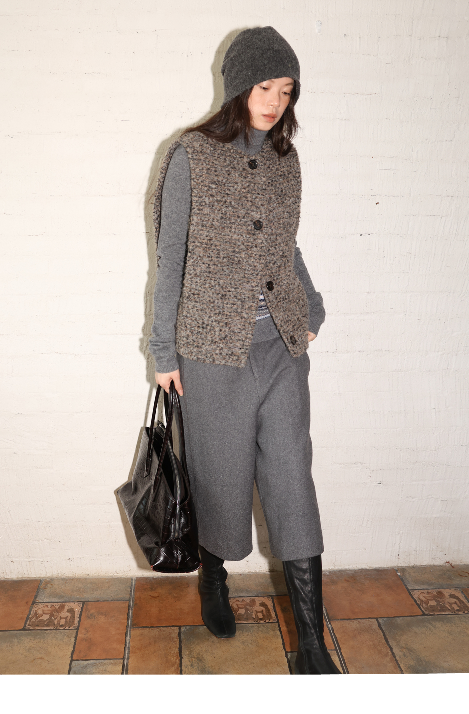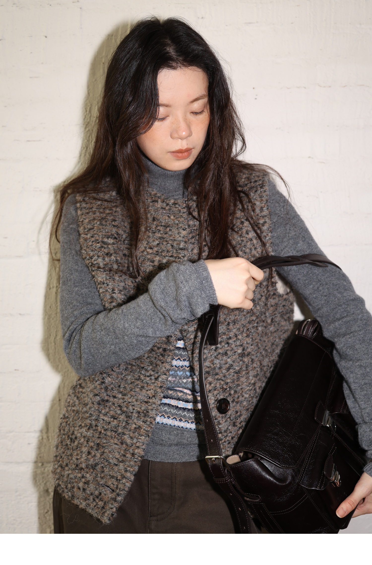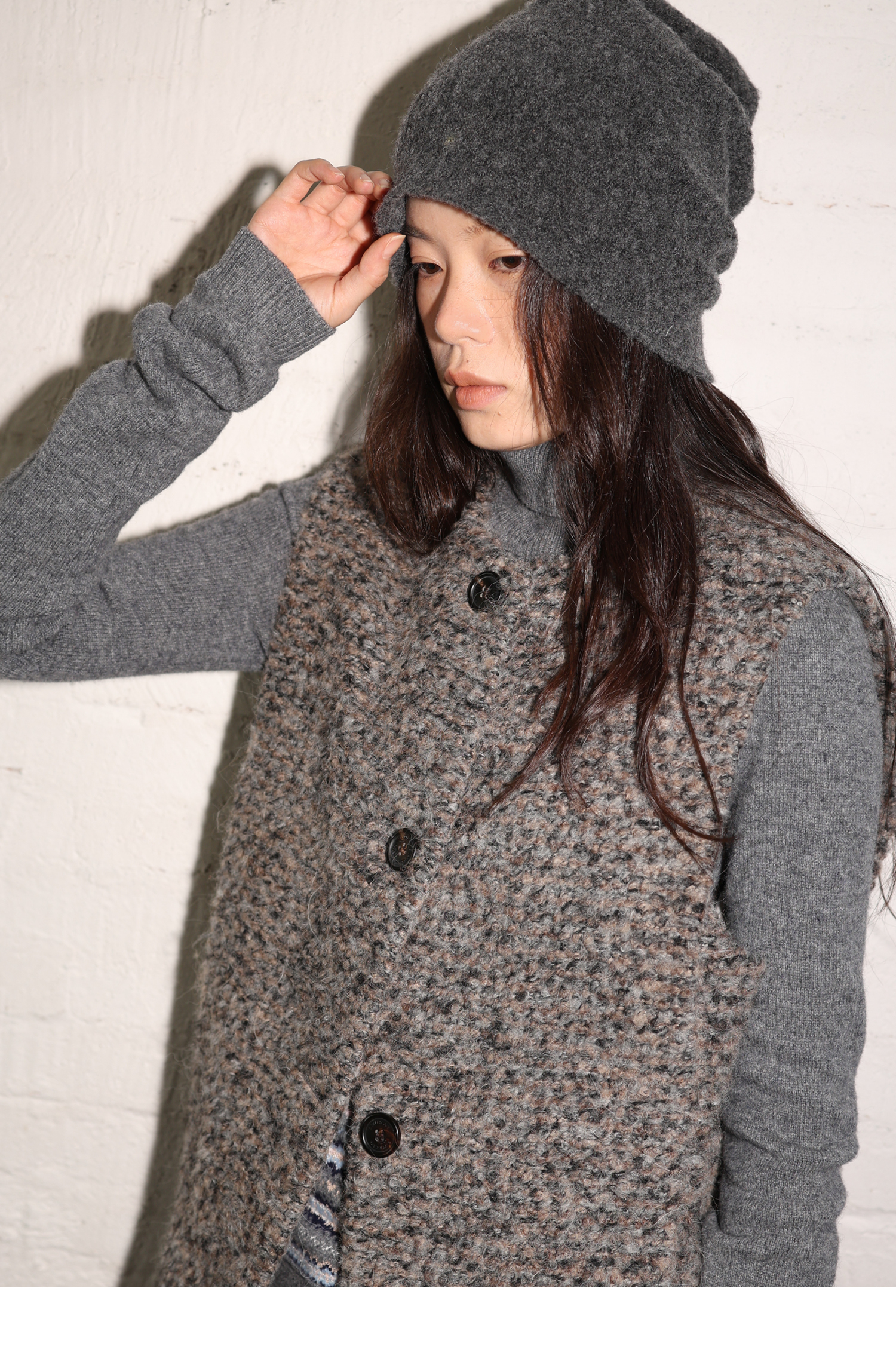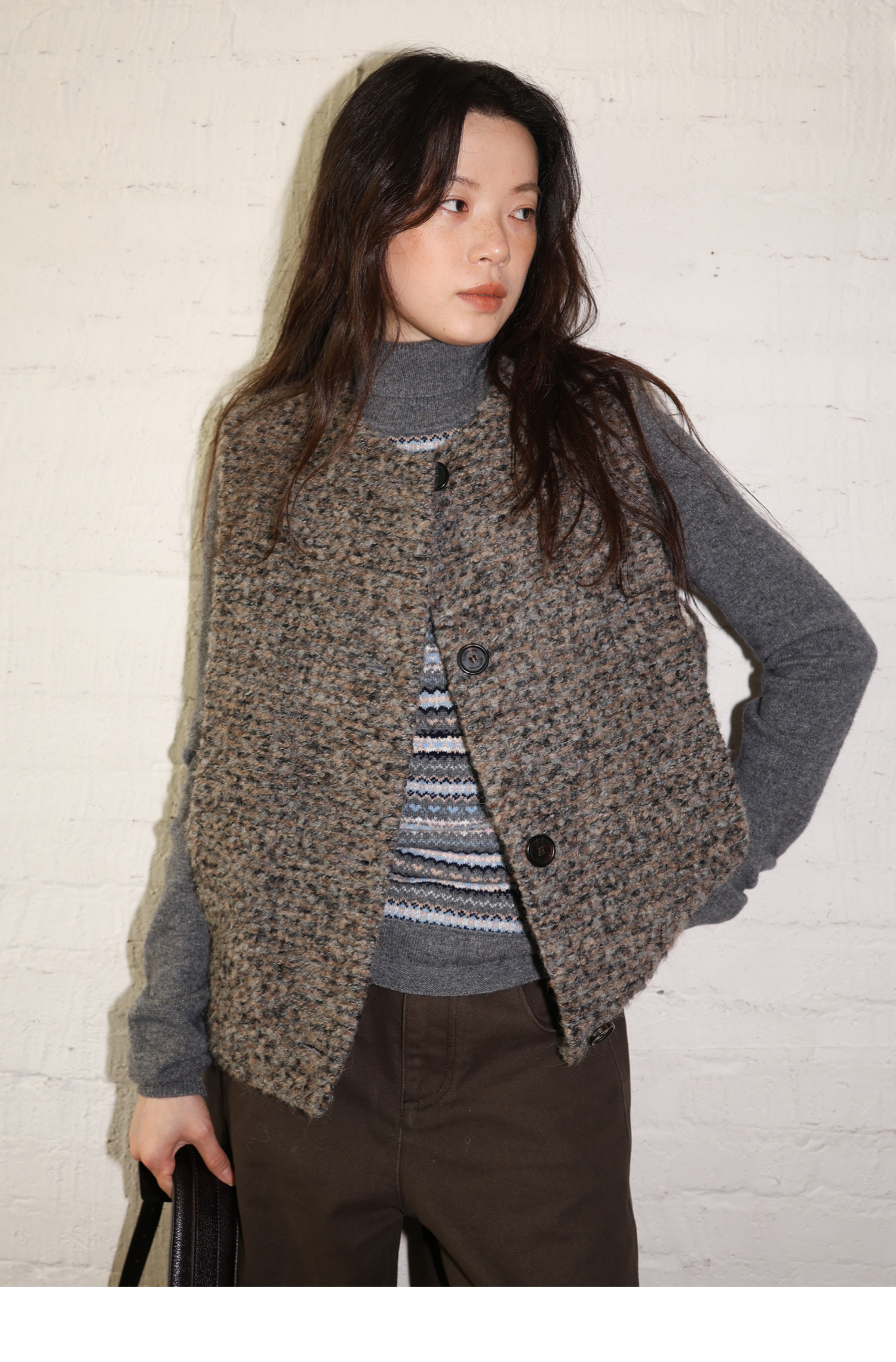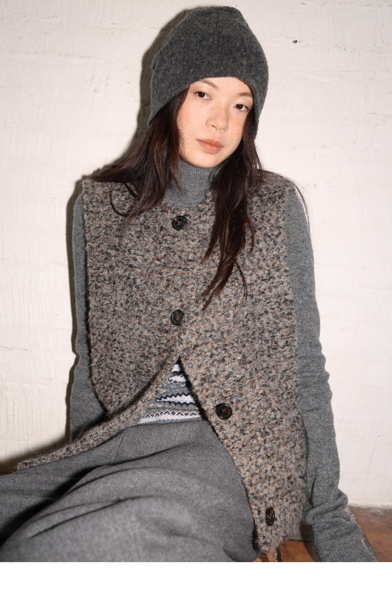 素舶 羊驼毛羊毛杂色圈圈毛粗花呢肌理感茧型圆领天然牛角扣马甲