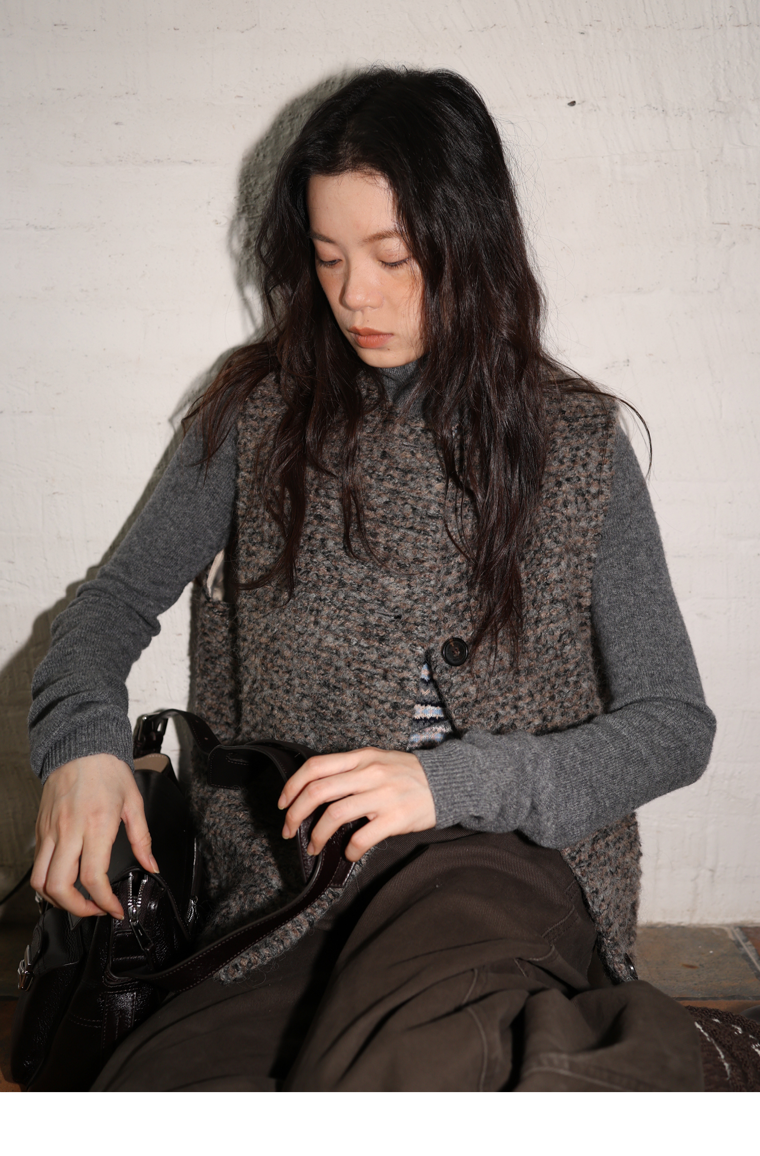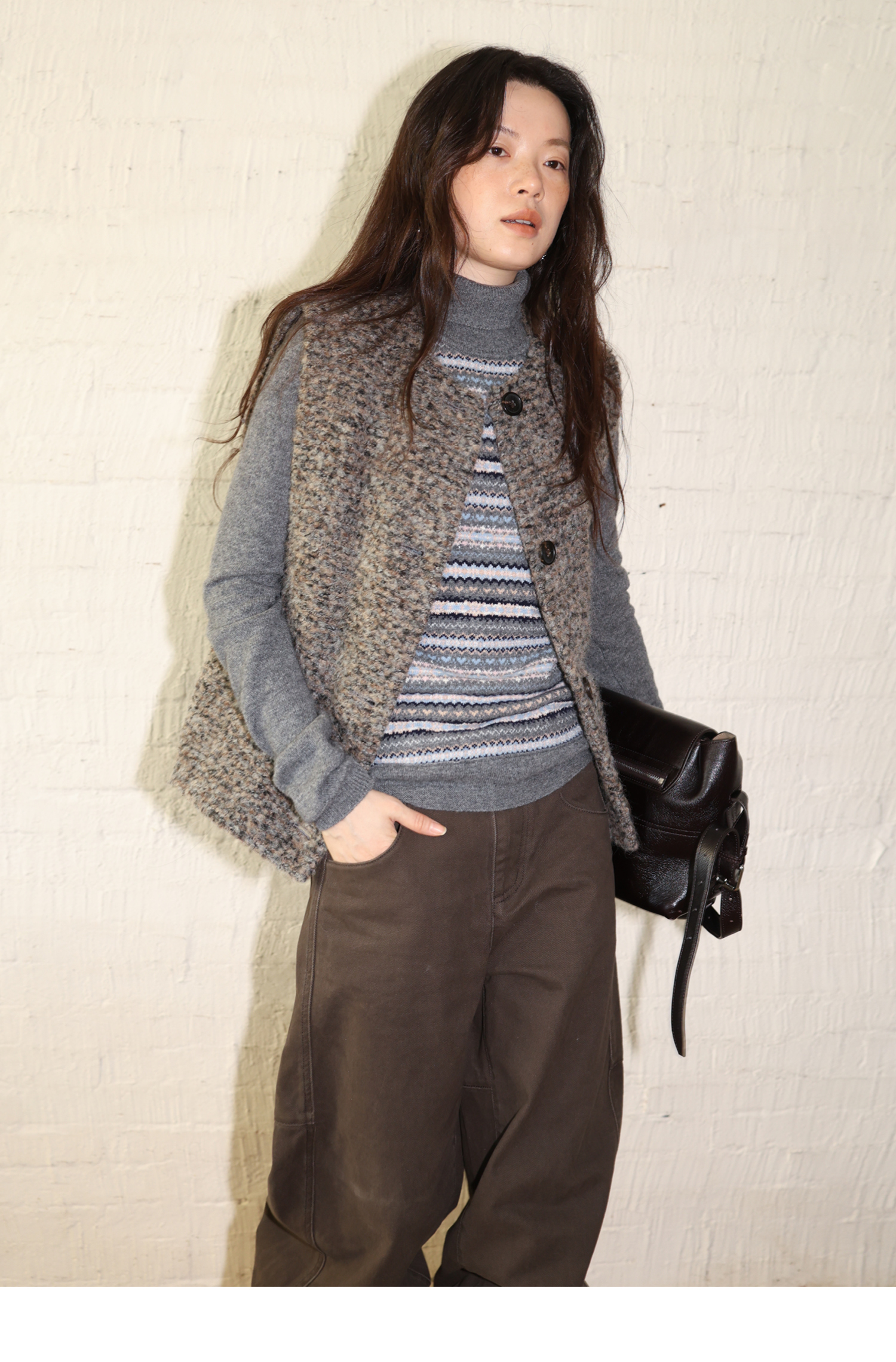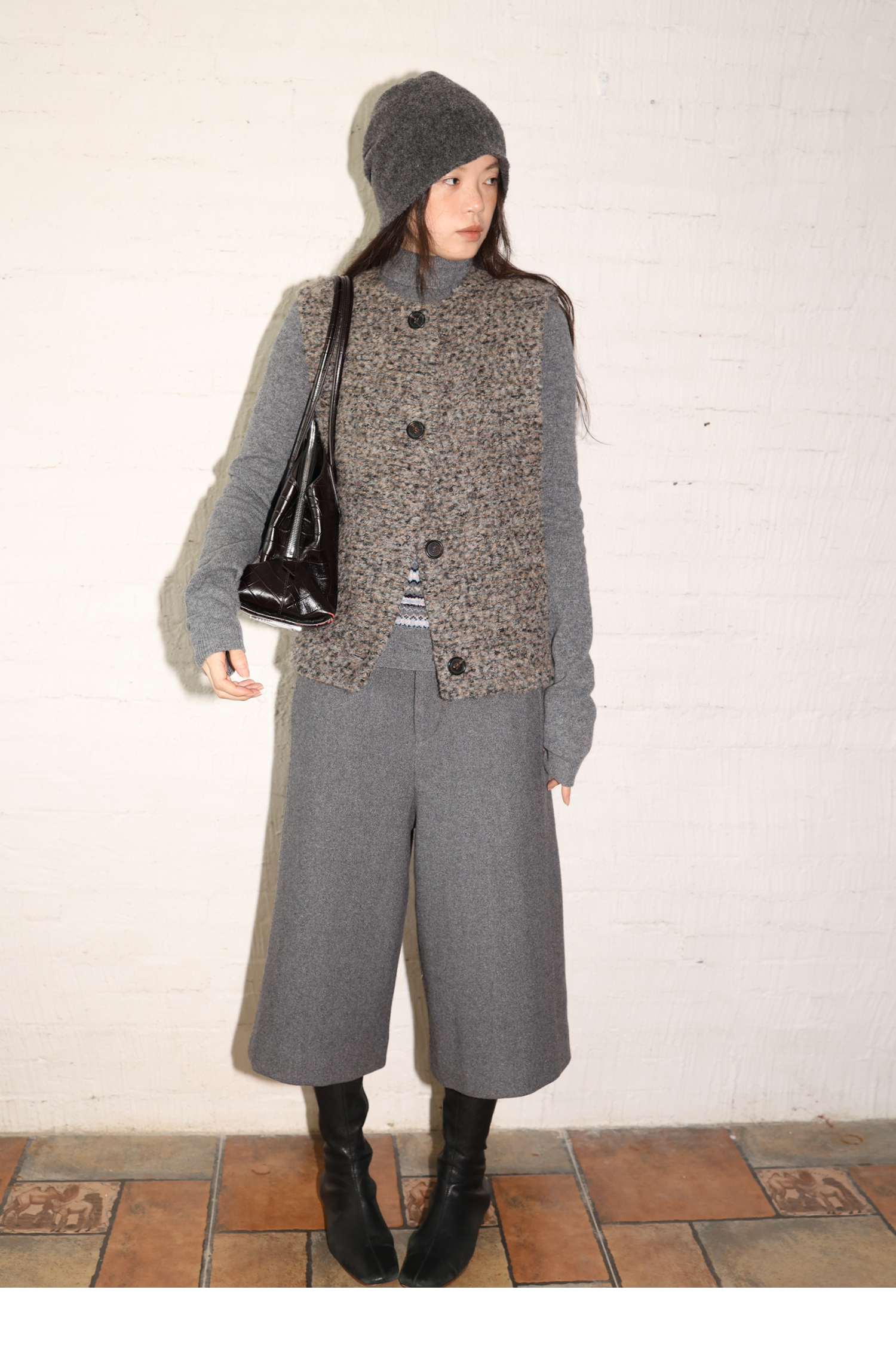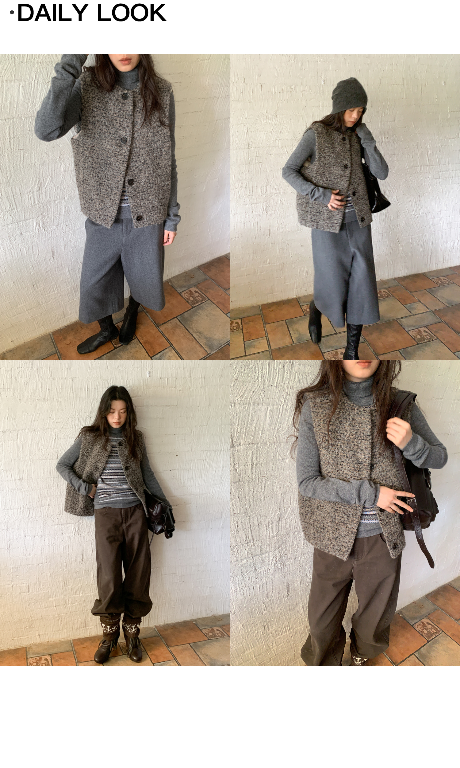 素舶 羊驼毛羊毛杂色圈圈毛粗花呢肌理感茧型圆领天然牛角扣马甲