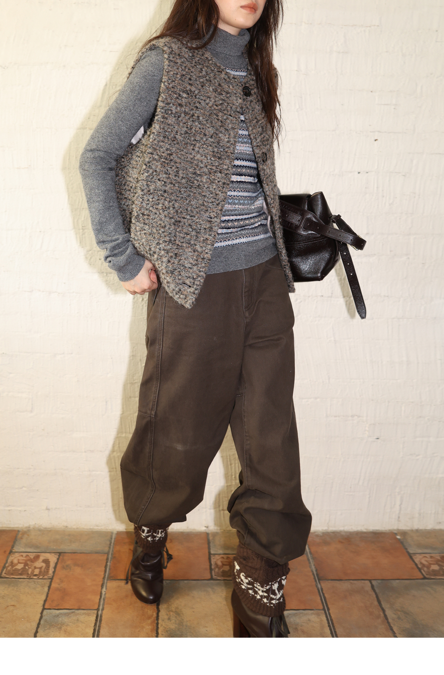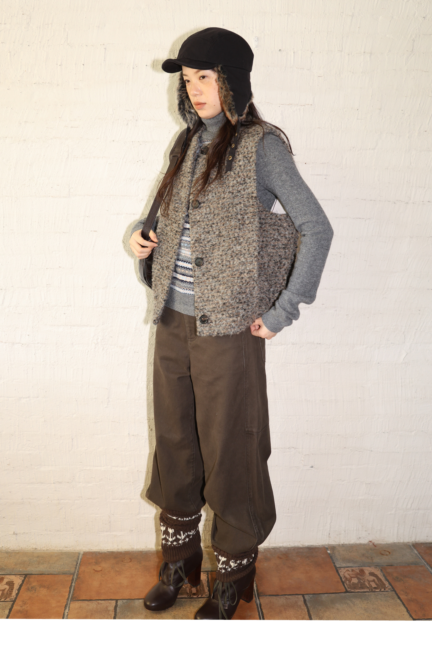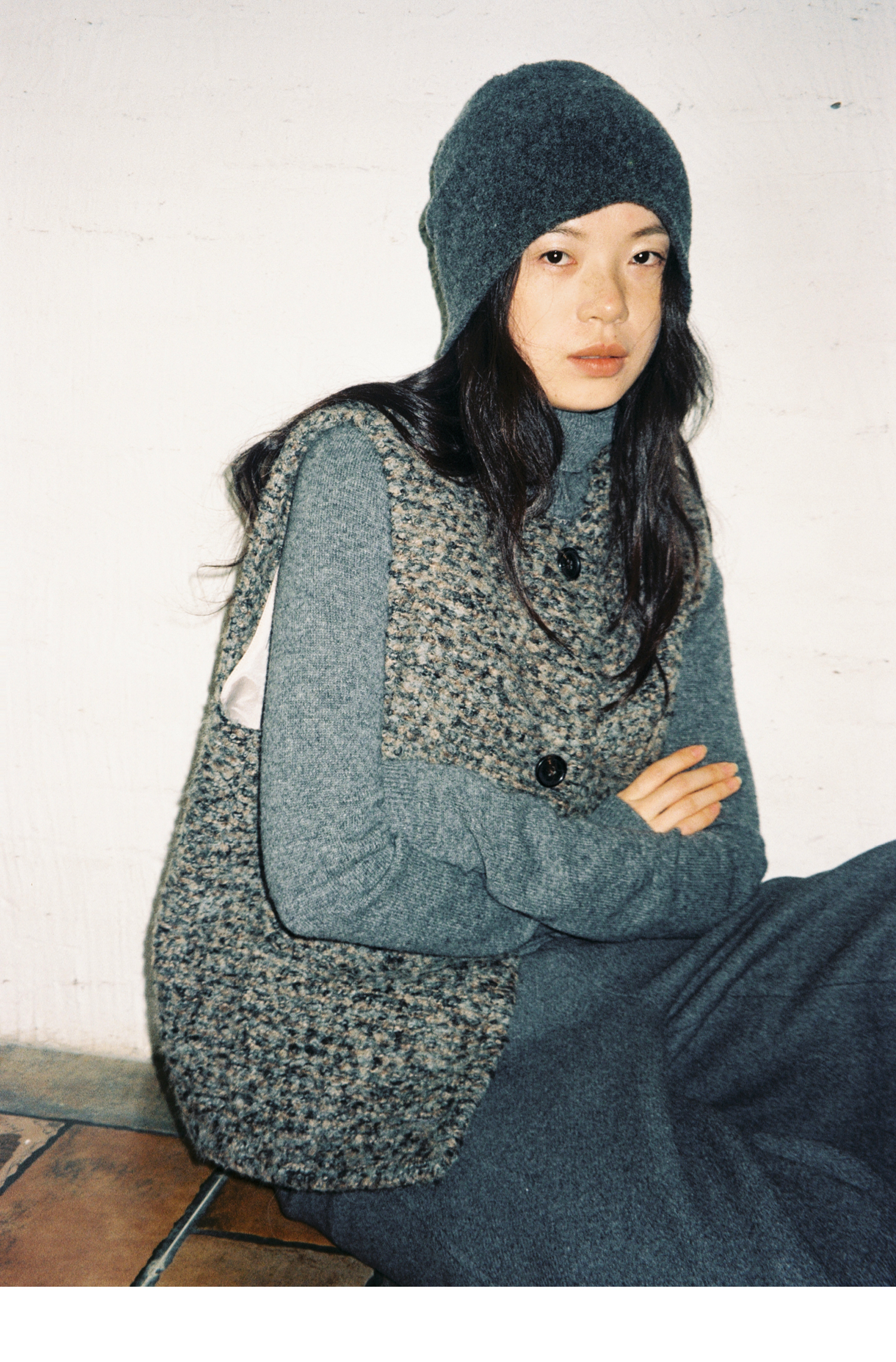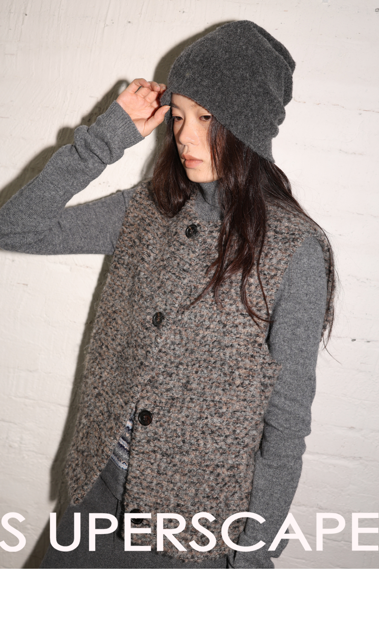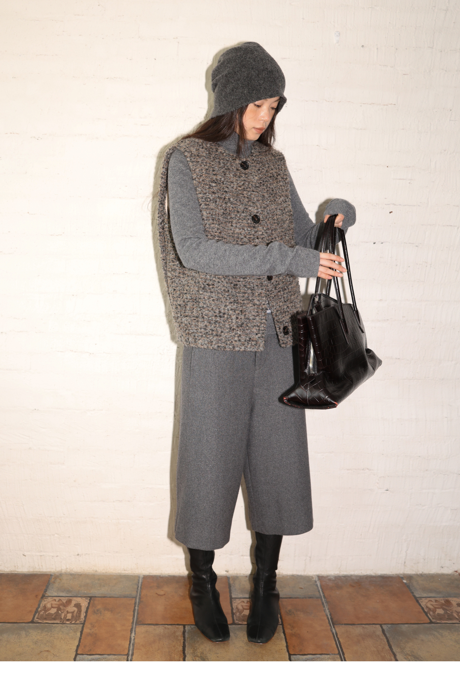 素舶 羊驼毛羊毛杂色圈圈毛粗花呢肌理感茧型圆领天然牛角扣马甲