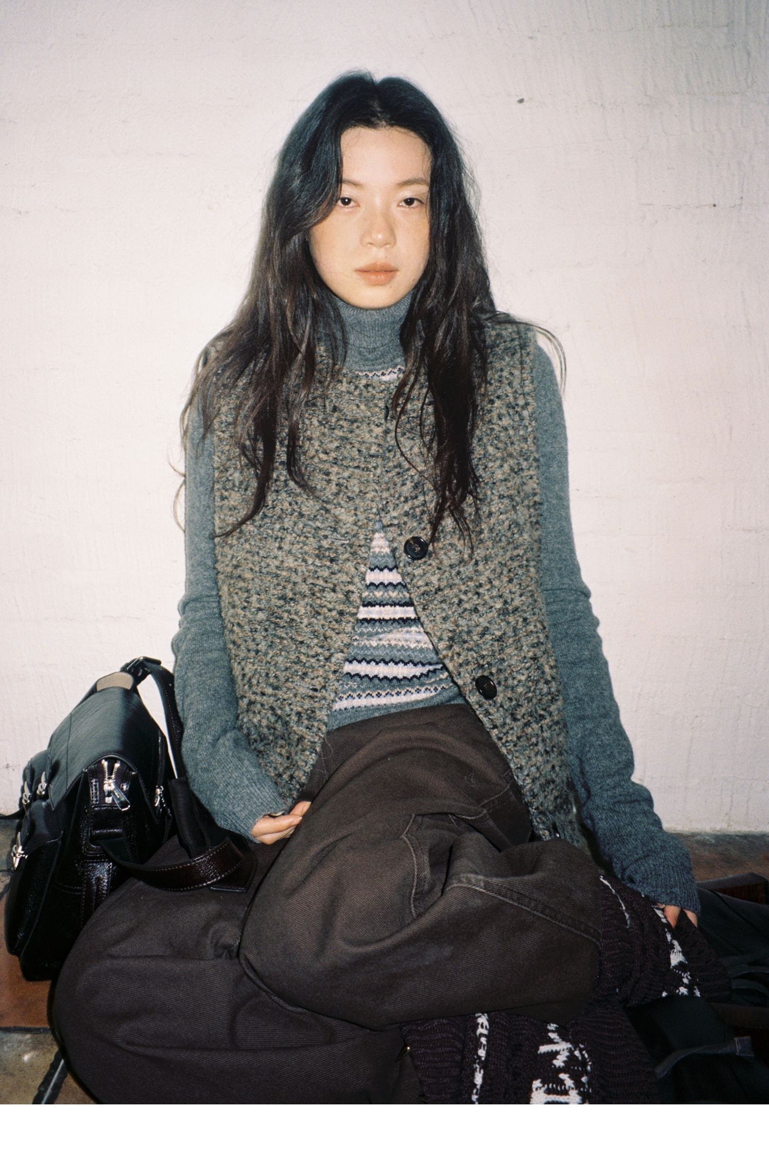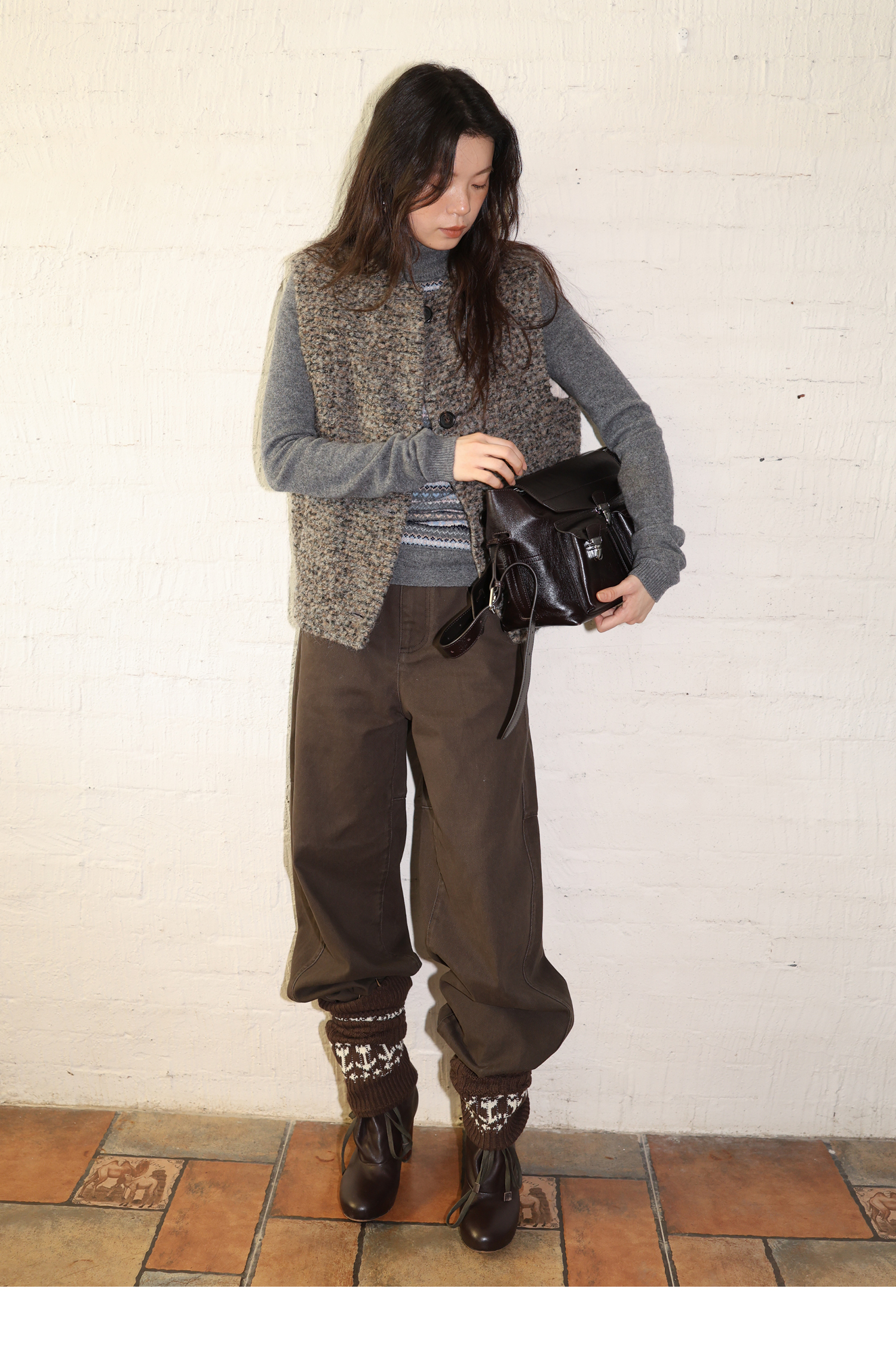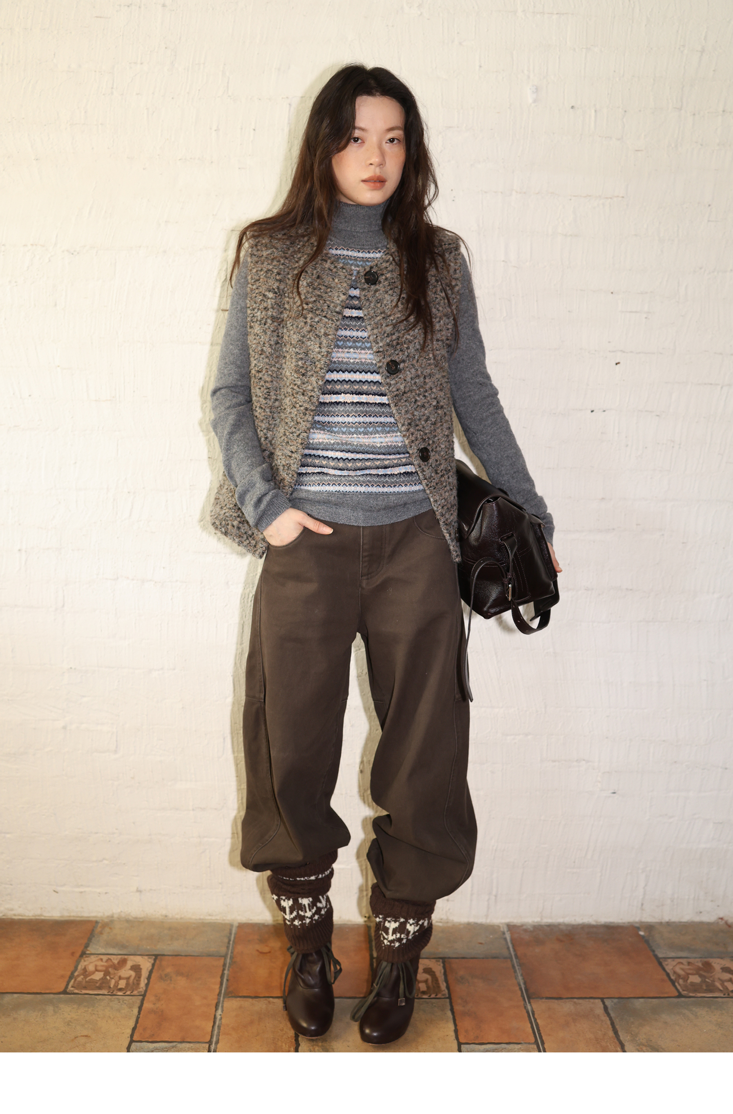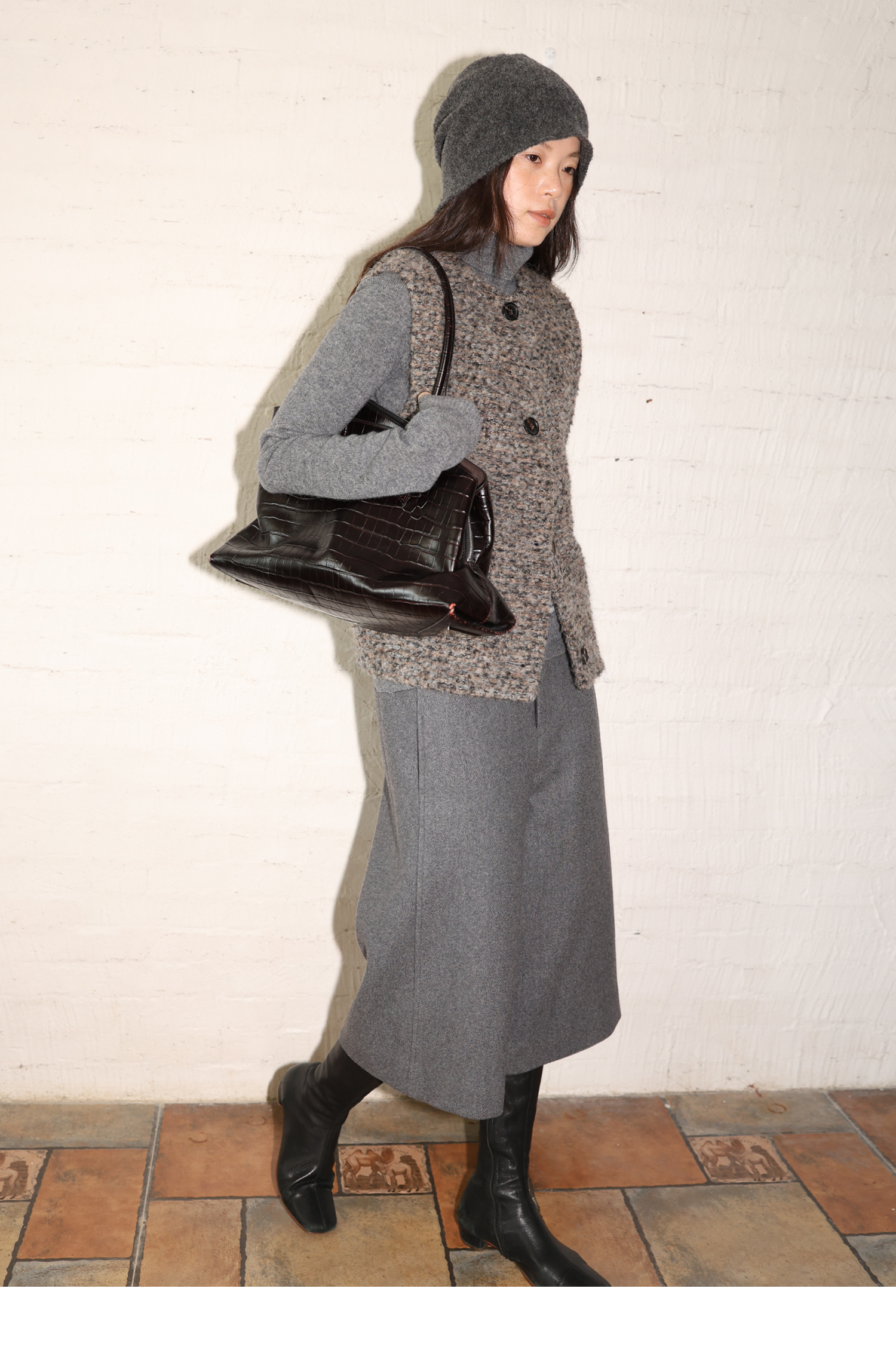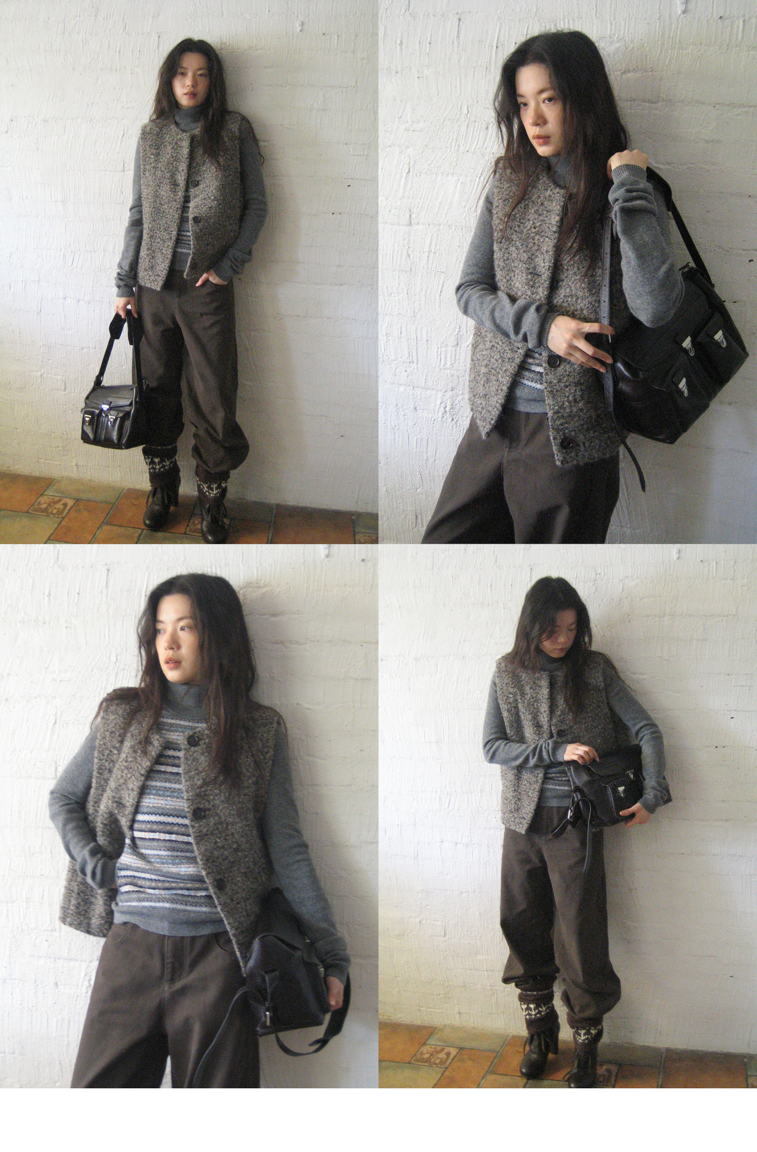 素舶 羊驼毛羊毛杂色圈圈毛粗花呢肌理感茧型圆领天然牛角扣马甲