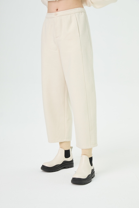水淼2025冬新款呢料休闲知性松紧腰加厚呢料休闲裤1656