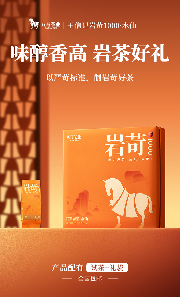 八马茶叶 新品特级武夷山岩茶岩苛系列水仙乌龙茶礼盒装256g