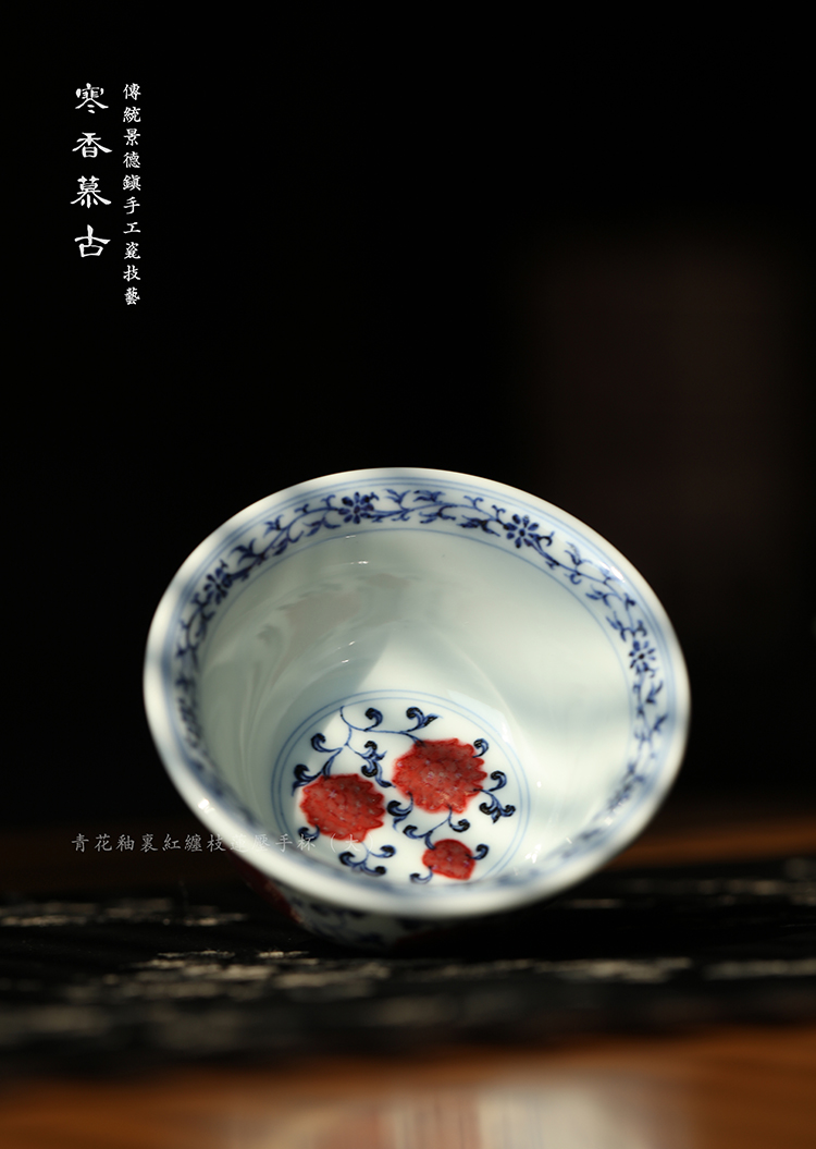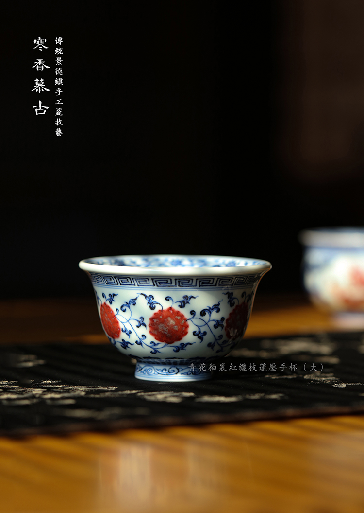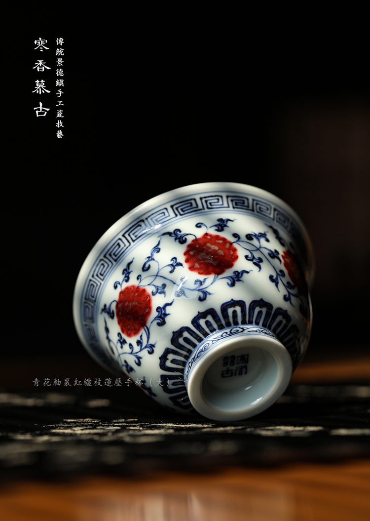 寒香慕古青花釉里红缠枝莲压手杯(大)(缺货)