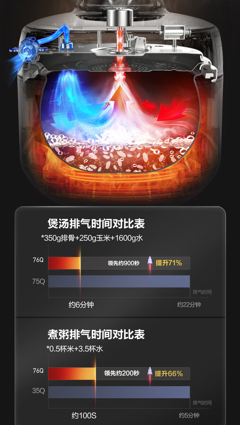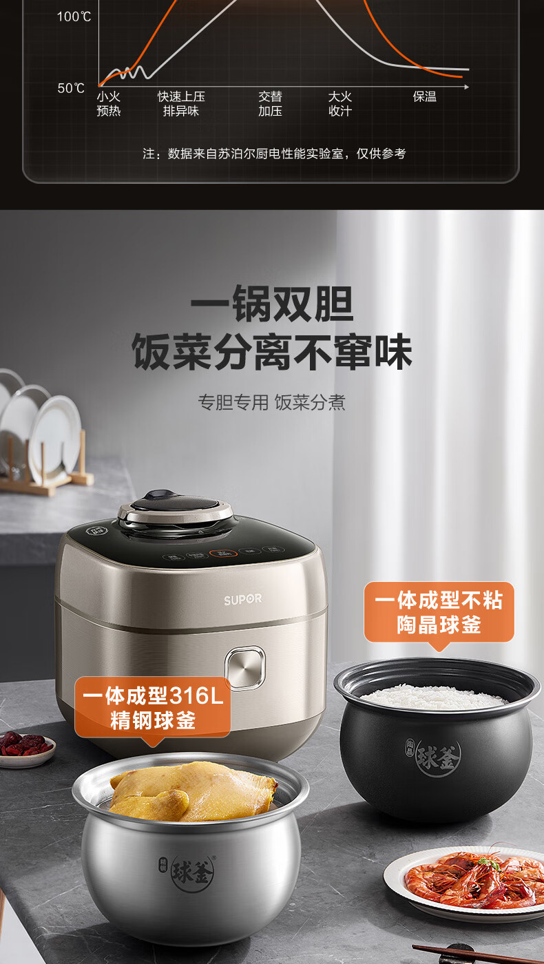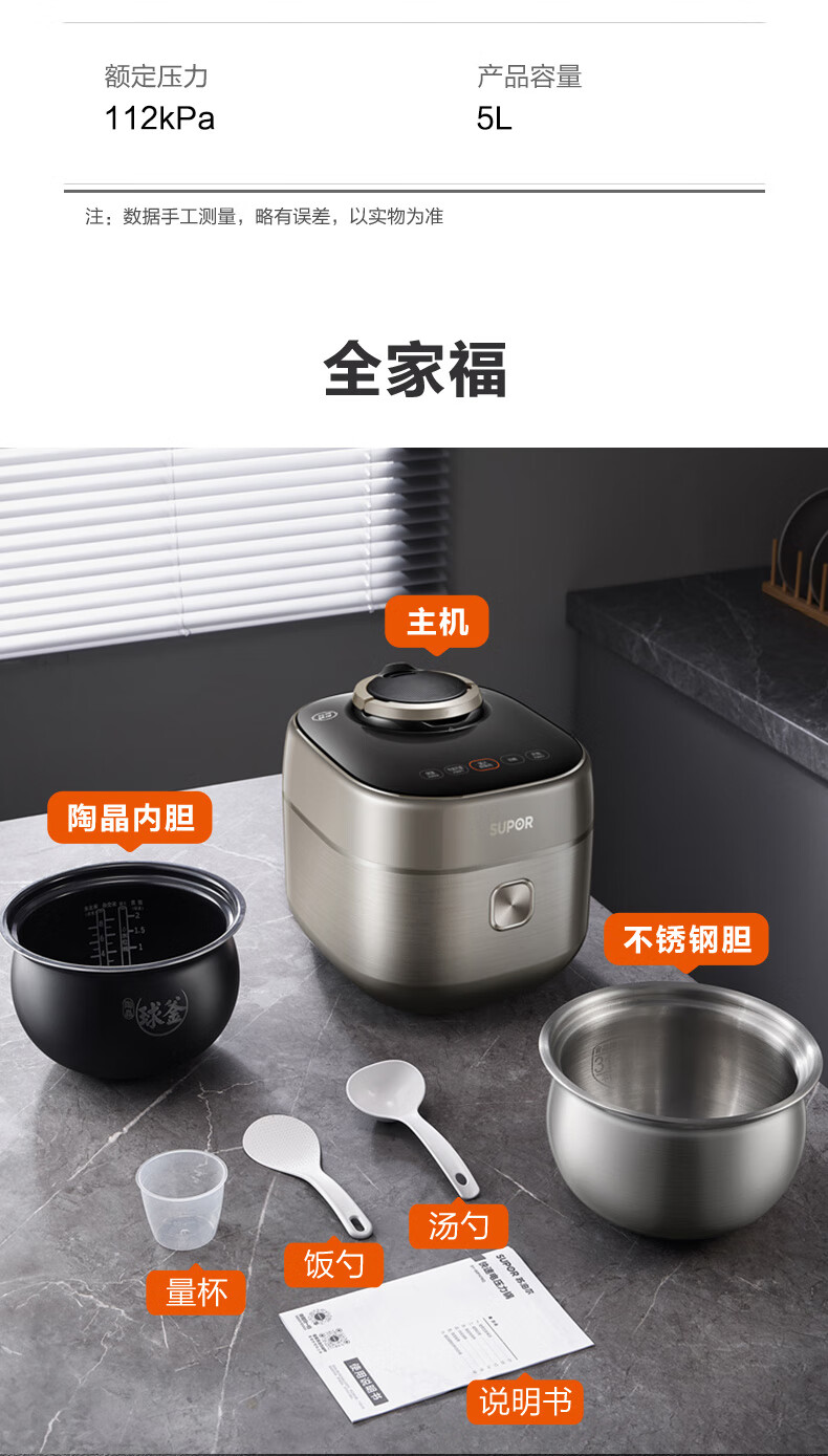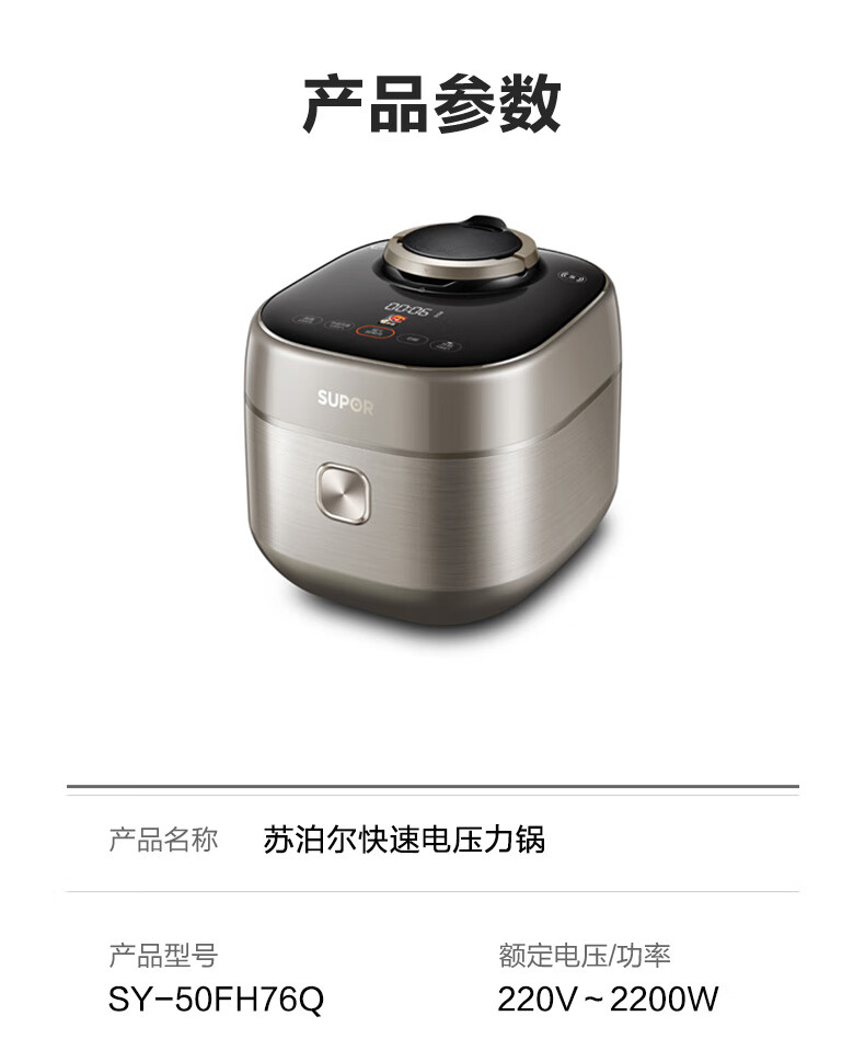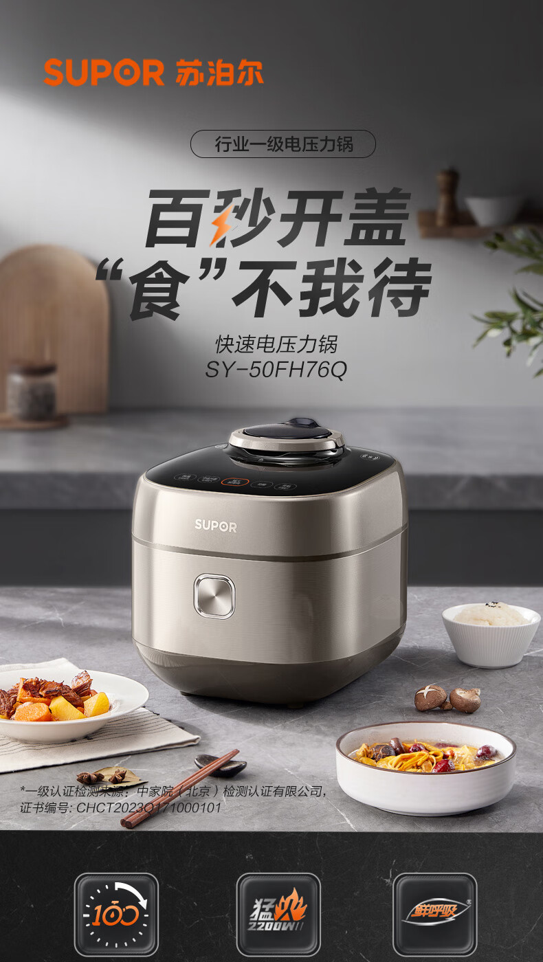 苏泊尔(SUPOR)快排100系列电压力锅鲜呼吸IH加热SY-50FH76Q双胆高压锅3-6人
