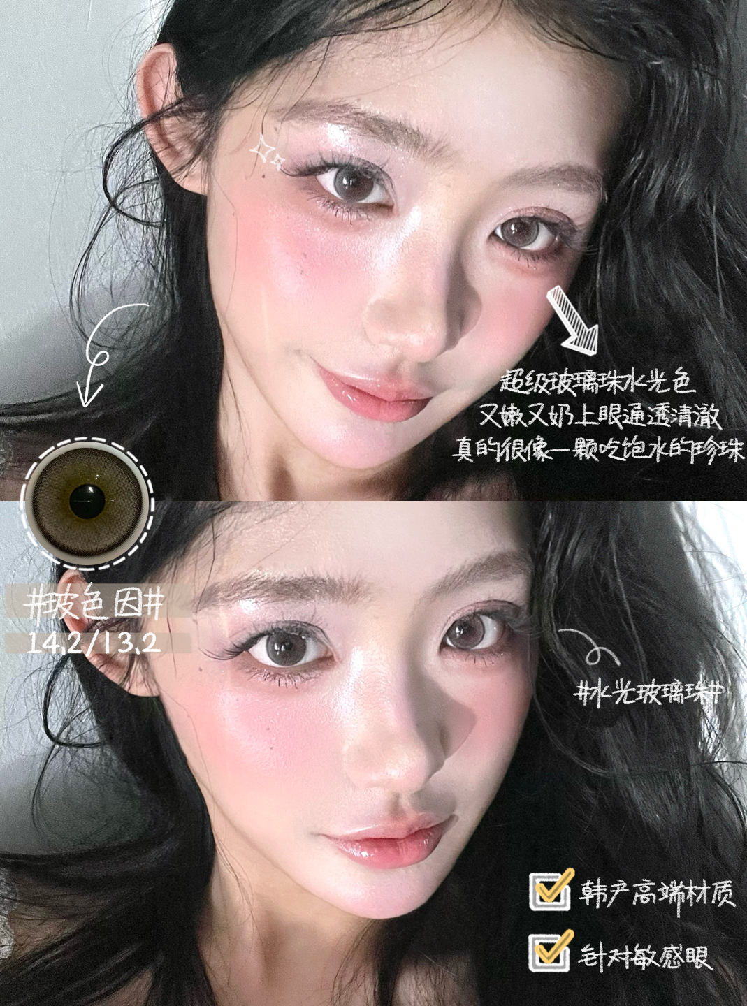 标注直径:14.2mm着色直径:13.2mm含水量:38%佩戴期限:半年型(建议六个月)可配:0-800度(有525/575)工厂:韩产icodi含硅水凝胶