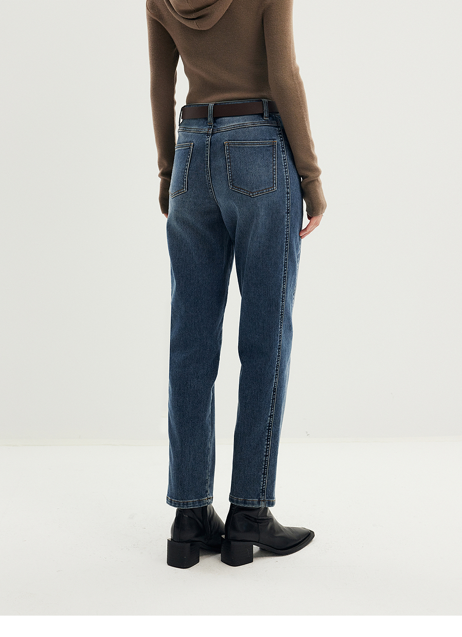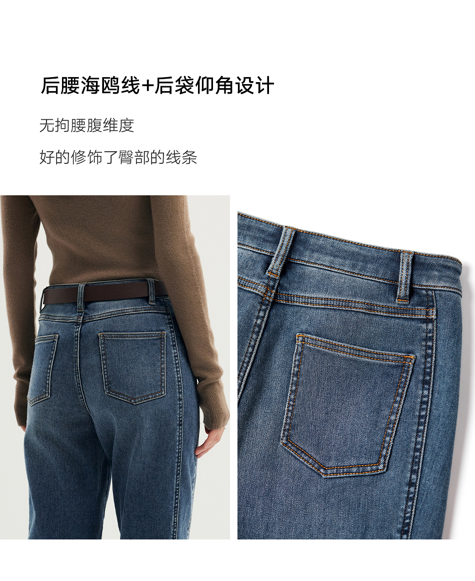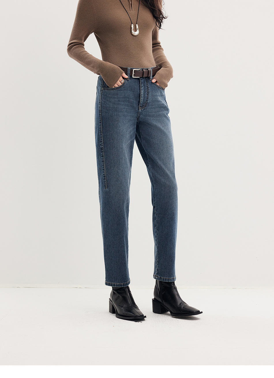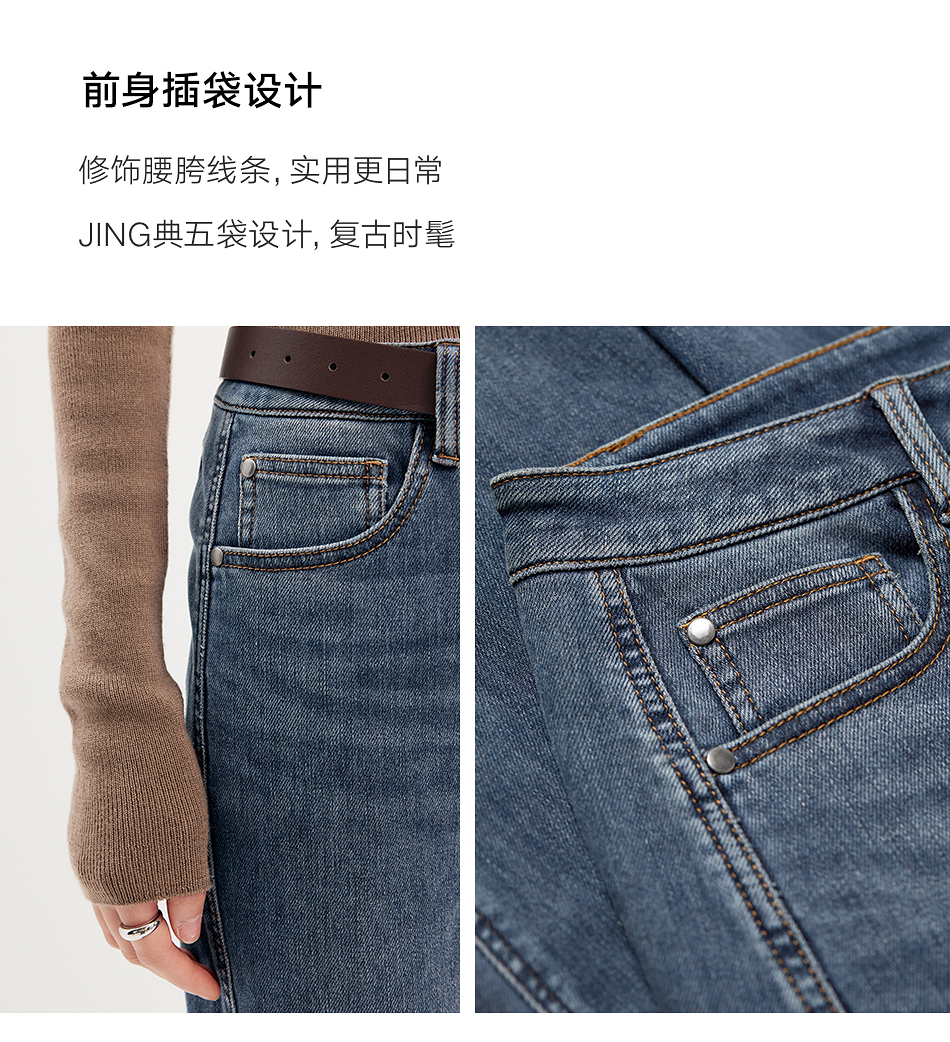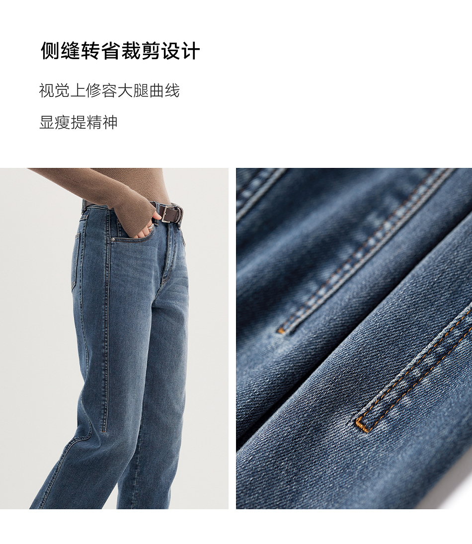 棉仓356619011-太阳能牛仔轻暖磨毛法棍裤高腰九分牛仔裤