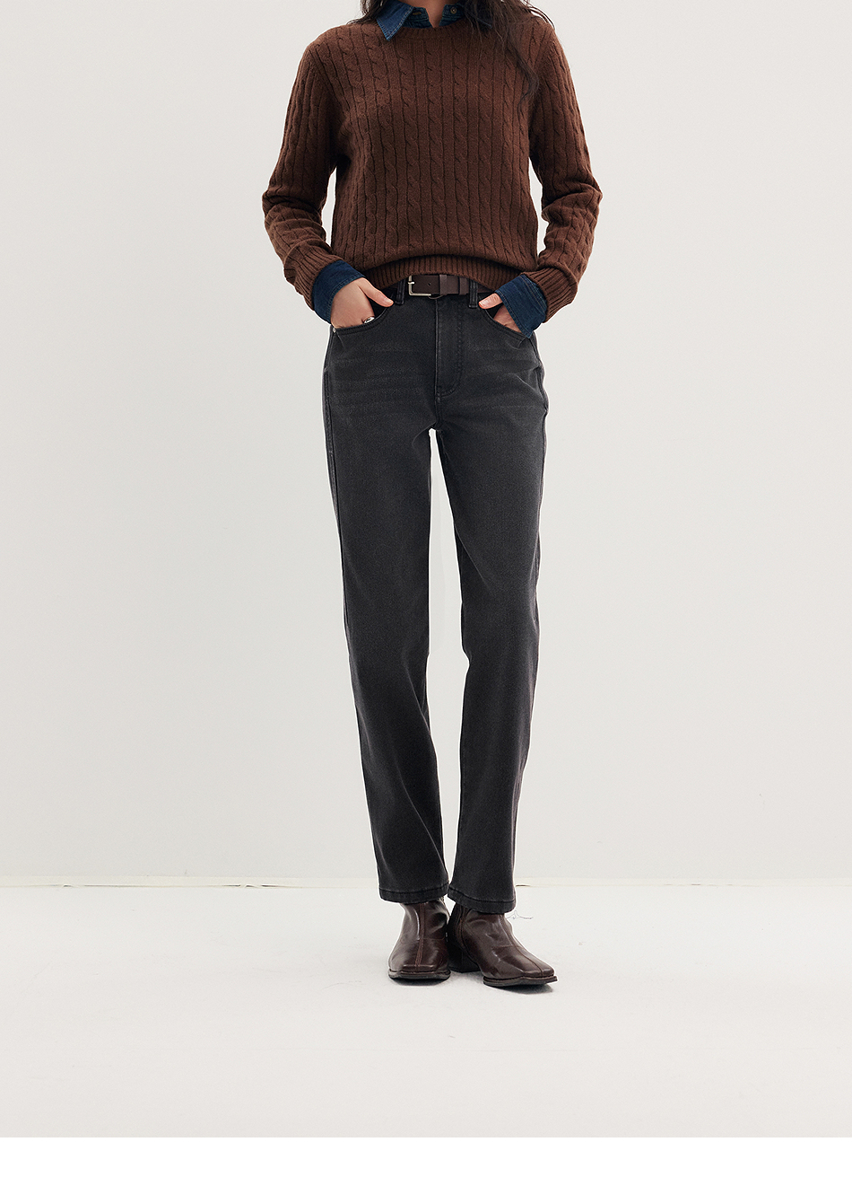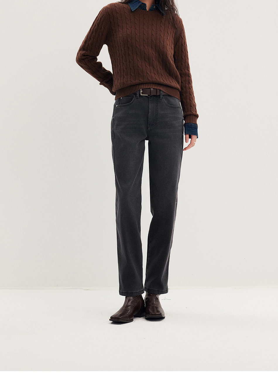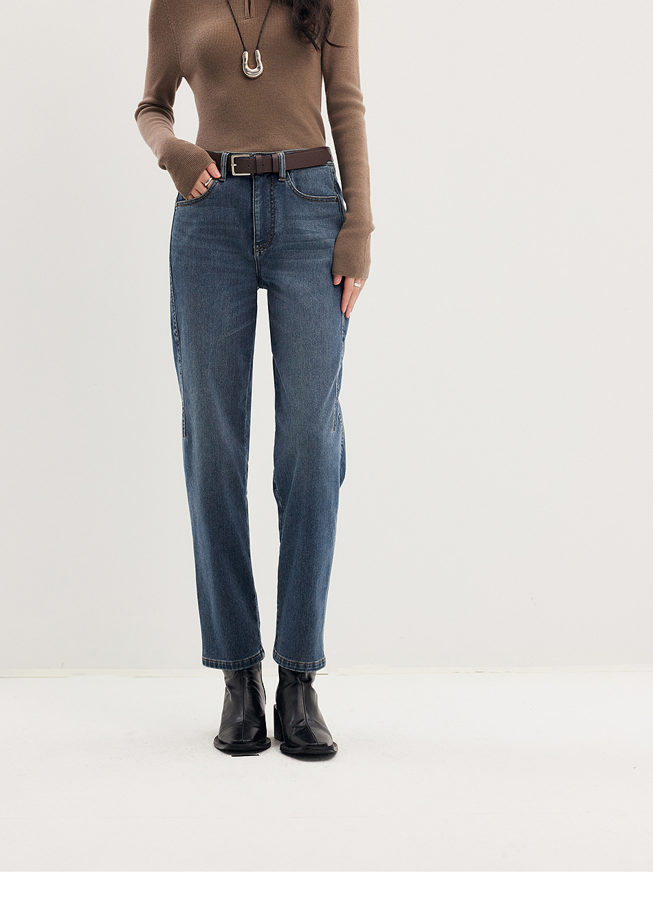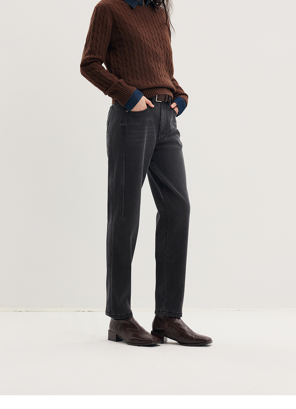 棉仓356619011-太阳能牛仔轻暖磨毛法棍裤高腰九分牛仔裤