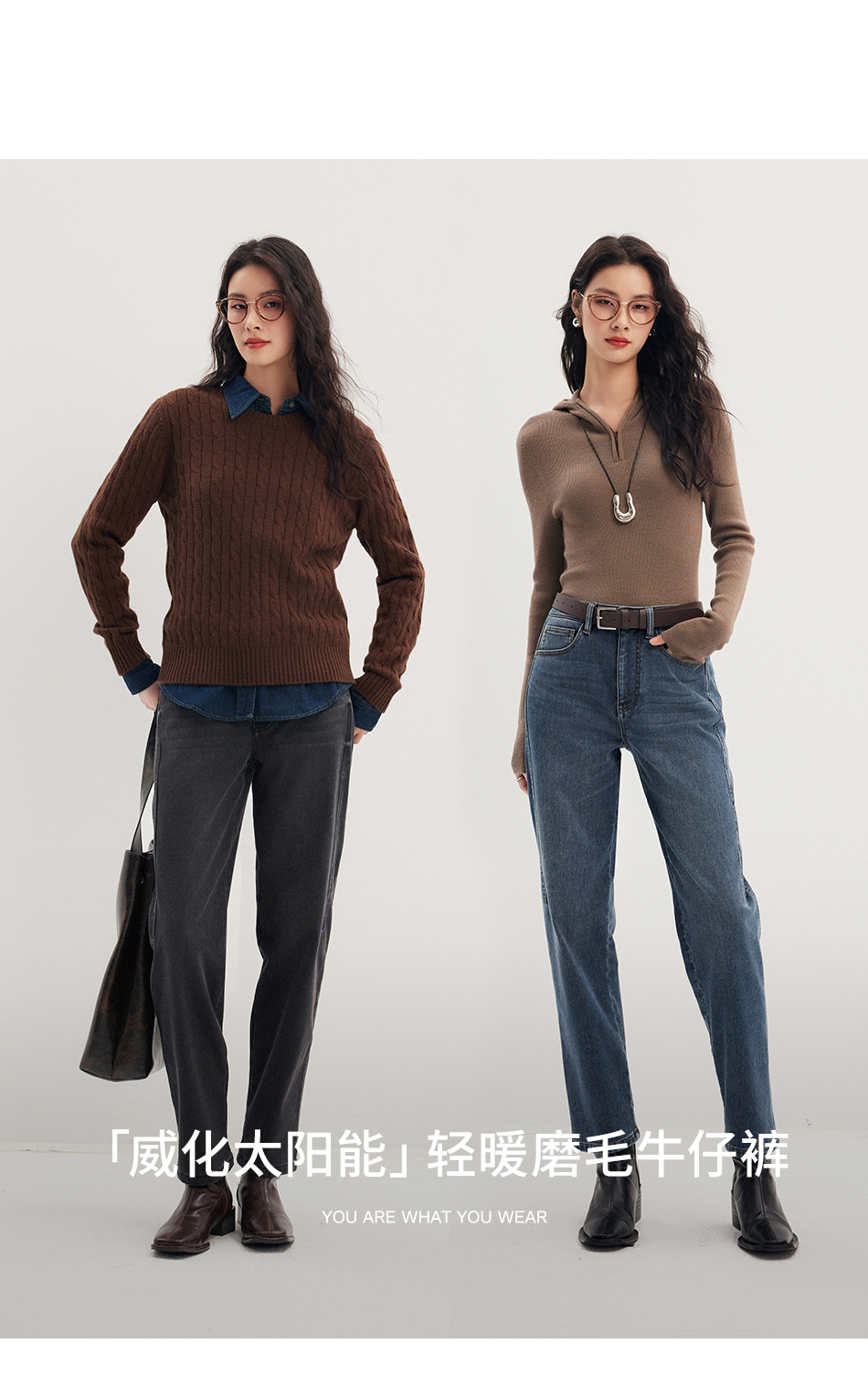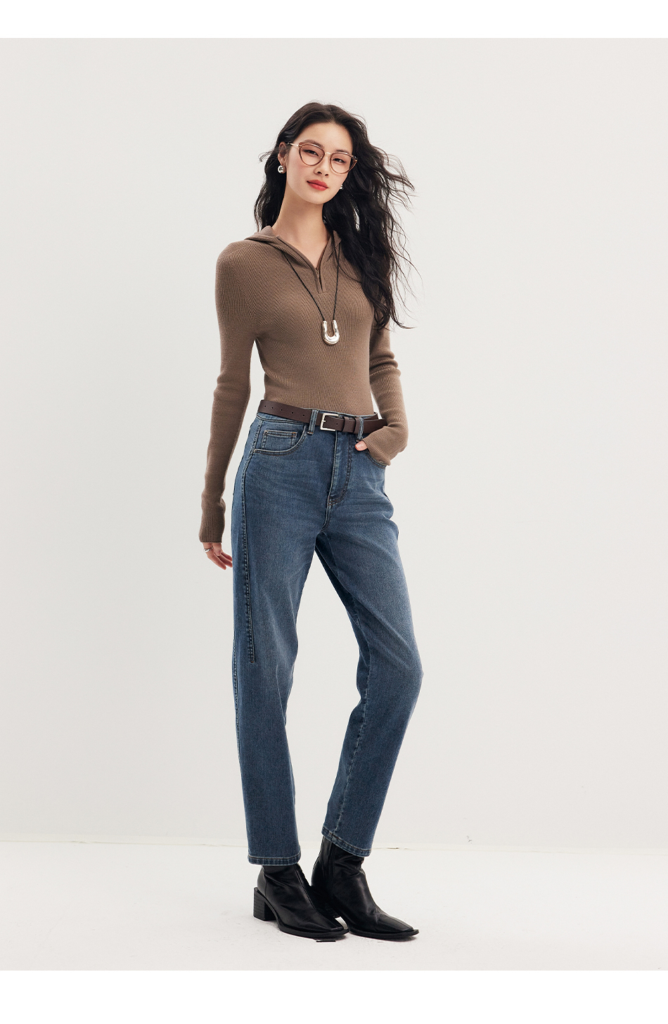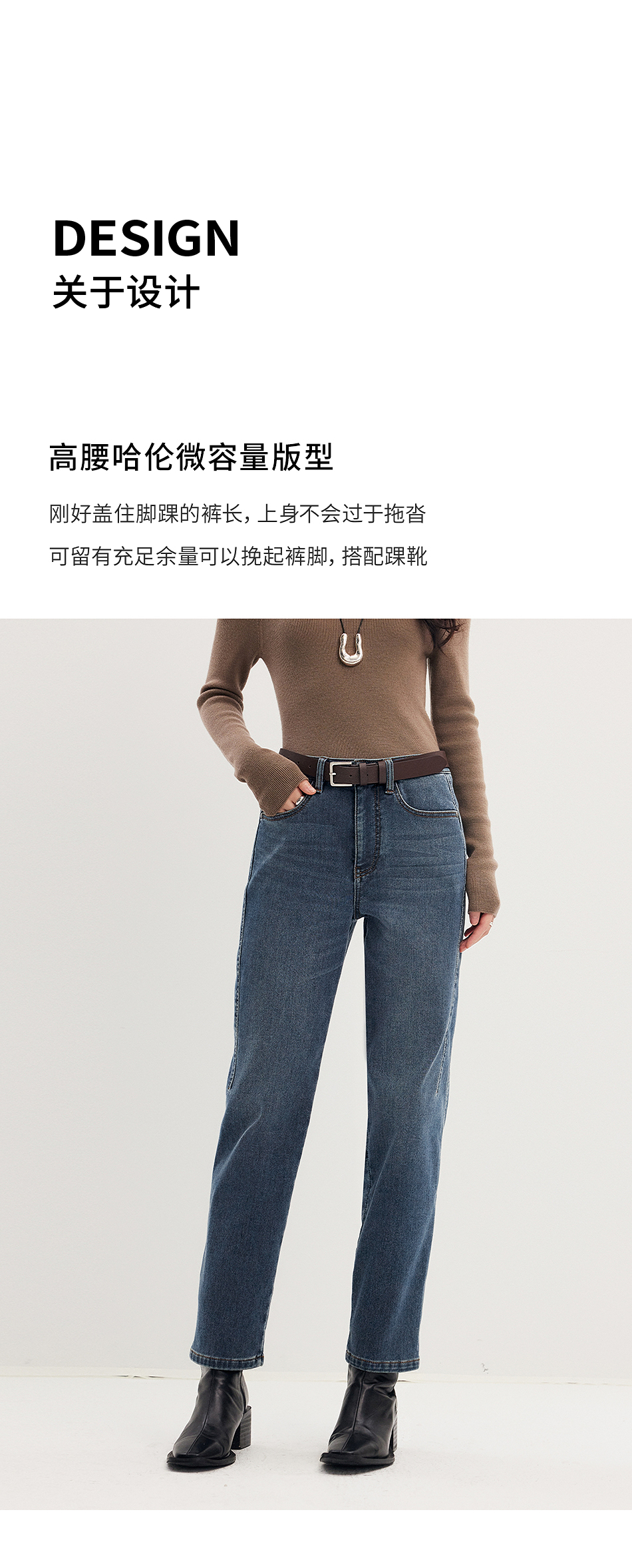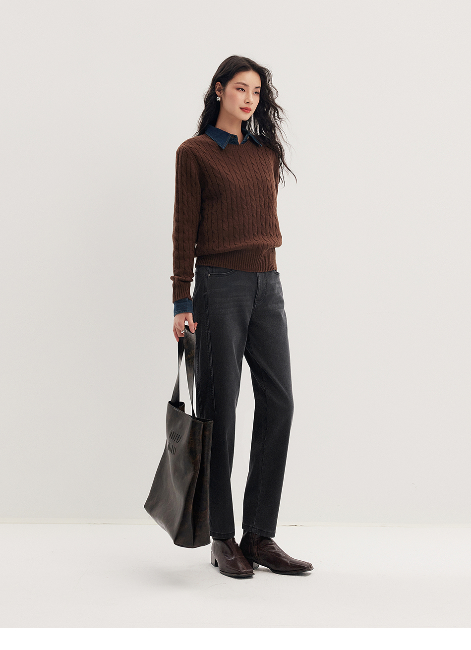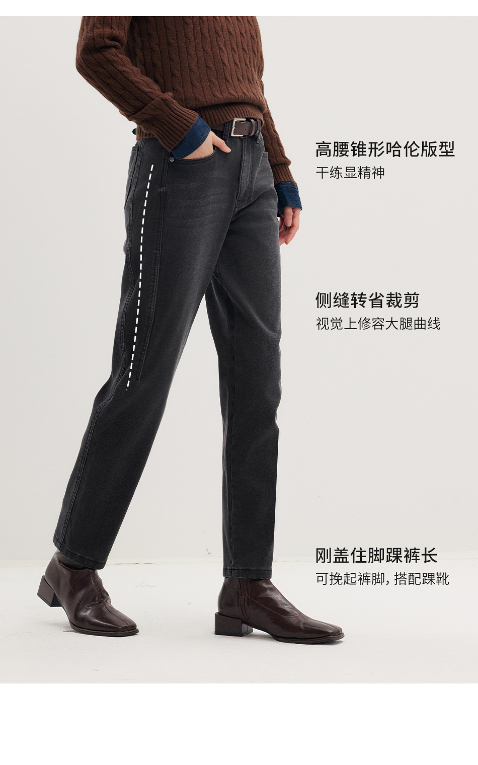 棉仓356619011-太阳能牛仔轻暖磨毛法棍裤高腰九分牛仔裤