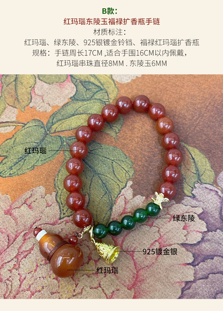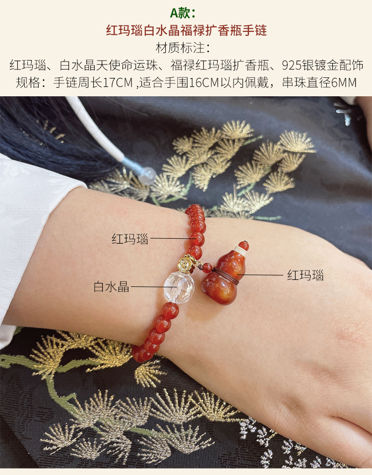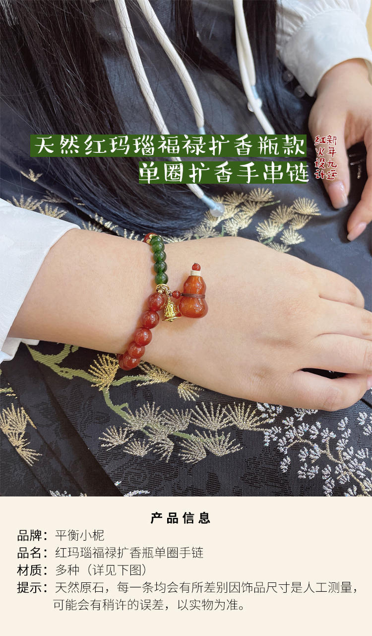 天然红玛瑙福禄扩香瓶款单圈扩香手串链 新年 九运红火设计 大小朋友简约大气款