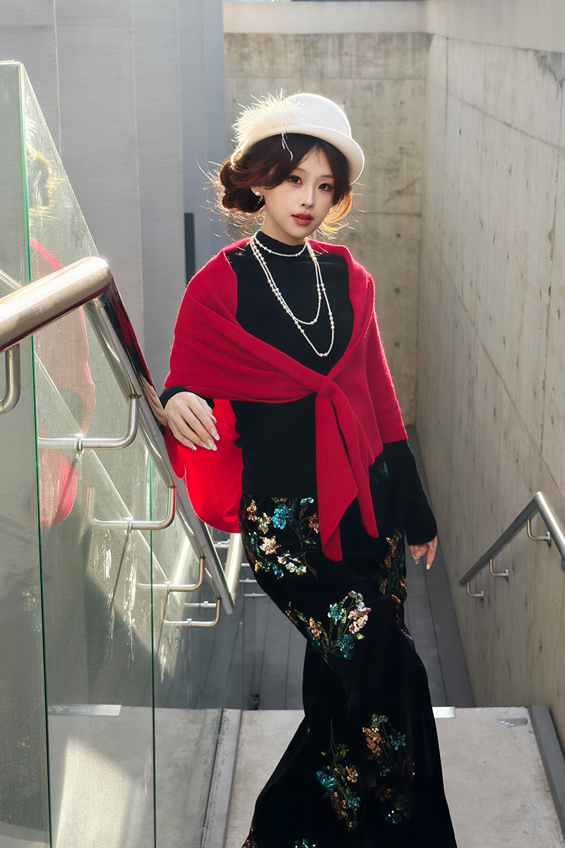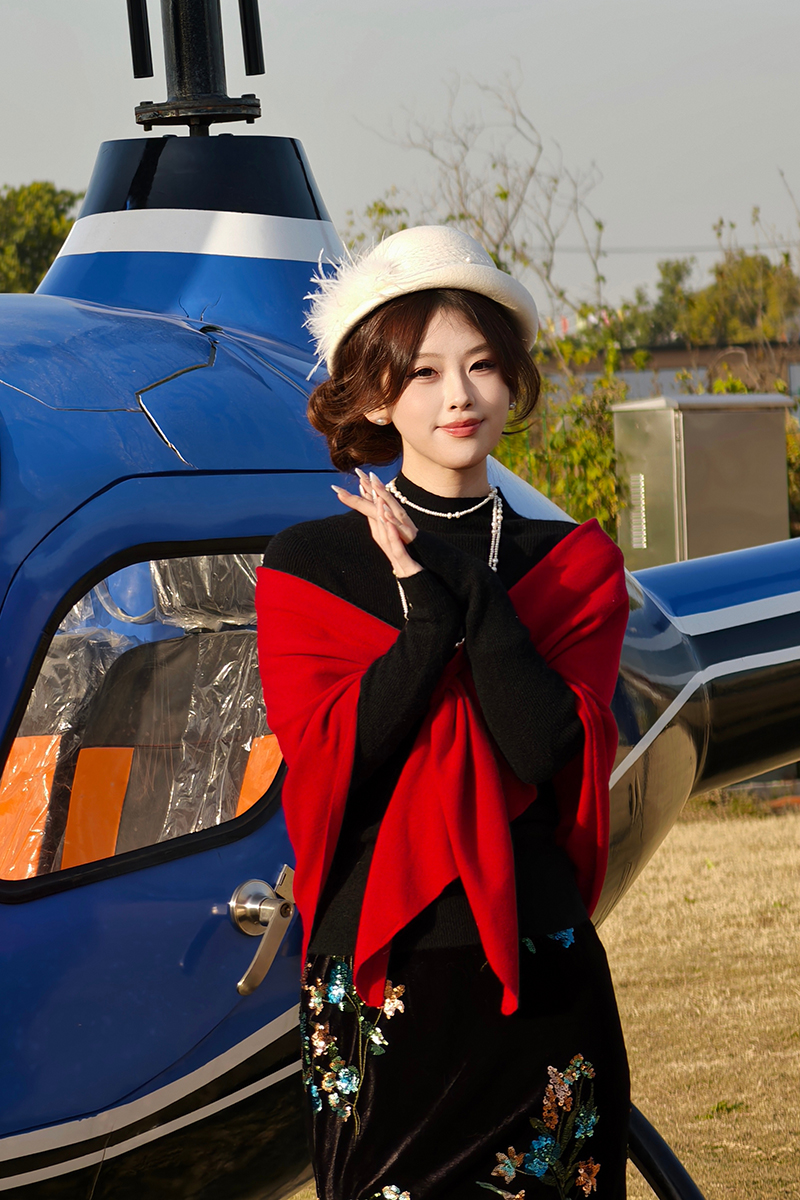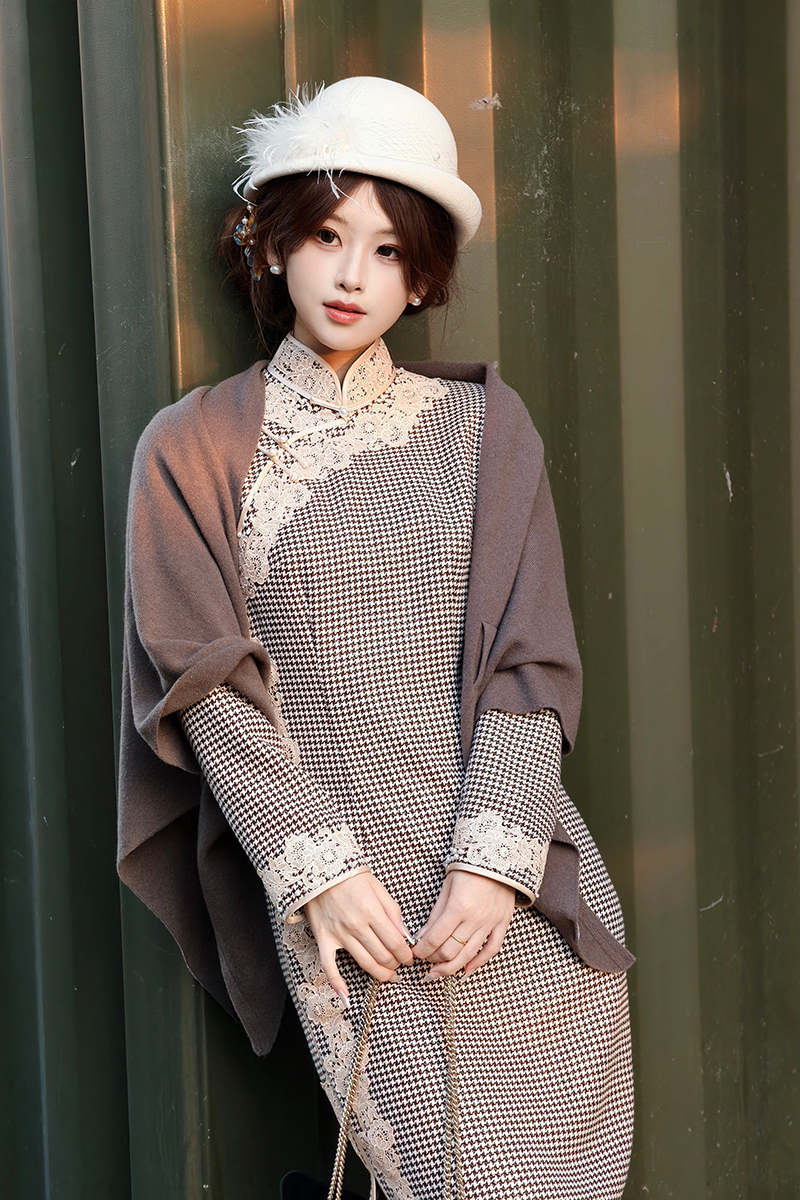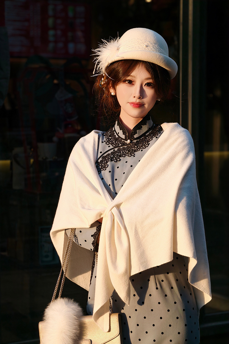 帽侧那簇羽毛像刚掠过梧桐叶的风,蕾丝织带缀的细闪是旗袍盘扣的微光。