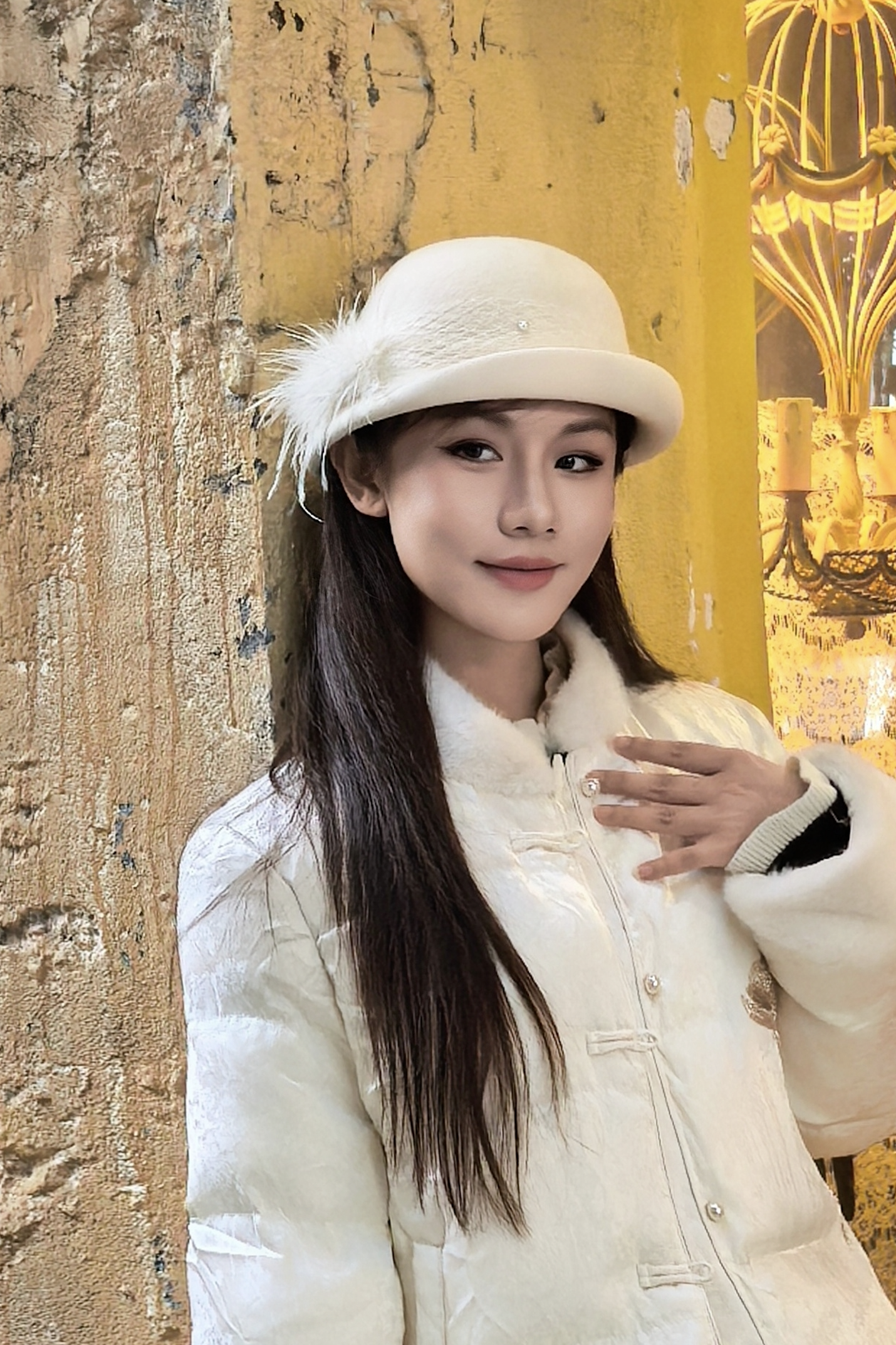 一戴上这顶圆顶礼帽,才懂什么叫 “秋日氛围感作弊器”—— 软呢面料是被阳光晒暖的云朵触感,帽型是巴黎左岸走出来的松弛弧度,偏不做刻板的复古款,偏要把中式旗袍的 “柔” 揉进法式帽檐的 “懒” 里。