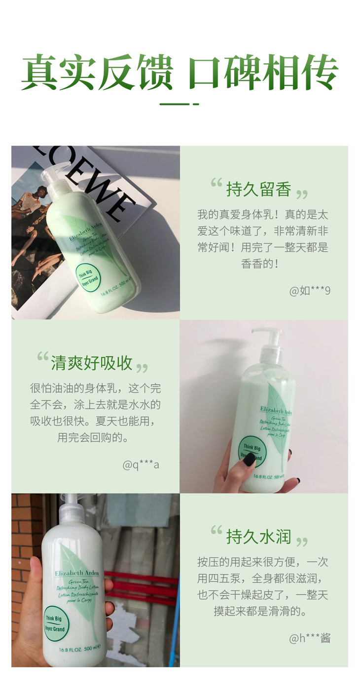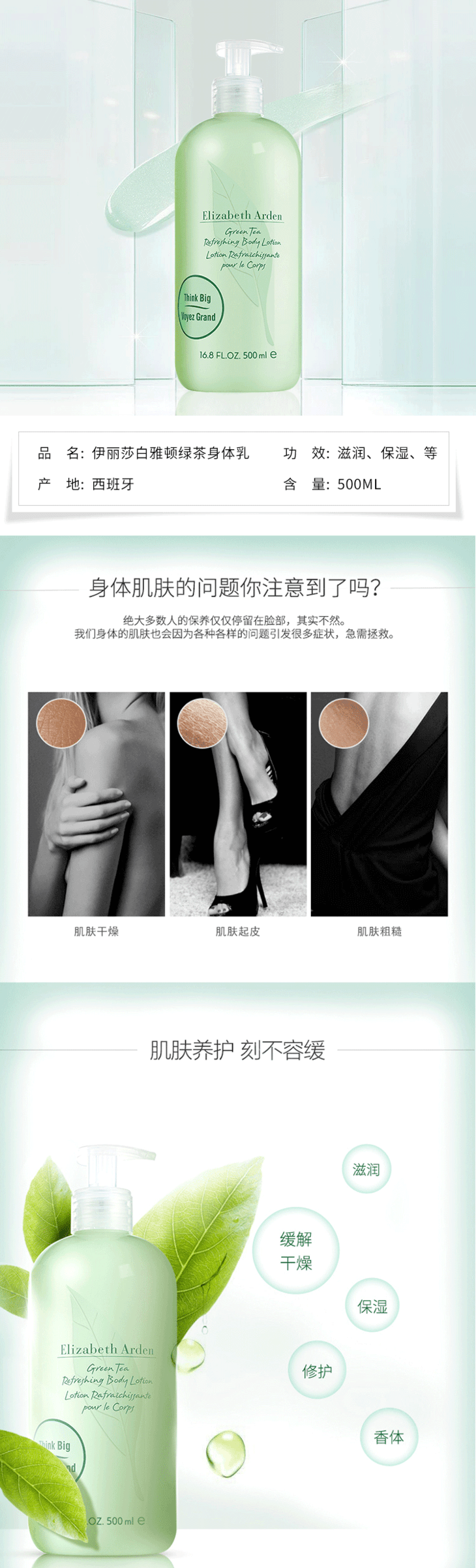 现货▲伊丽莎白雅顿绿茶身体乳 持久保湿 滋润不油腻500ml