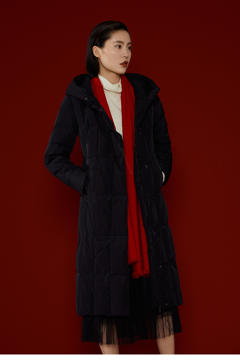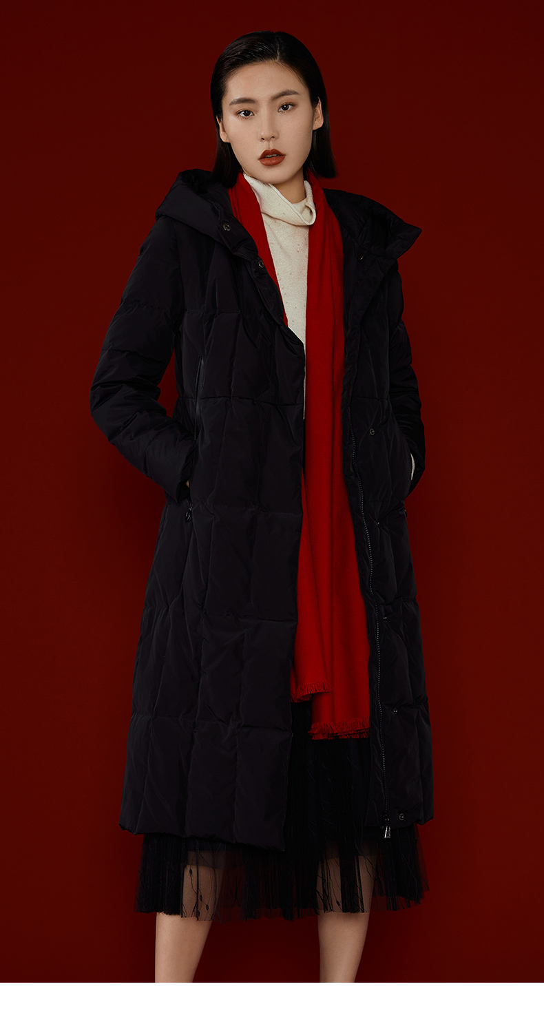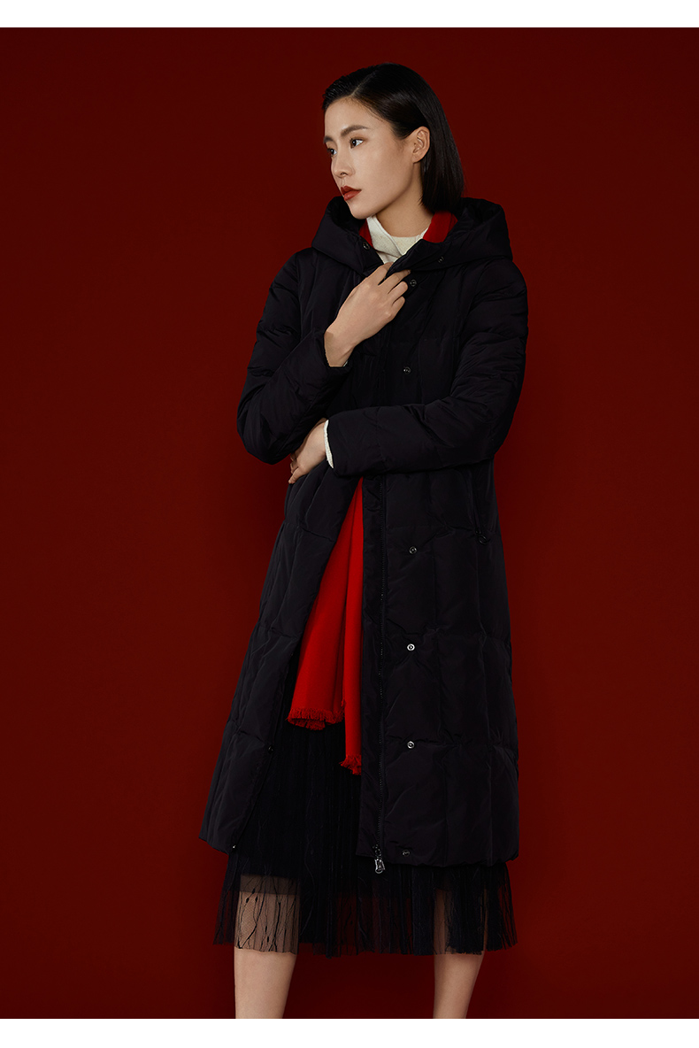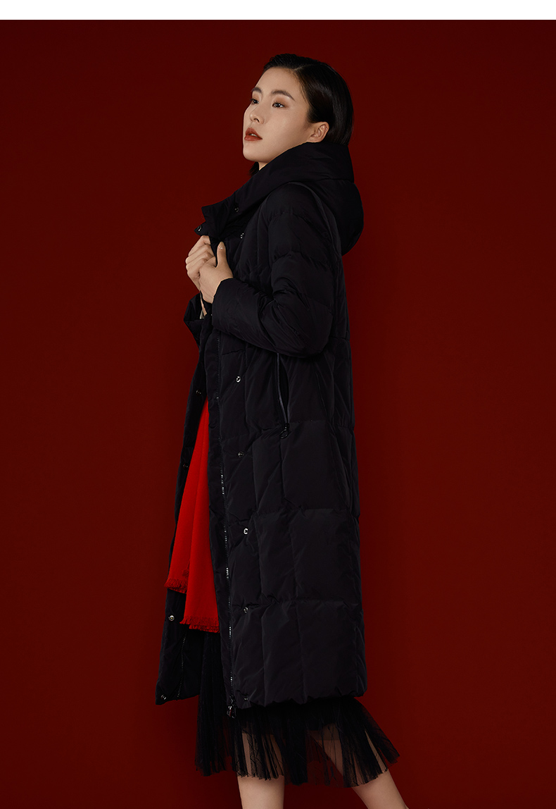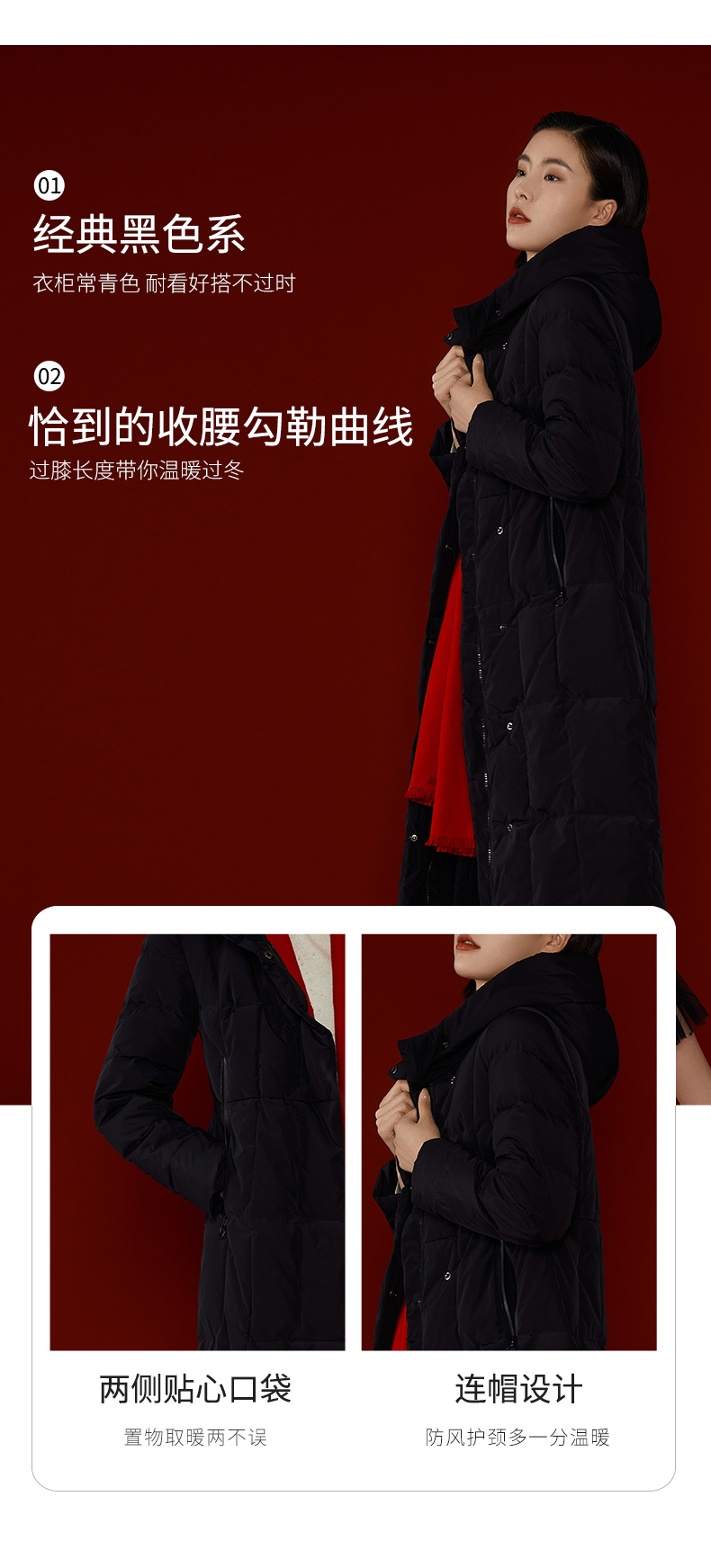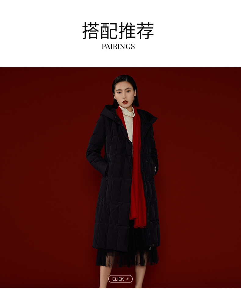玳莎90白鸭绒连帽中长款羽绒服2022新款时尚休闲保暖纯色外套 CD41308
