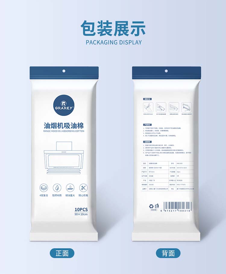 【文怡之选】GRAREY 油烟机吸油棉 阻燃无纺布材质 四层复合 强劲吸污 不易漏油 自由裁剪 99%通用接油槽 10片*3包装