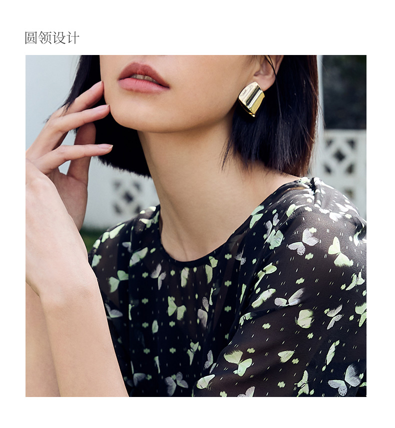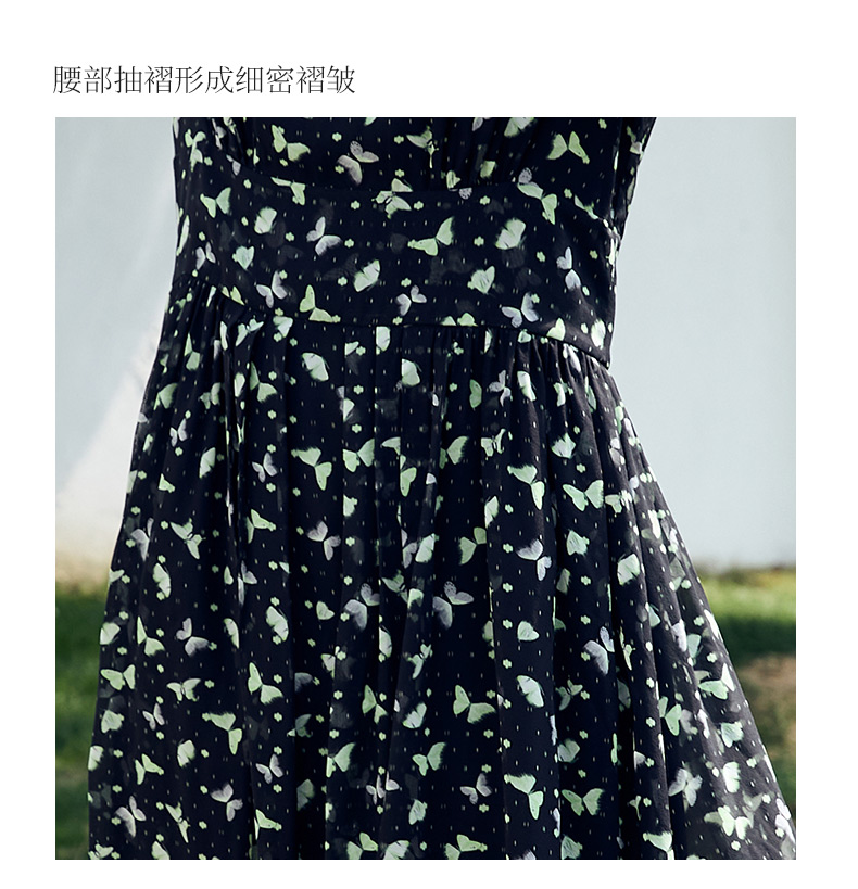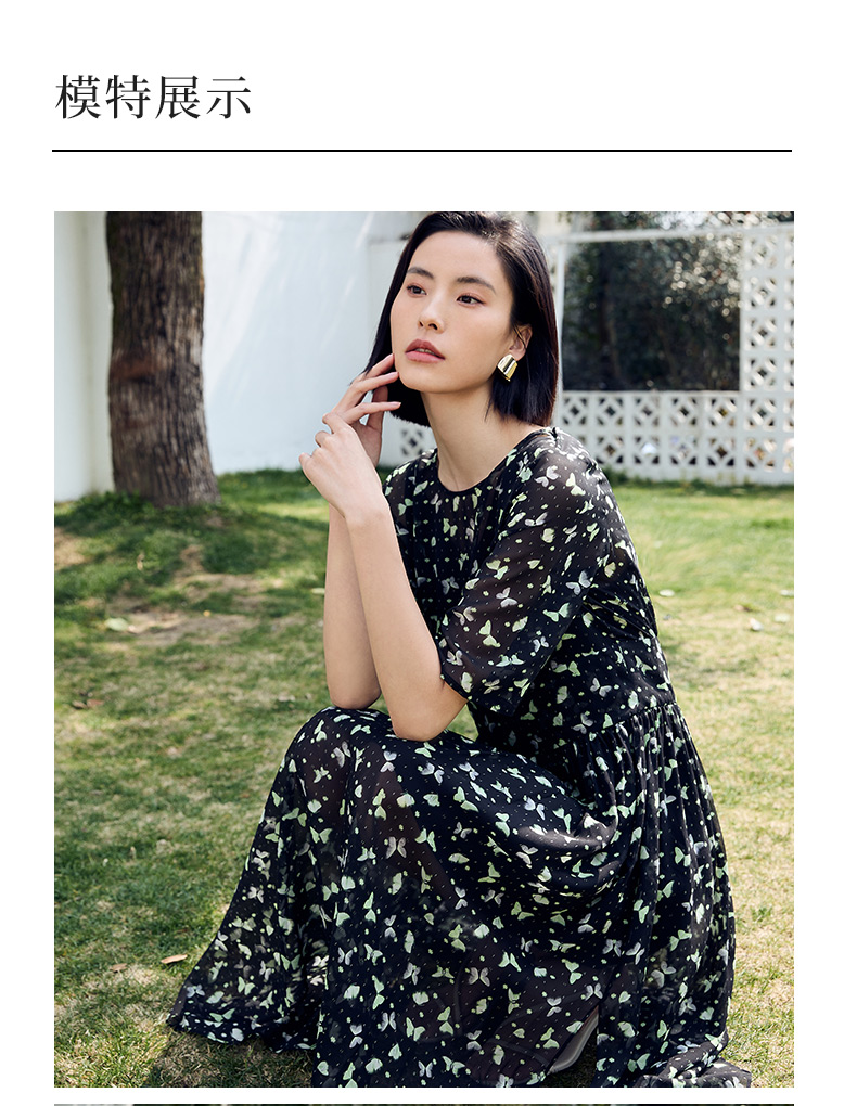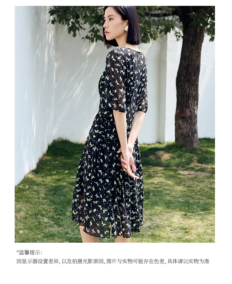 玳莎印花真丝连衣裙优雅2024夏季新款气质圆领显瘦A字碎花裙 DB35104