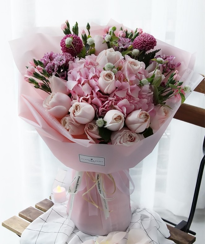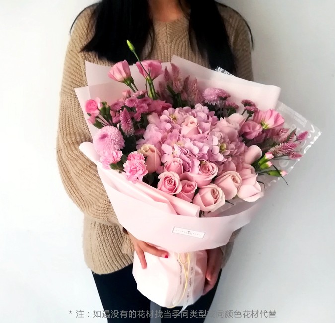 胭脂雪 Snow rouge-绣球粉玫瑰桔梗混搭花束-全国鲜花速递同城鲜花店配送生日花北京上海杭州广州深圳订花送花