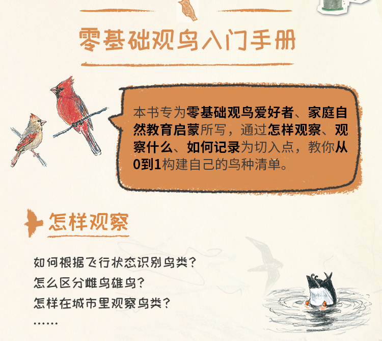 《怎样观察一只鸟》我的自然笔记作者克莱尔新作 本书不仅是一本观鸟手册,更是一部自然探索的宝典 同时养成记录和分享自己的观察心得的习惯 自然教育