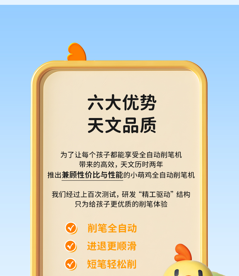 天文小萌鸡全自动削笔刀小学生专用转笔刀铅笔削笔器铅笔刀大容量不脏手自动卷笔刀儿童便携旋笔刀削铅笔刀