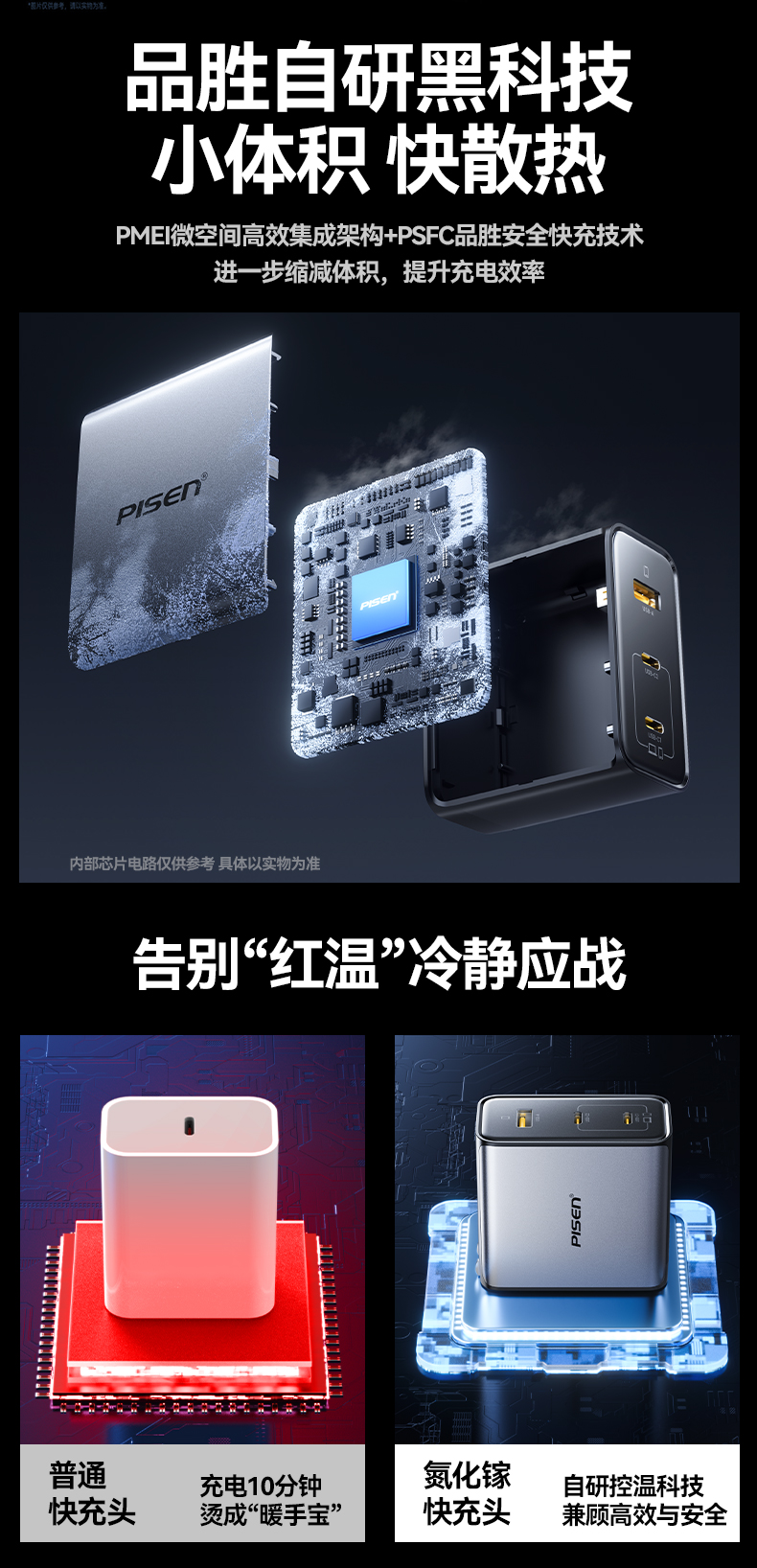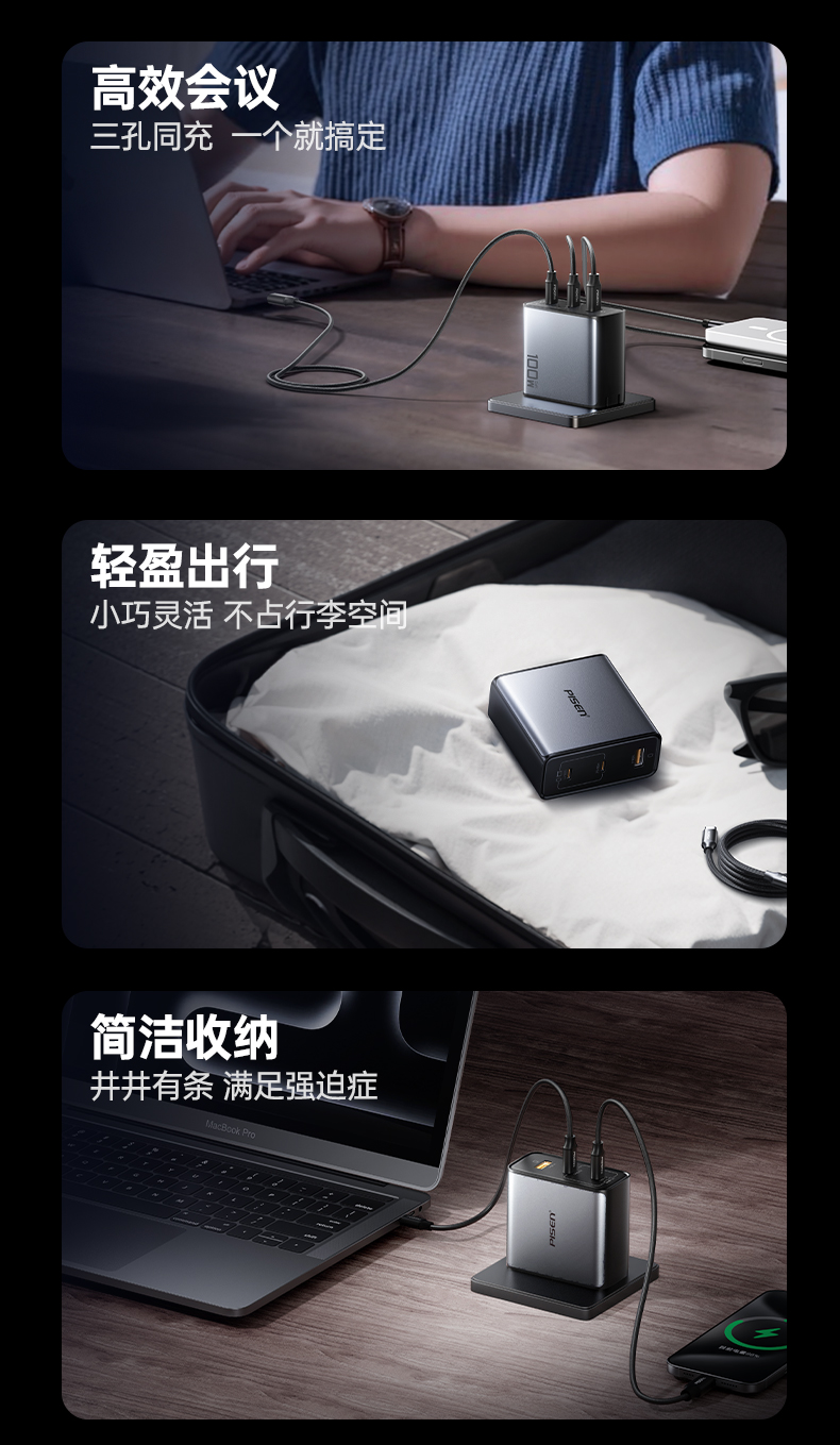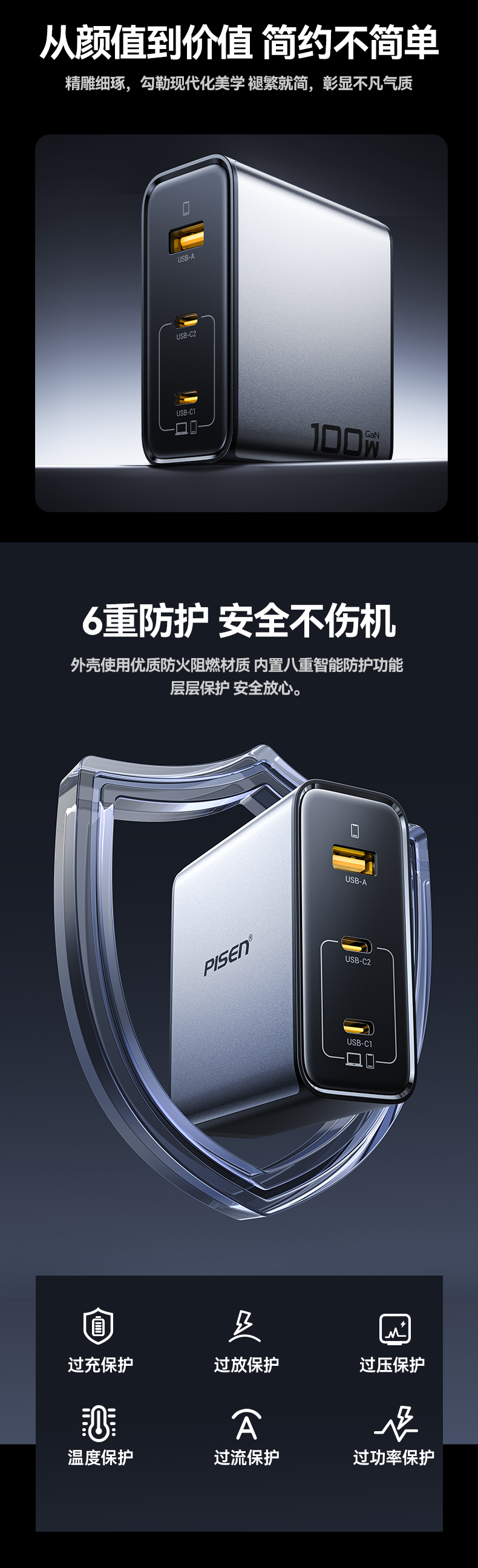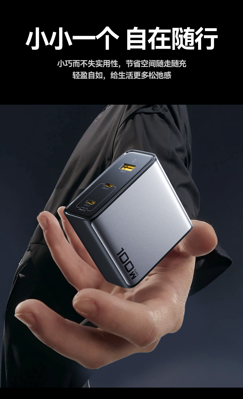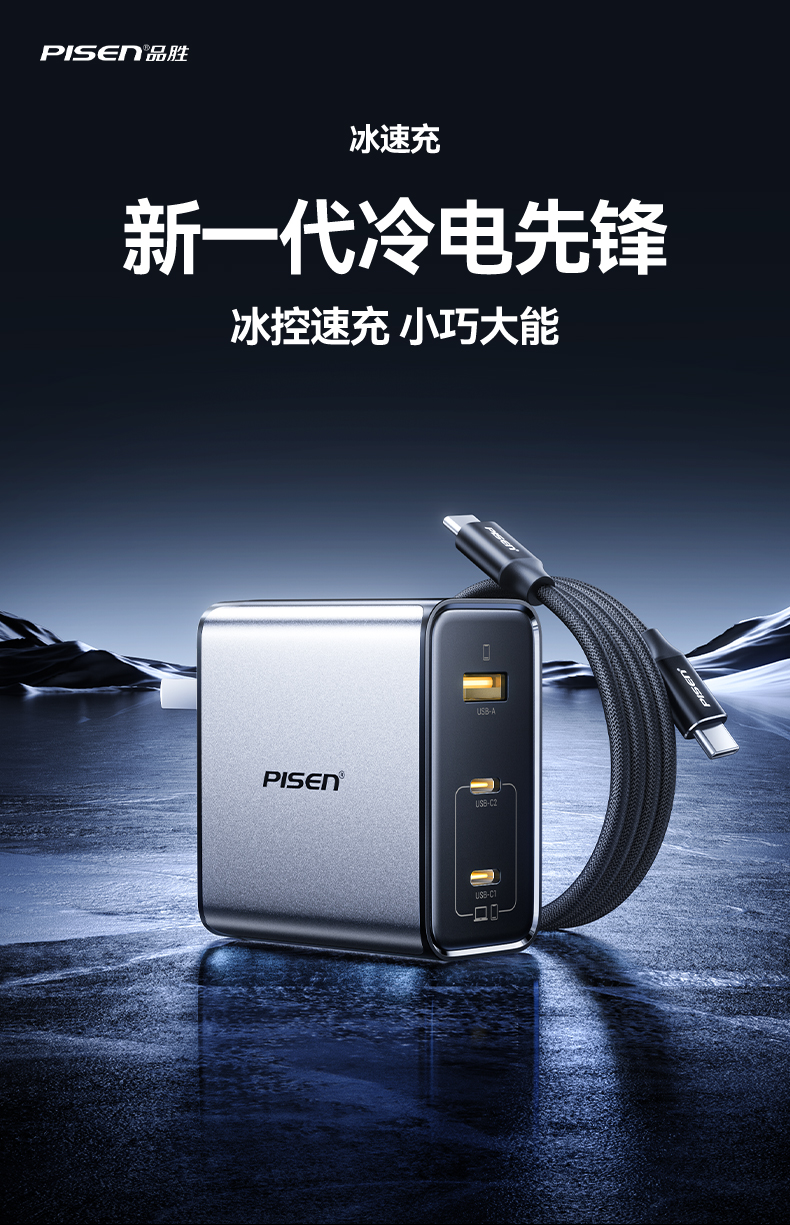 品胜 100W氮化镓闪电湃多口快速充电器套装2C1A Type-C数据线套装 笔记本充电器