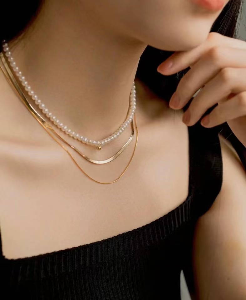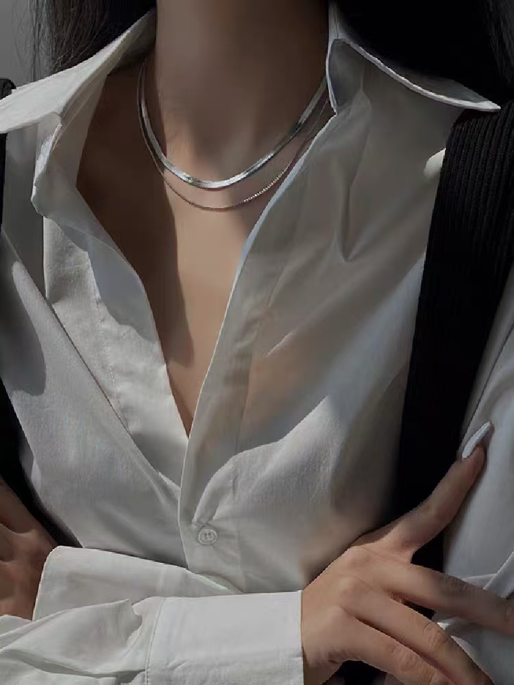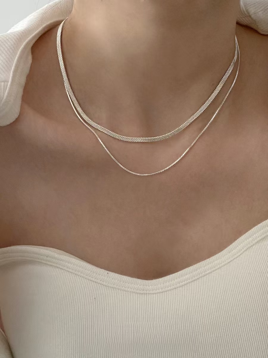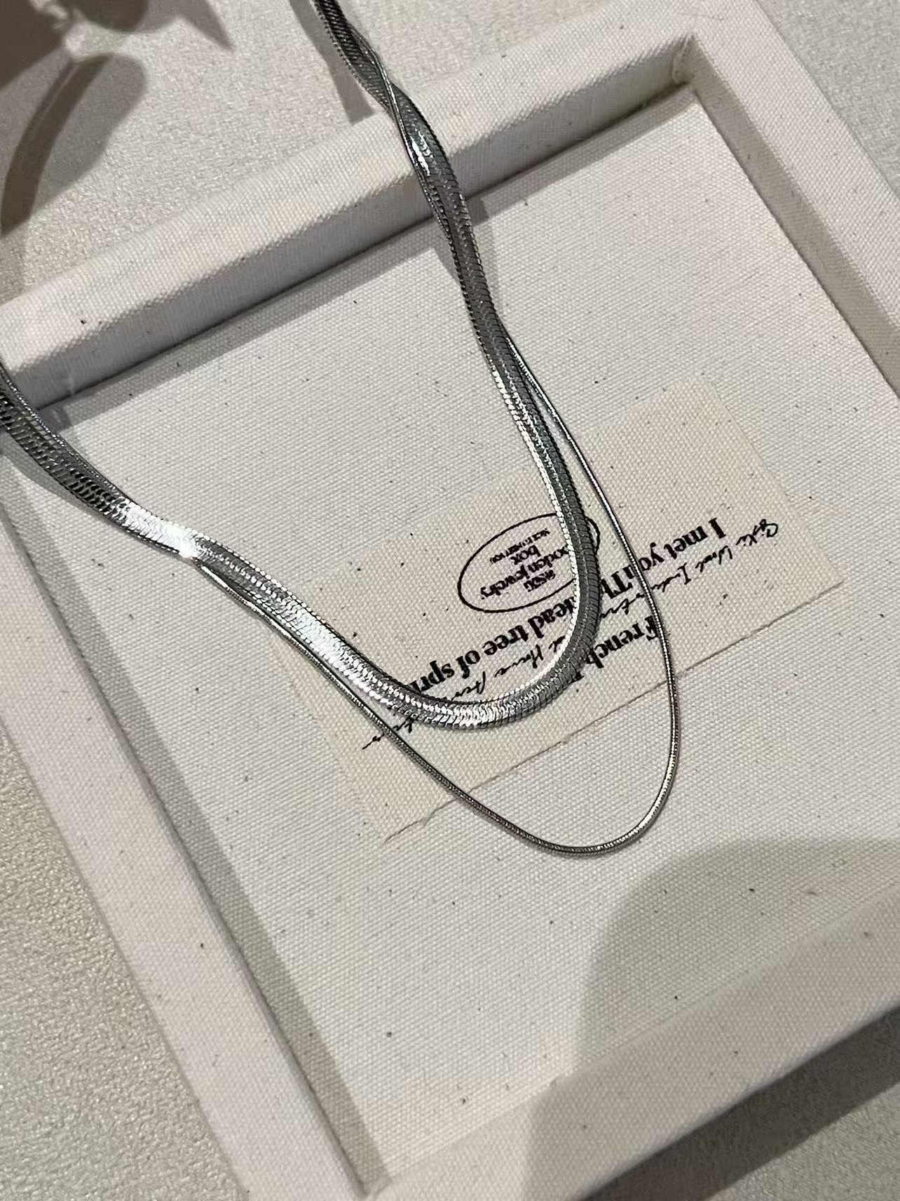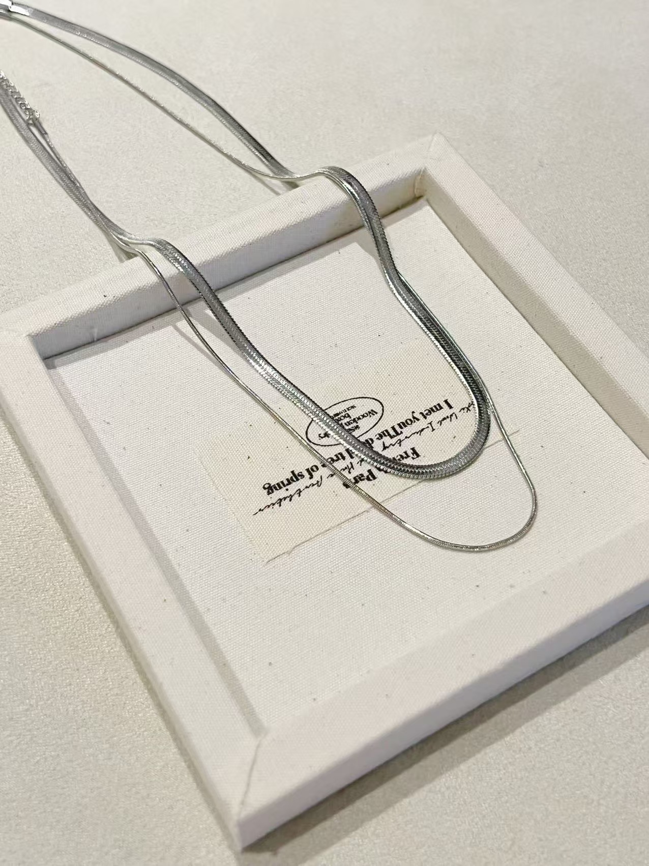 镀金工艺不掉色~经典蛇骨链谁还没有?必须高冷G级感拉满~蛇骨链双层叠戴很百搭~可以让穿搭G有质感!i轻奢小众冷淡锁骨链,值得焊在脖子上的一条项链,永远不会过时的款式。意大利进口机器编织更柔顺,不挂脖颈。出口标准双层真空保色电镀!无惧水洗!