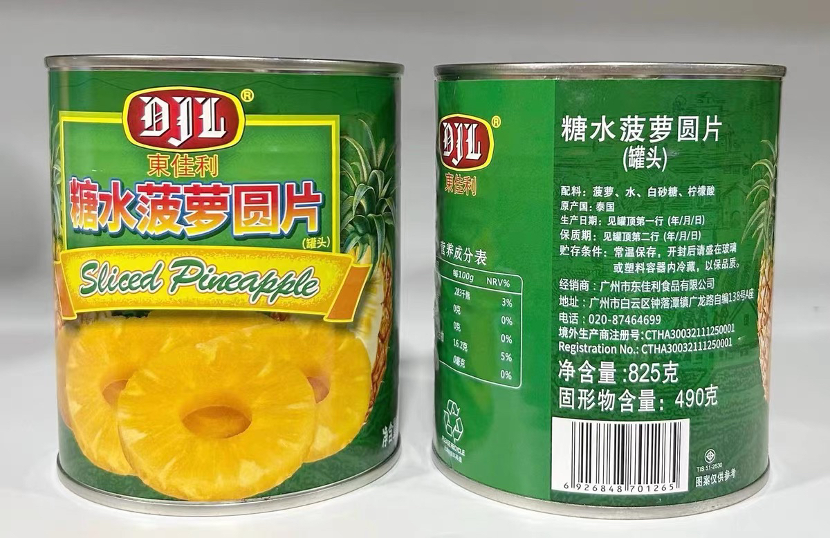 进口圆片菠萝圈罐头820g
