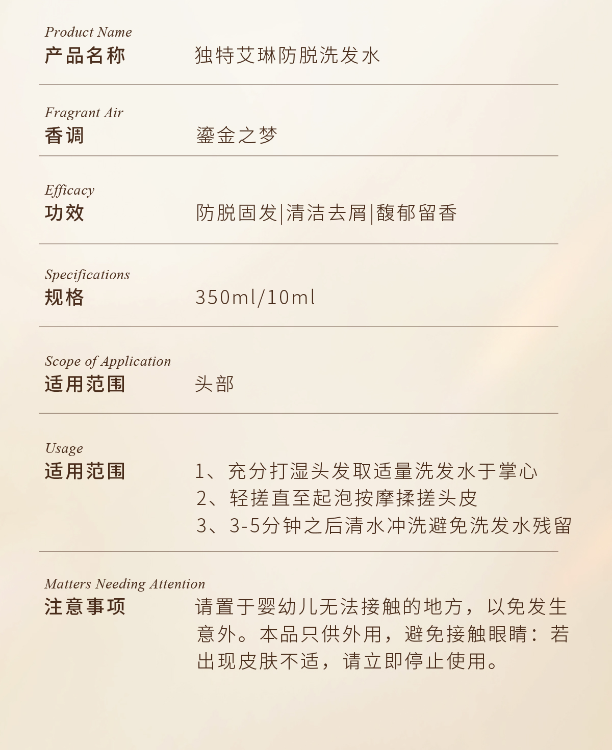 【新品推荐】独特艾琳 香氛防脱固发控油洗发露去油去屑洗发水