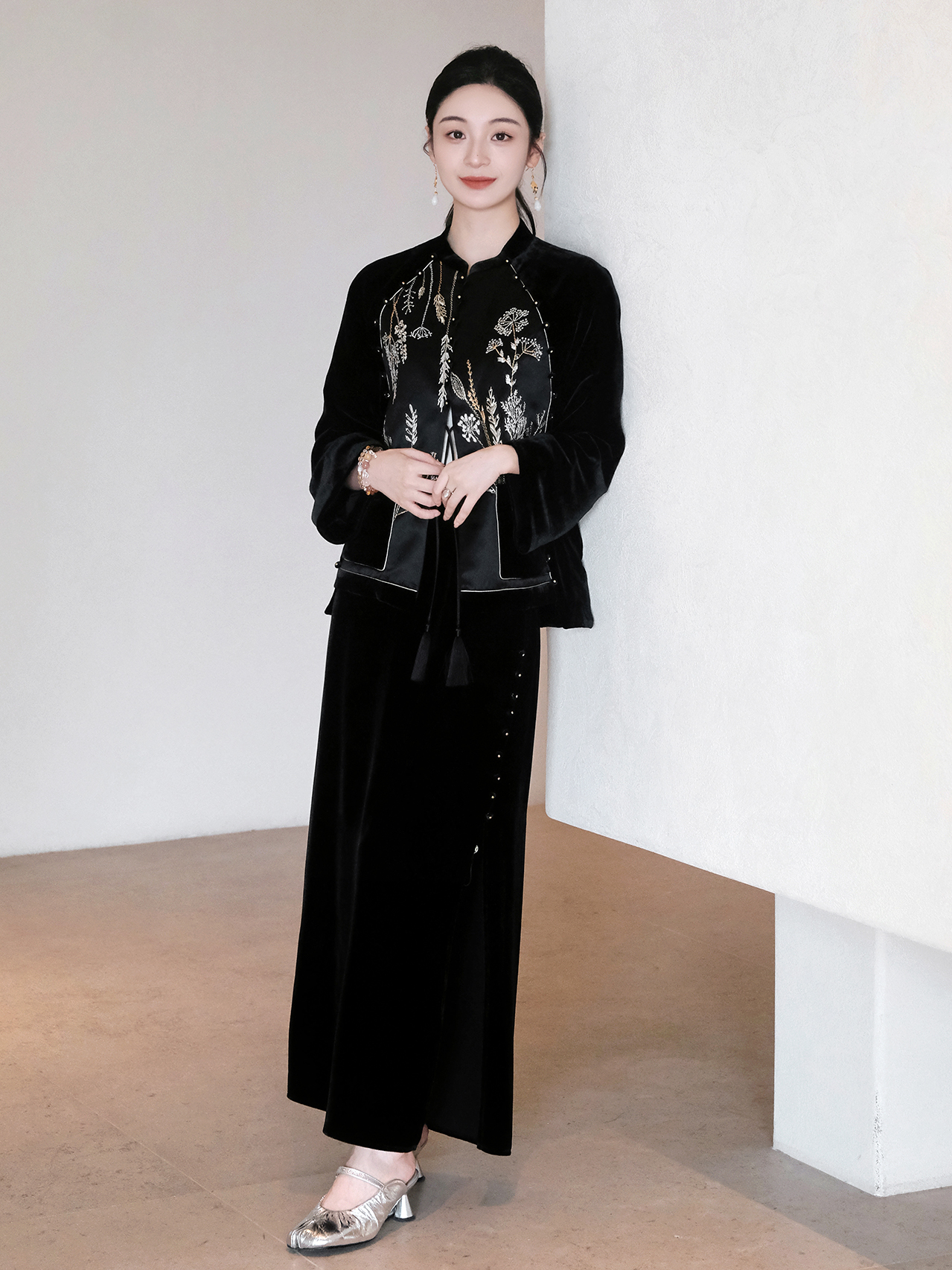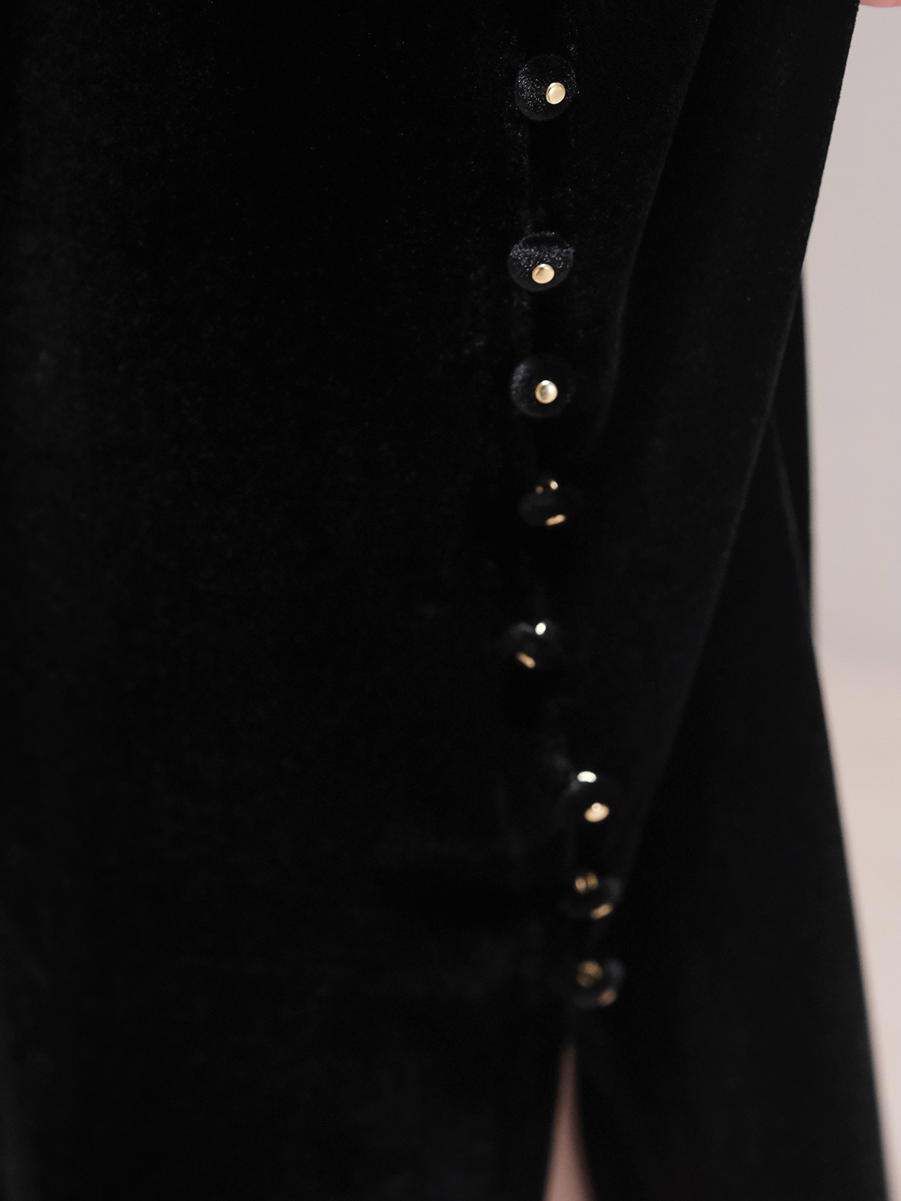 盛唐婧 |新中式丝绒鱼尾连衣裙-黑色