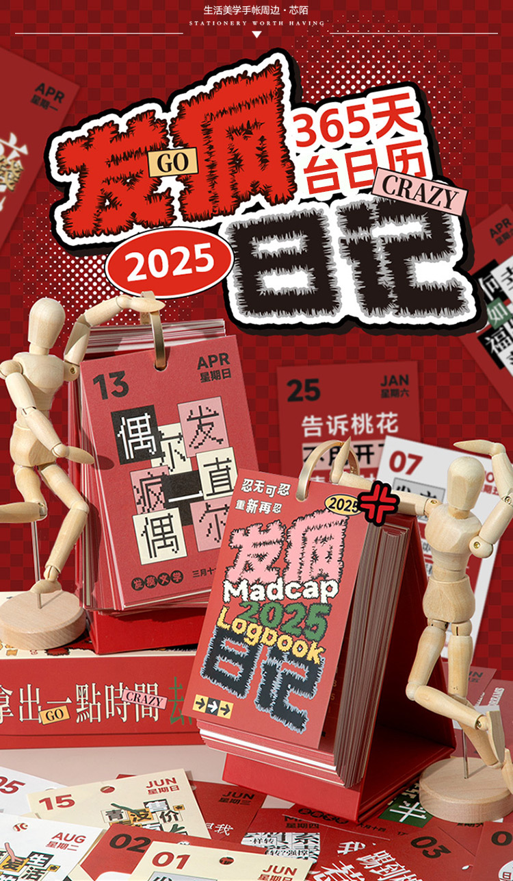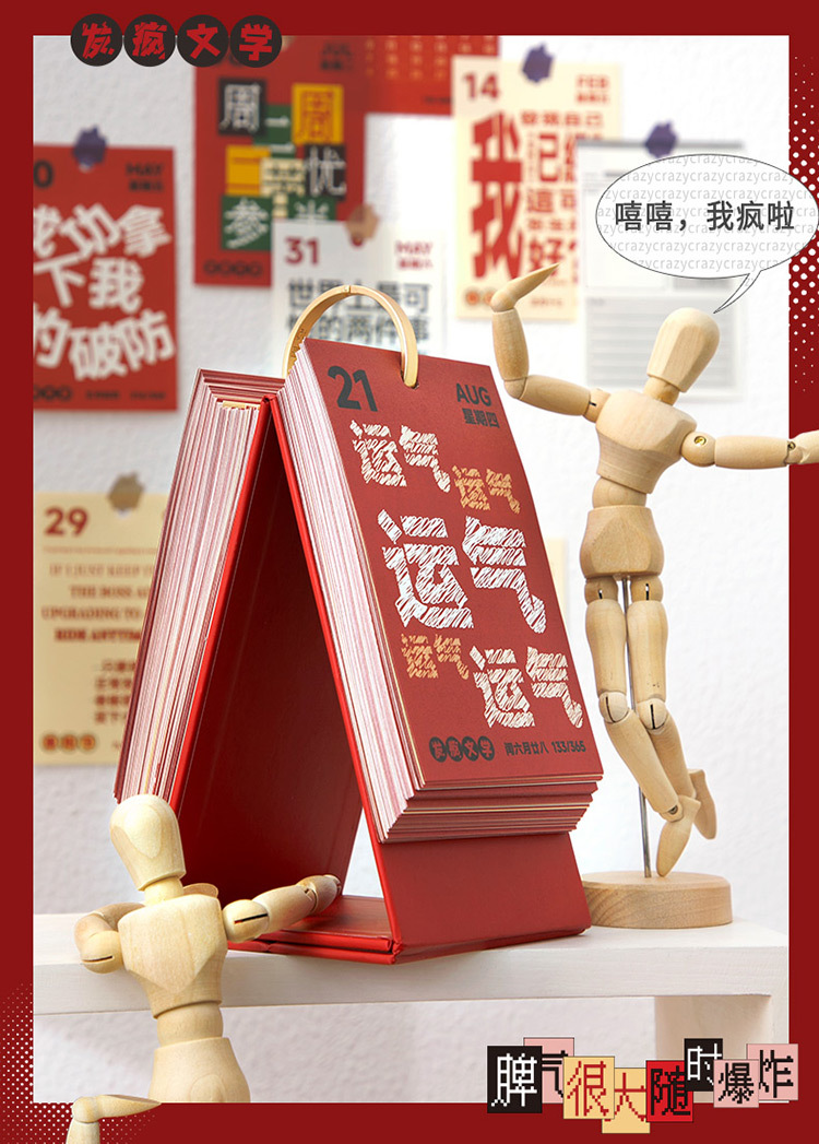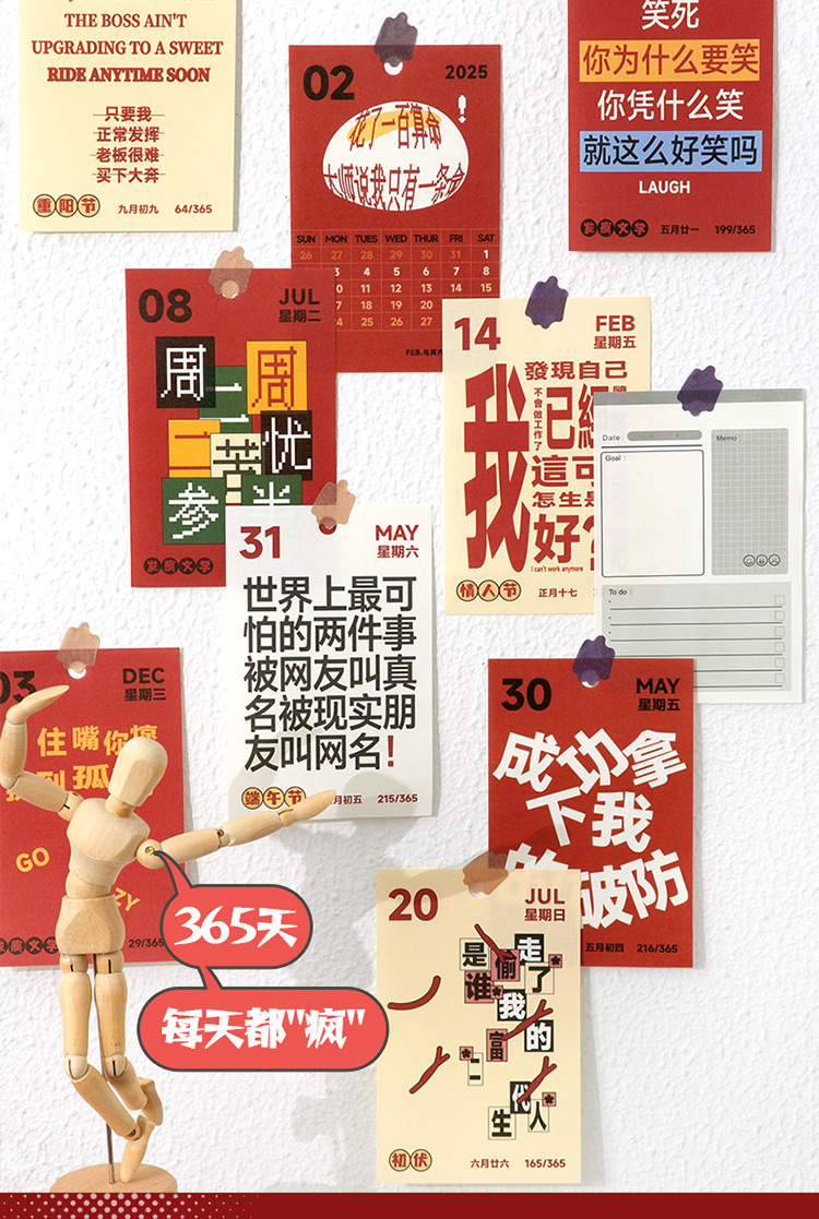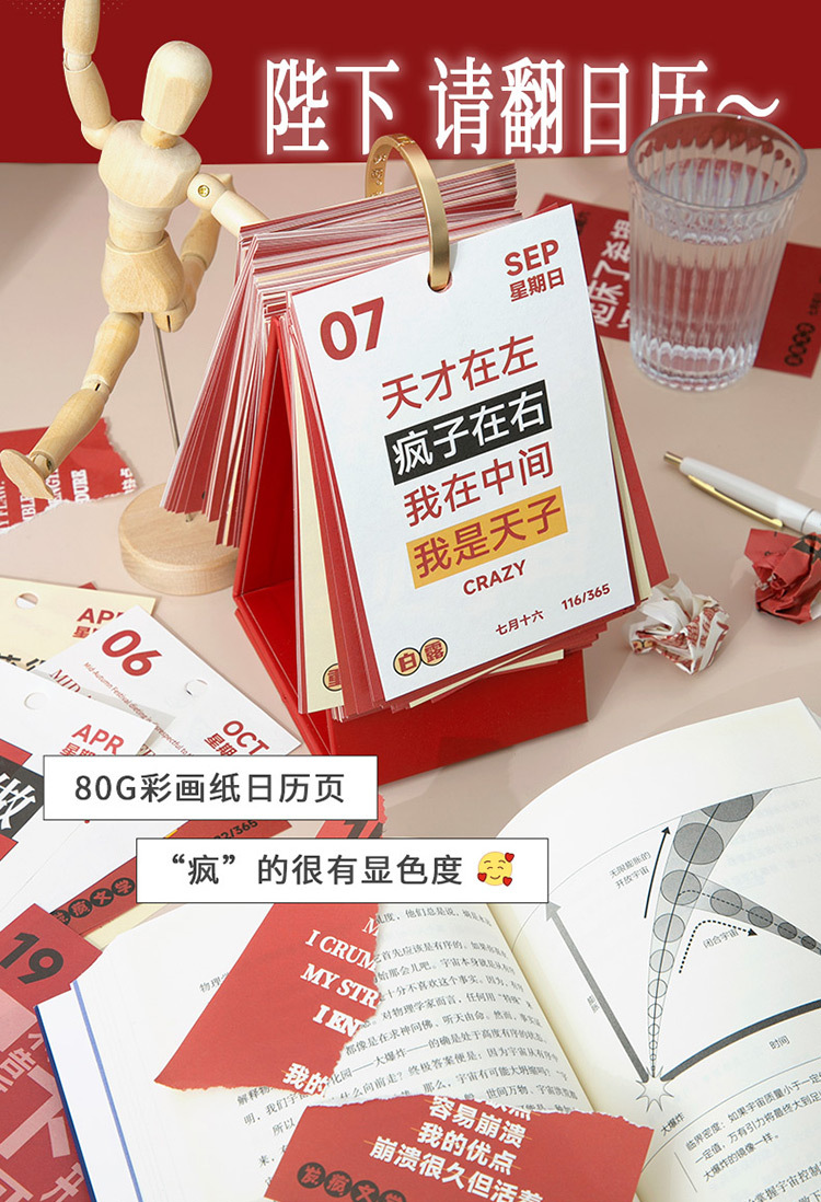 【发疯解压!2025年日历这一本就够了】365天每天都发疯文字解压日历,80G彩画纸日历页 “疯”的很有显色度,桌面摆件多功能计划日历风台历直播引流品2026马年新年款