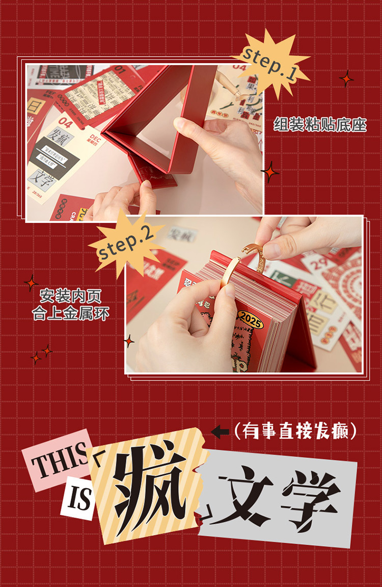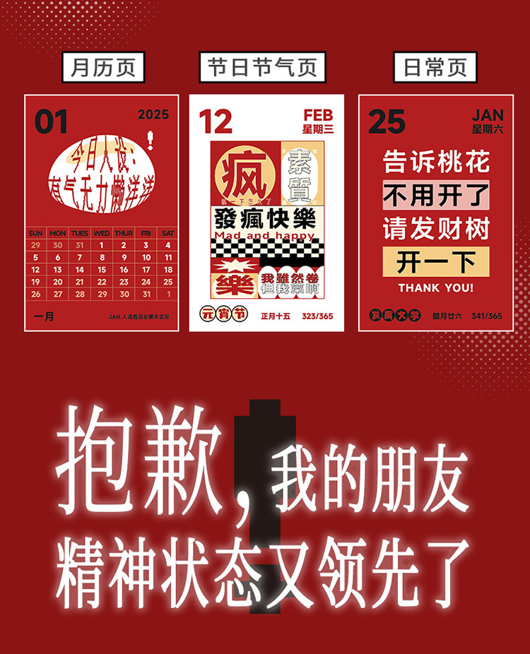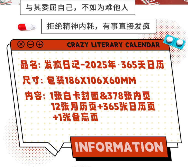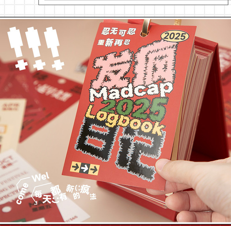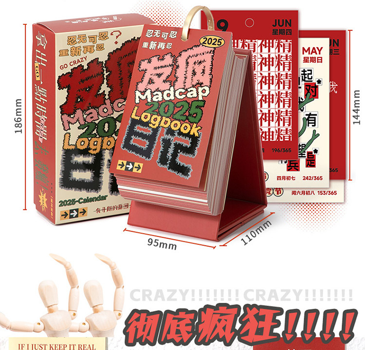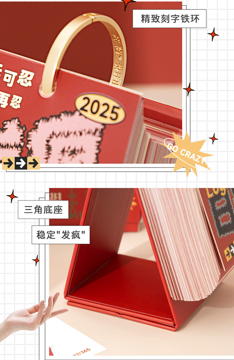 【发疯解压!2025年日历这一本就够了】365天每天都发疯文字解压日历,80G彩画纸日历页 “疯”的很有显色度,桌面摆件多功能计划日历风台历直播引流品2026马年新年款