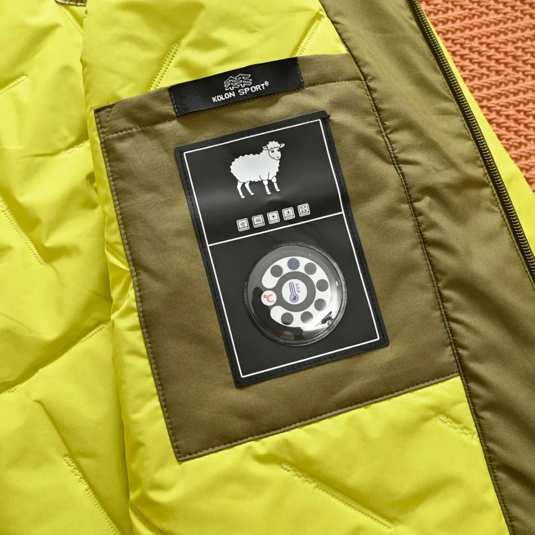 「多层锁温:把 “暖” 玩出 “黑科技感”」三层结构精准锁温: 表层防风御雪,冷风根本钻不进; 中层 “储热王炸”:填充 100% 绵羊毛 + 聚酯纤维, 蓬松又轻盈, 像给身体盖了层 “云朵暖被”; 里层还藏着石墨烯蓄热科技,面料编织成聚热蜂巢结构, 能吸收并释放远红外热量。