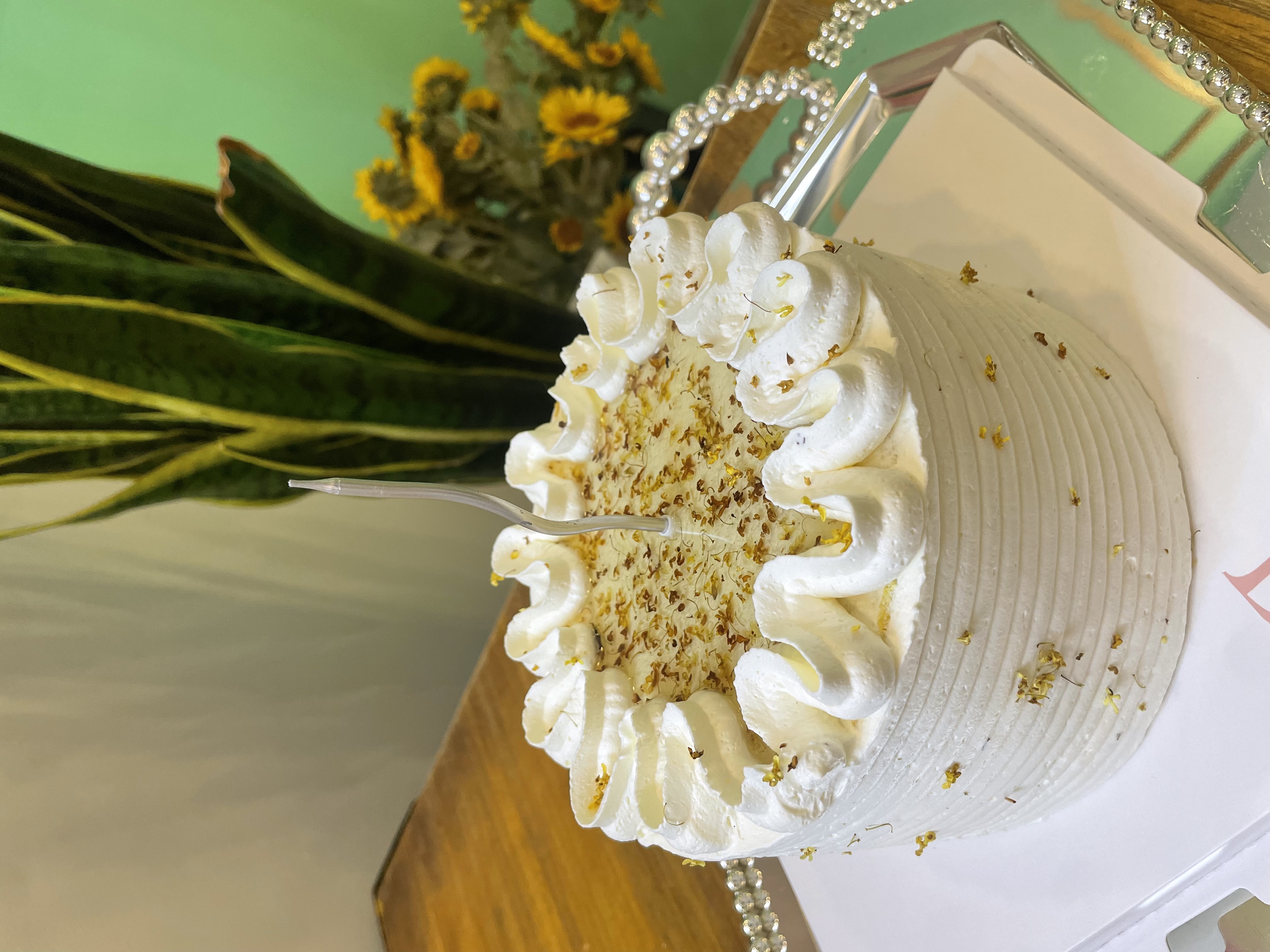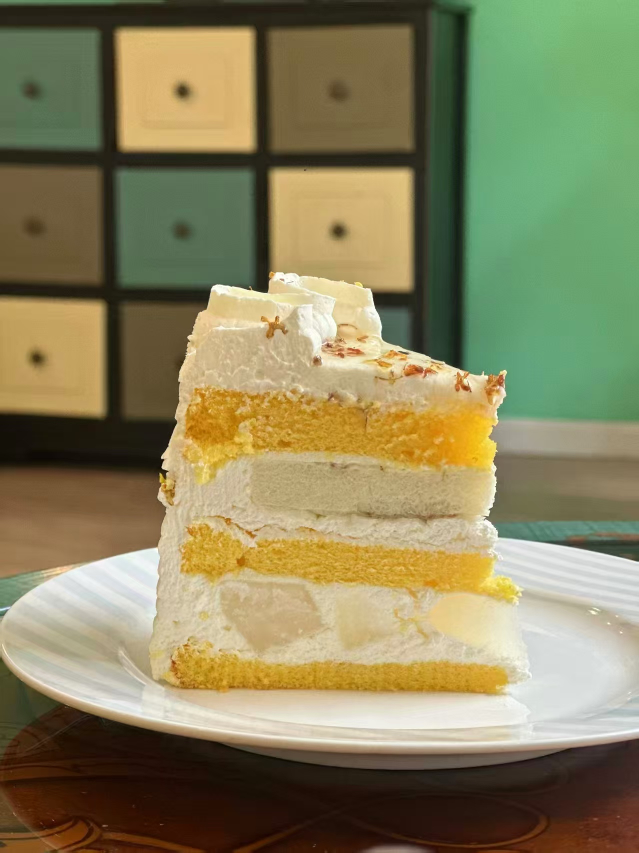 口味描述:桂花奶油+原味戚风蛋糕胚+桂花奶冻夹心+秋梨夹心