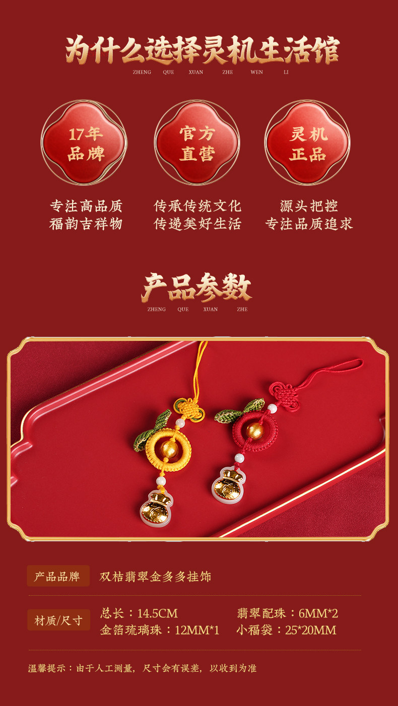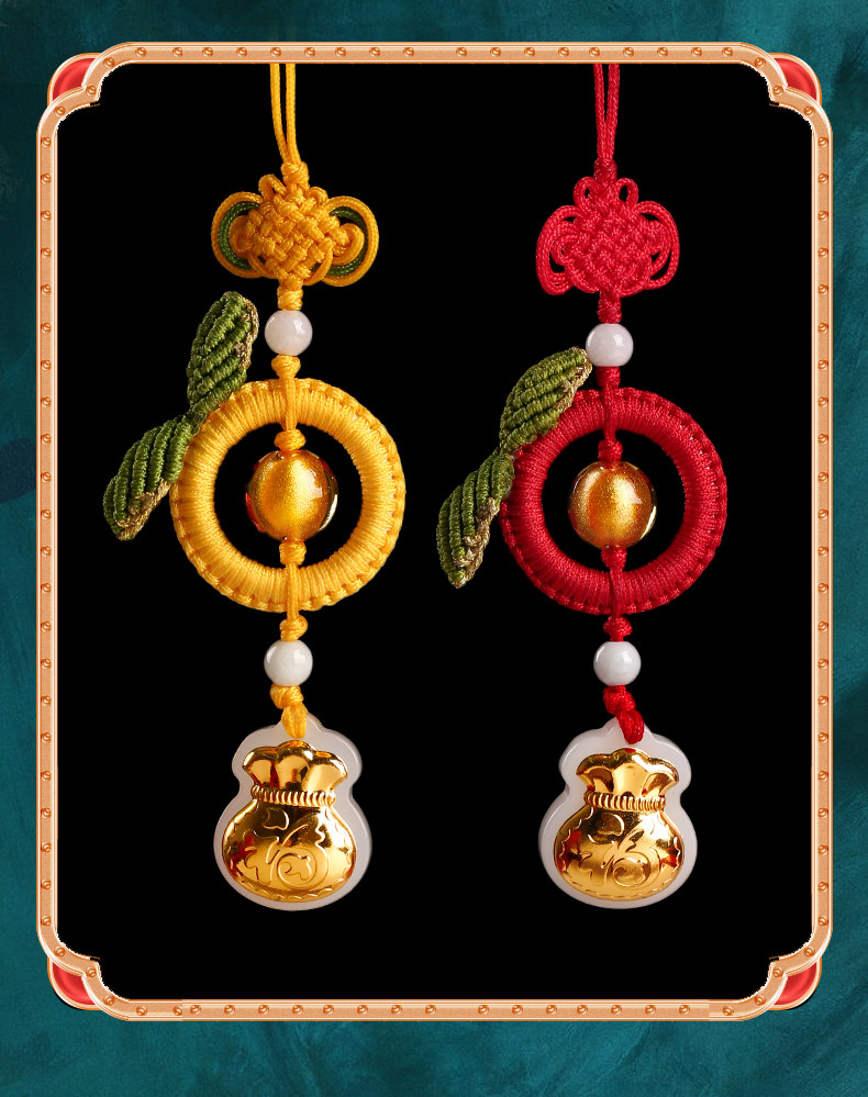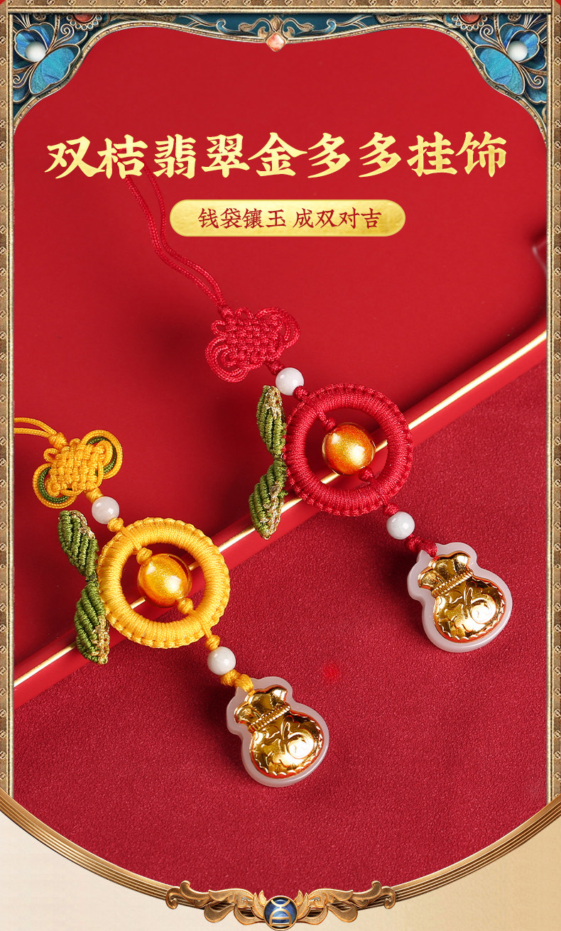 【祈愿吉品】双桔翡翠金多多挂饰钥匙扣挂件