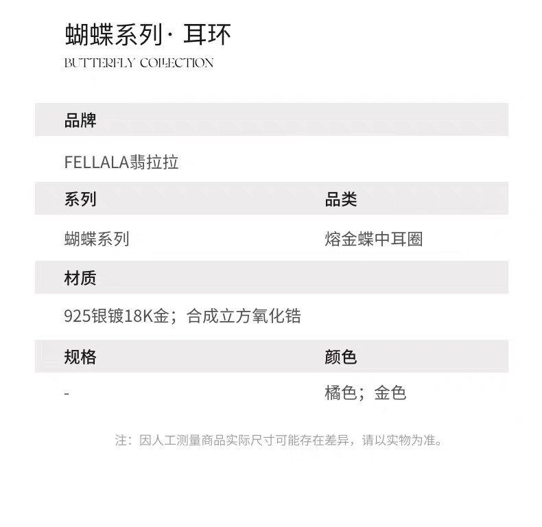 2楼Fellala/翡拉拉「蝴蝶」设计感耳环高级感耳饰货号926434111吊牌价1199现价1079