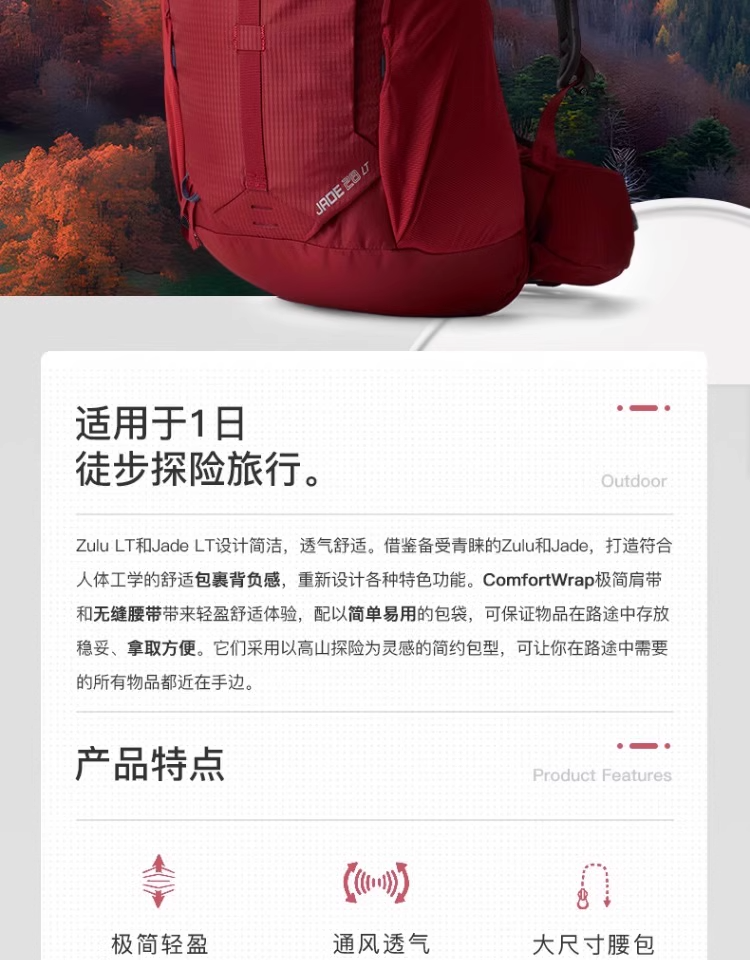 GREGORY格里高利JADE LT探秘24轻量化徒步登山包透气舒适双肩包女款