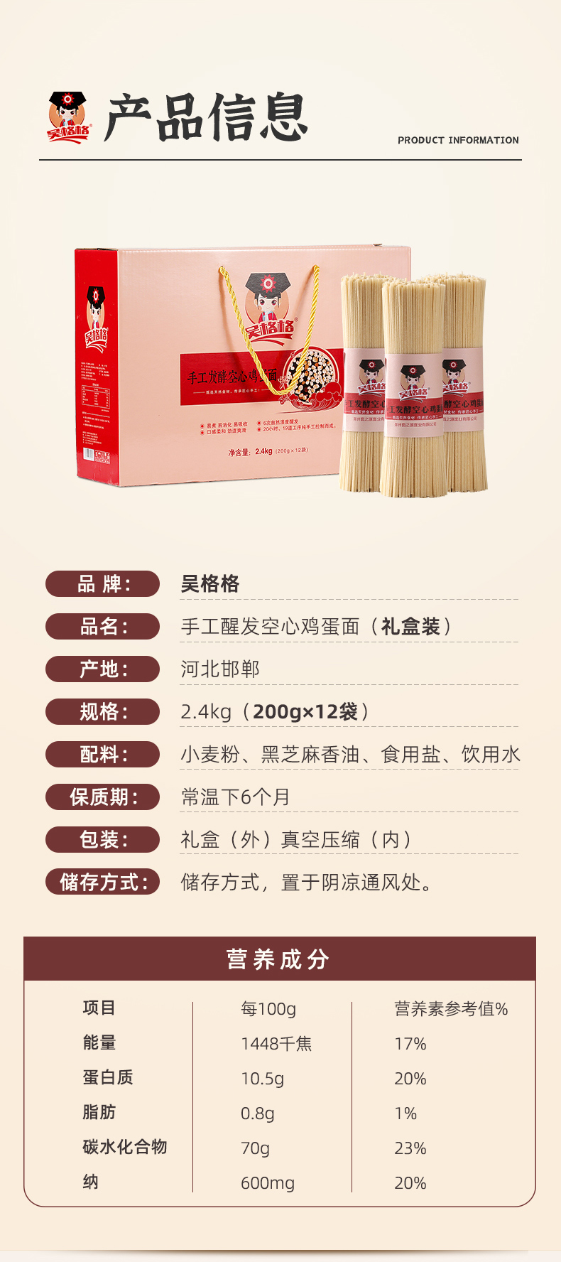 【新品上市】 吴格格 手工发酵空心鸡蛋面