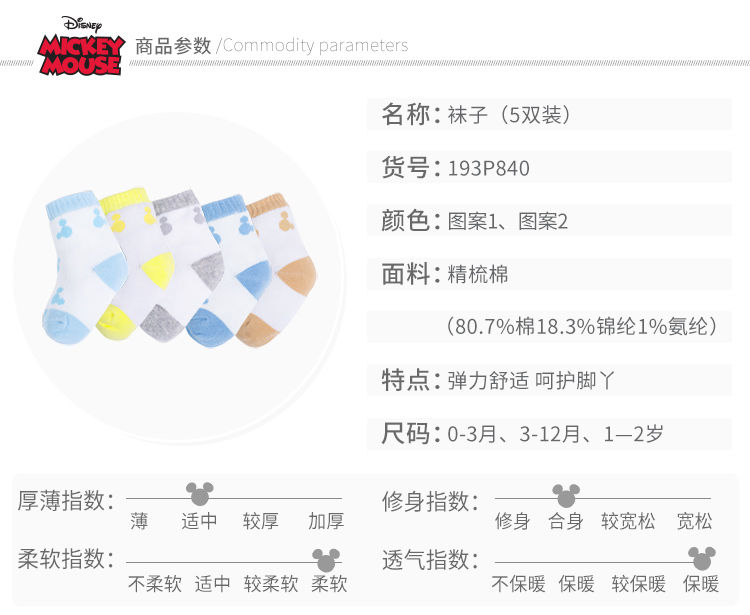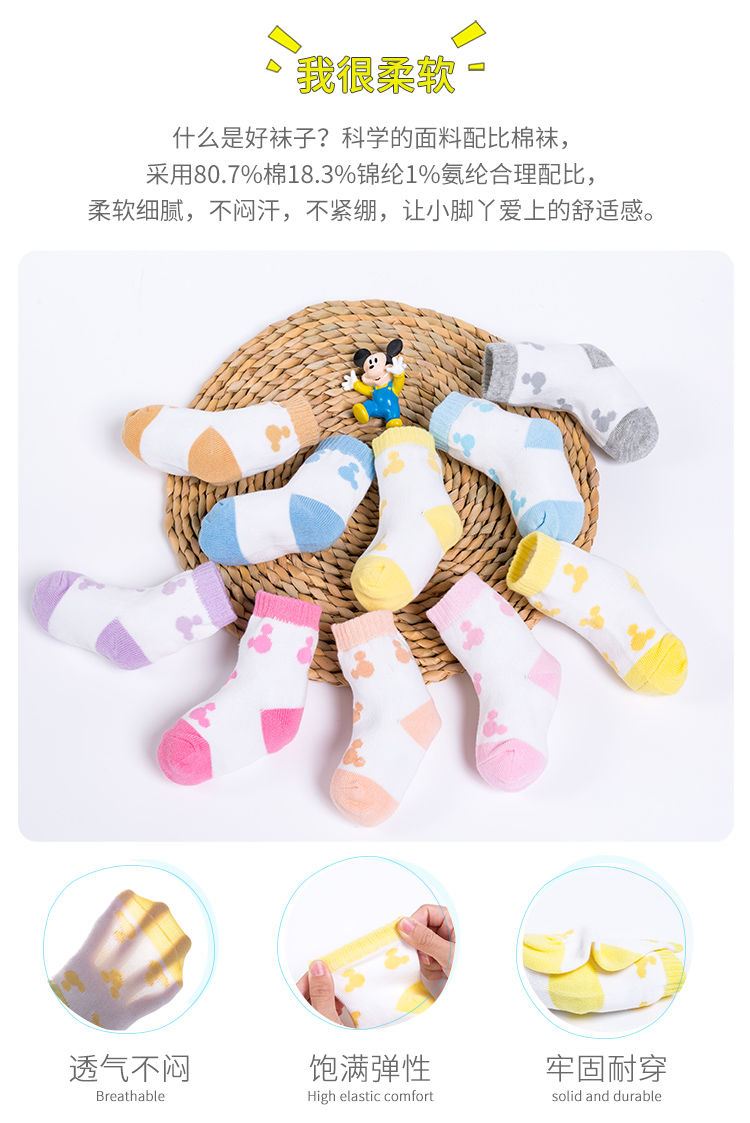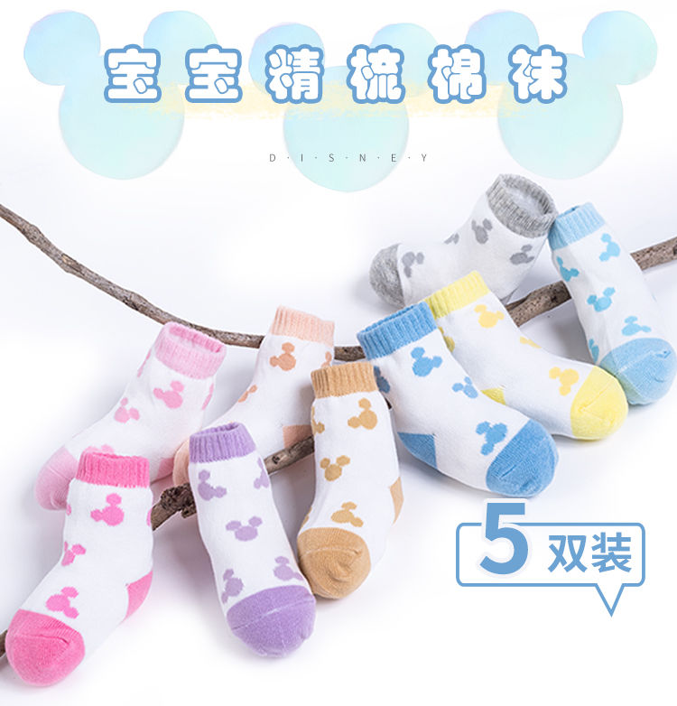 迪士尼童装男女宝宝运动袜秋冬新款婴童中筒棉袜子可爱潮萌袜子